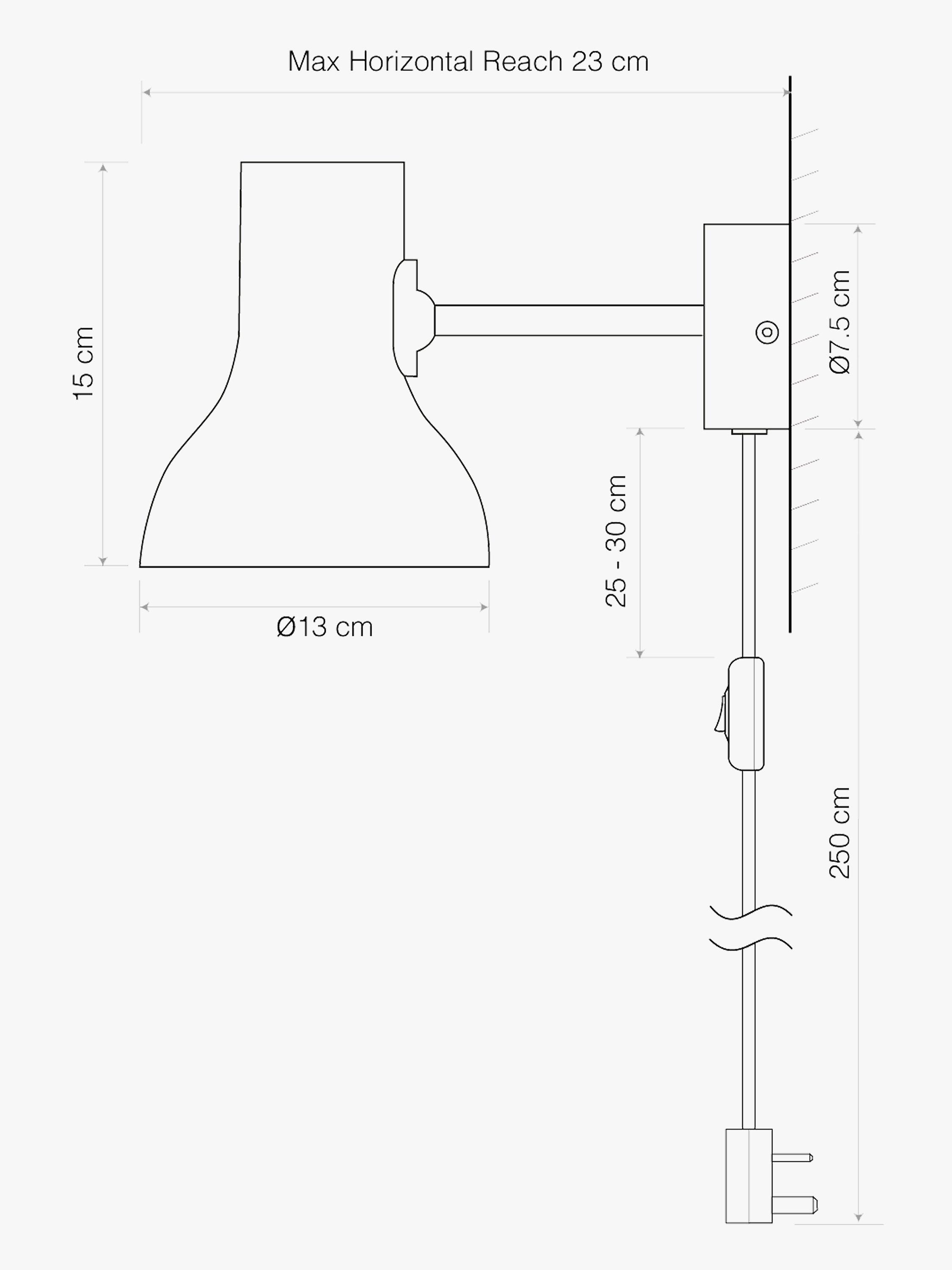 All you need is an existing wall socket to get this wall light up-and-running. Simply plug it in and adjust the shade to focus light exactly where you need it. The compact form of Anglepoise's Type 75 Mini, presented in a selection of Margaret Howell edition colours ensures that this light will enhance any space in your home, adding an accent of colour at the same time. Whether you mount it to the wall or ceiling, it's perfect if you need a quick-fix, design-led lighting solution.