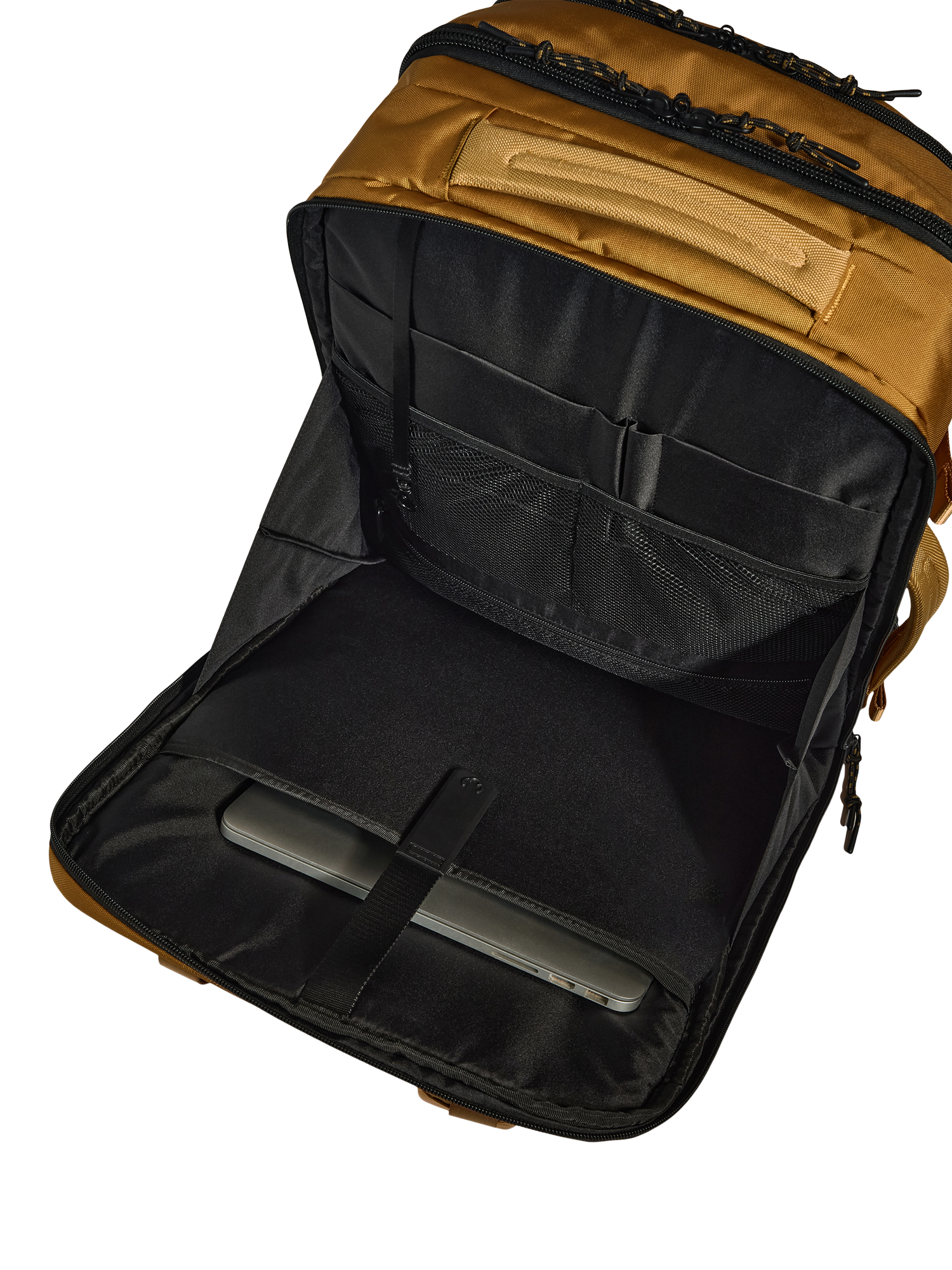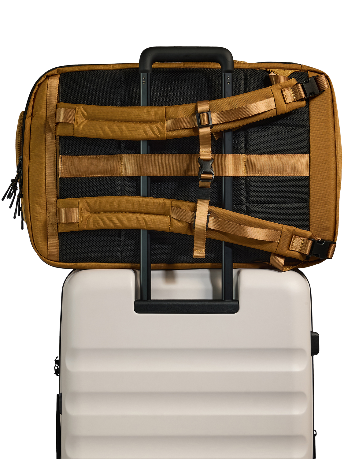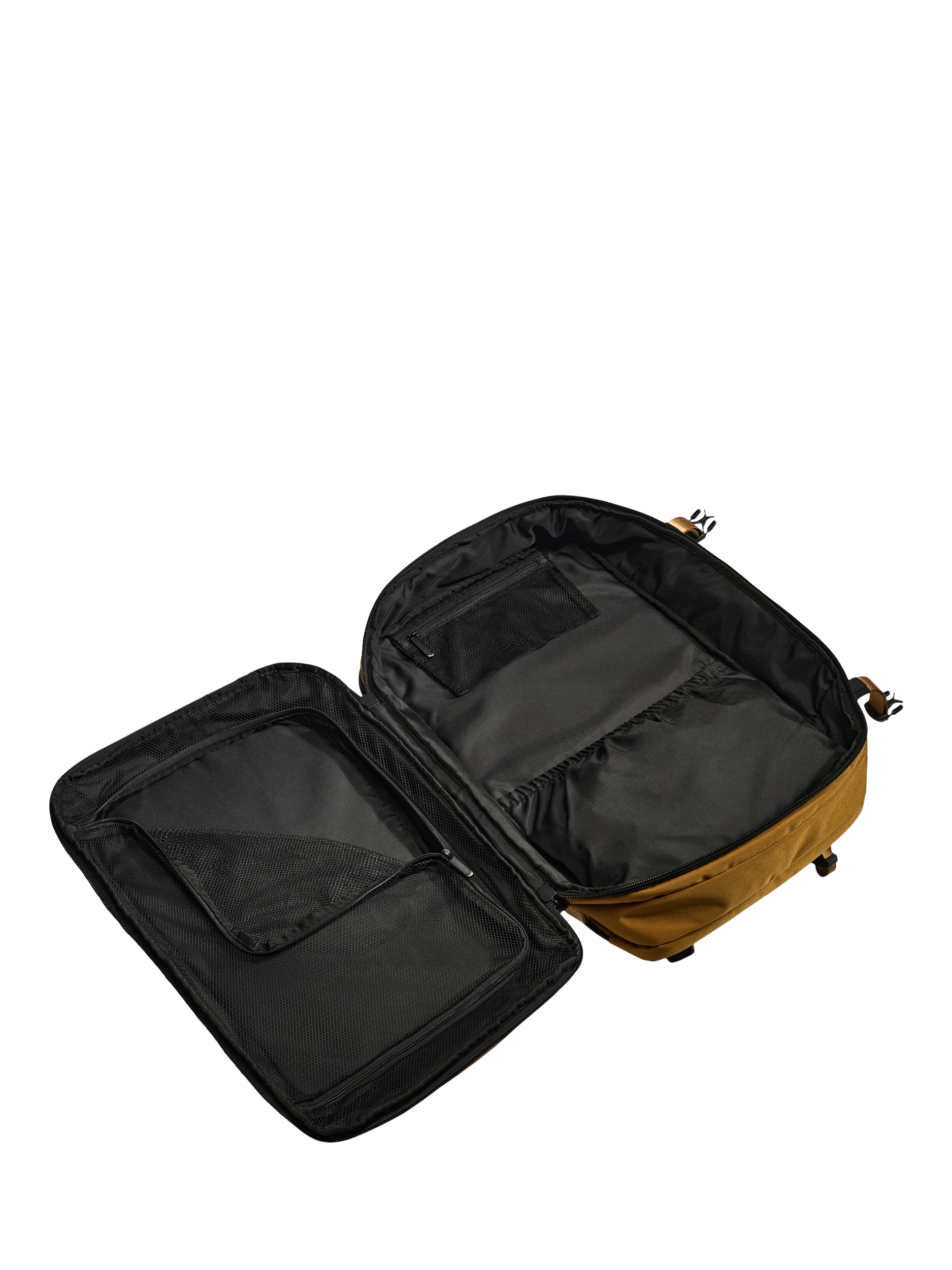 Made with durable, water-repellent fabrics, it matches the capacity of a cabin suitcase but in a flexible backpack form. Full side opening with compression straps makes packing easy and organised, while a padded laptop sleeve fits even the largest laptops.