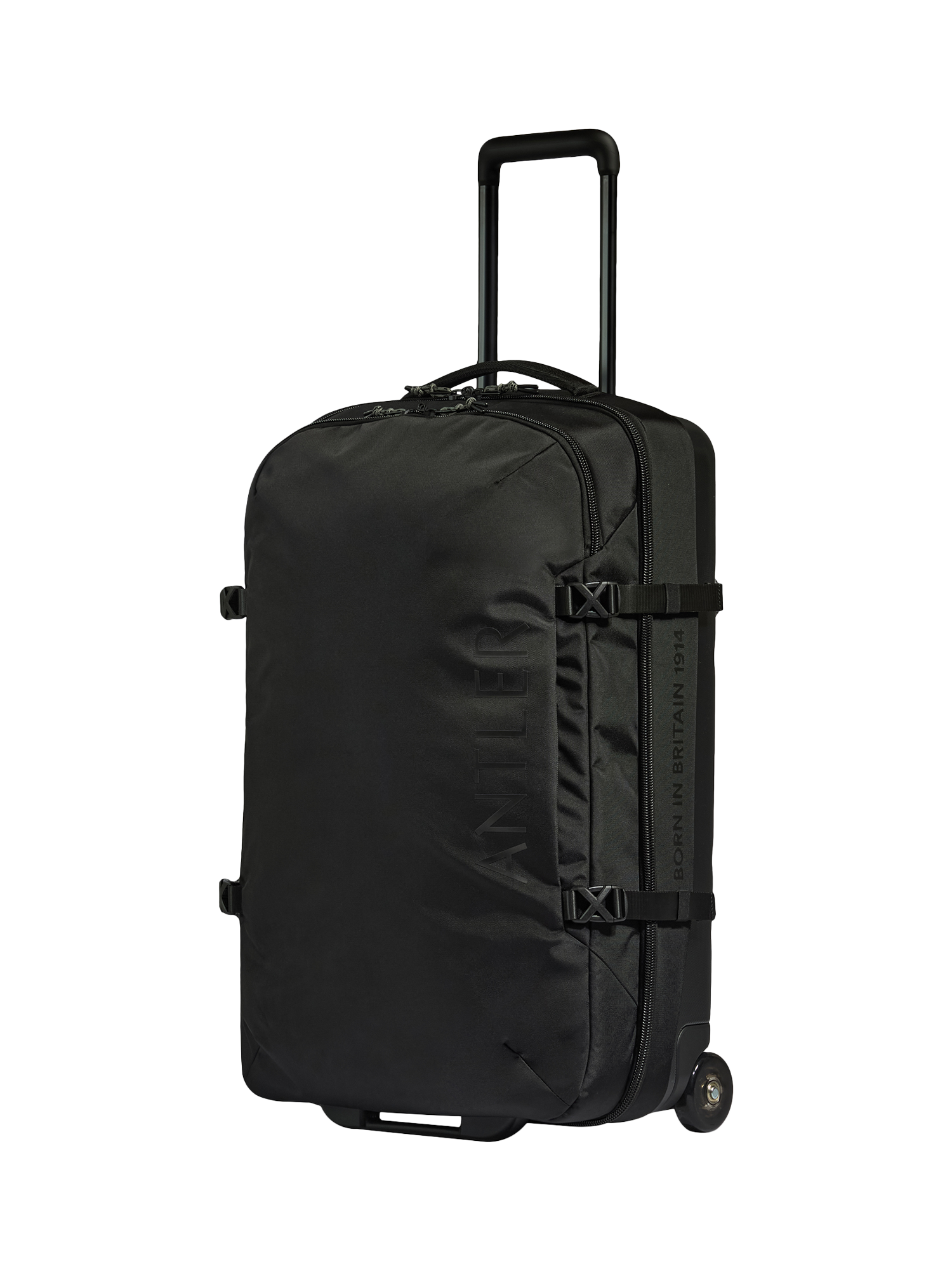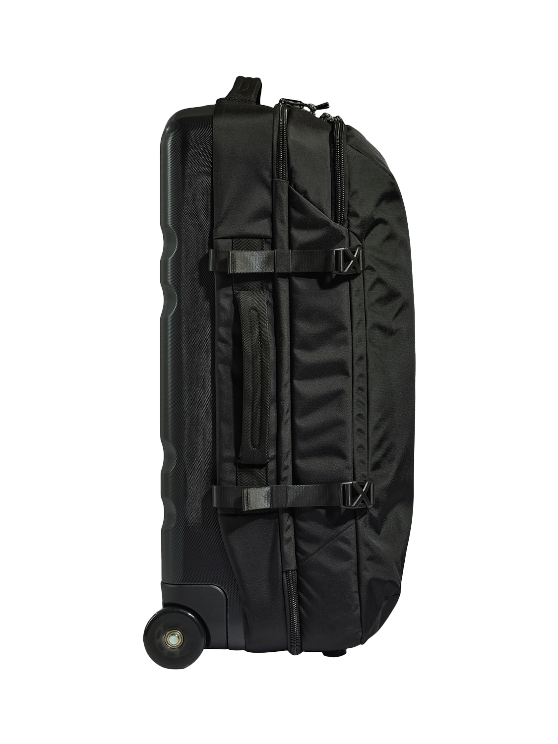 The Discovery Wheeled Duffle combines the flexibility of a holdall with the structure and smooth roll of a suitcase. The durable hard shell back resists scuffs and scratches, while the water-repellent fabric front flexes for easy packing. Compression straps and adjustable buckles keep things tight and secure, and side handles make it easy to grab and stow at a moment’s notice.