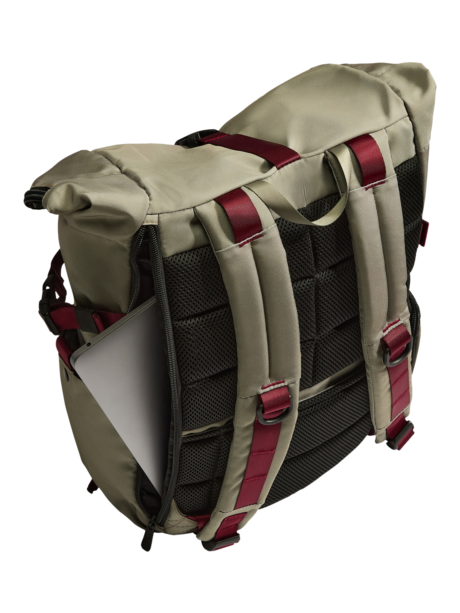 Carry using the grab handle or adjustable straps, padded for comfort. There's space for a laptop, side pockets, handy bungee cords, and the backpack can fit over suitcase handles when you're on your travels.
