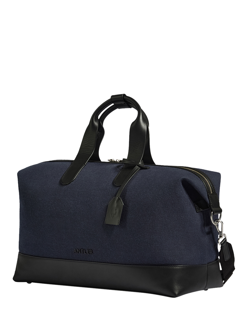 The Heritage Overnight Bag combines Antler’s timeless design with durable Oxford weave canvas, full-grain leather, and thoughtful organisational features, making it a practical and stylish companion for short trips. Water-repellent, anti-fray finishes and scratch-proof leather trims ensure the bag stands up to the demands of travel. Crafted with curved lozenge handles, a detachable shoulder strap, and a leather base with protective metal feet, the Overnight balances elevated detailing with everyday function. Inside there's a laptop sleeve (up to 14”) and a spacious compartment for essentials. A removable cotton canvas back-strap stacks neatly on a suitcase handle and doubles as a discreet slip pocket to keep belongings secure.