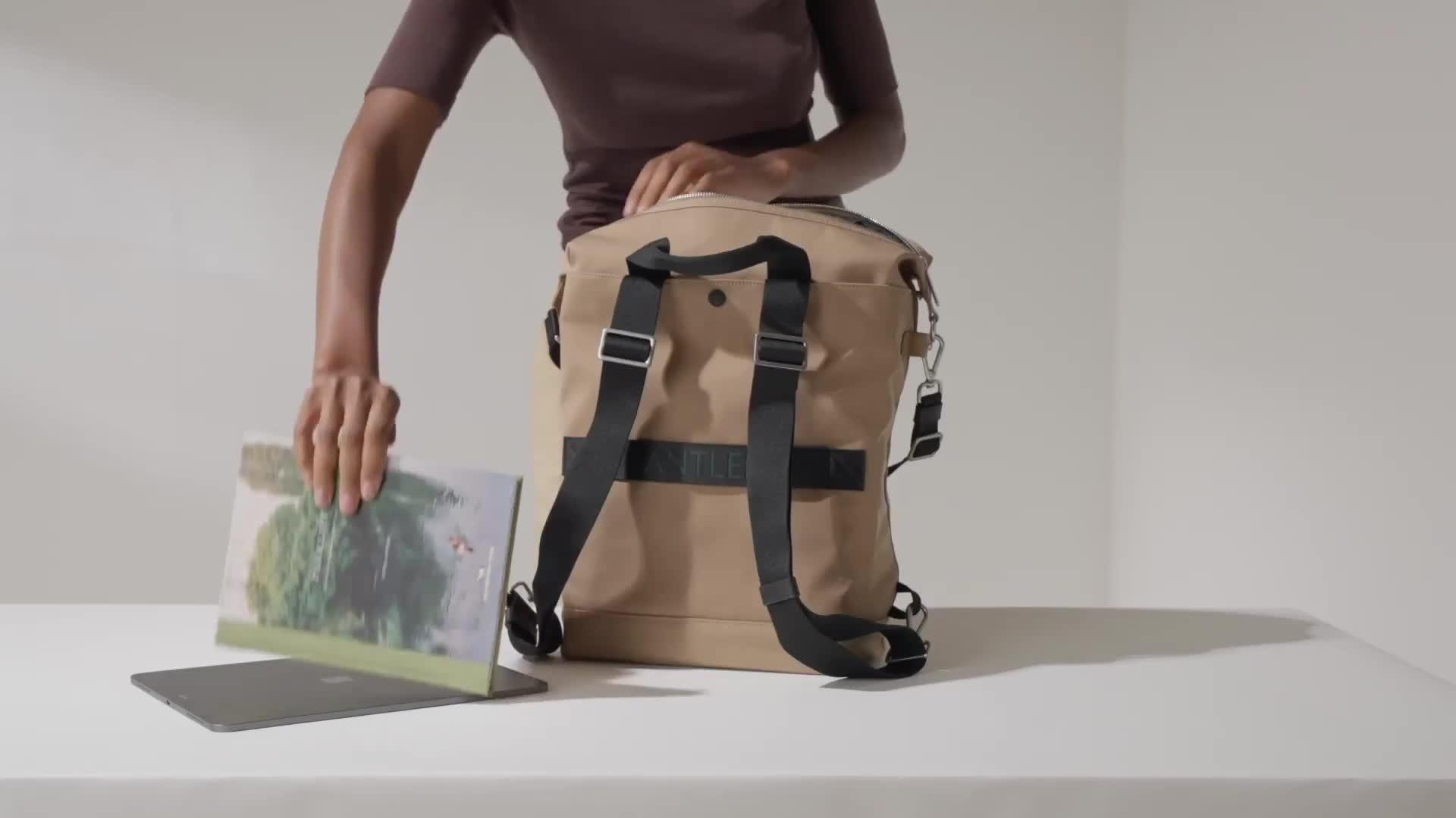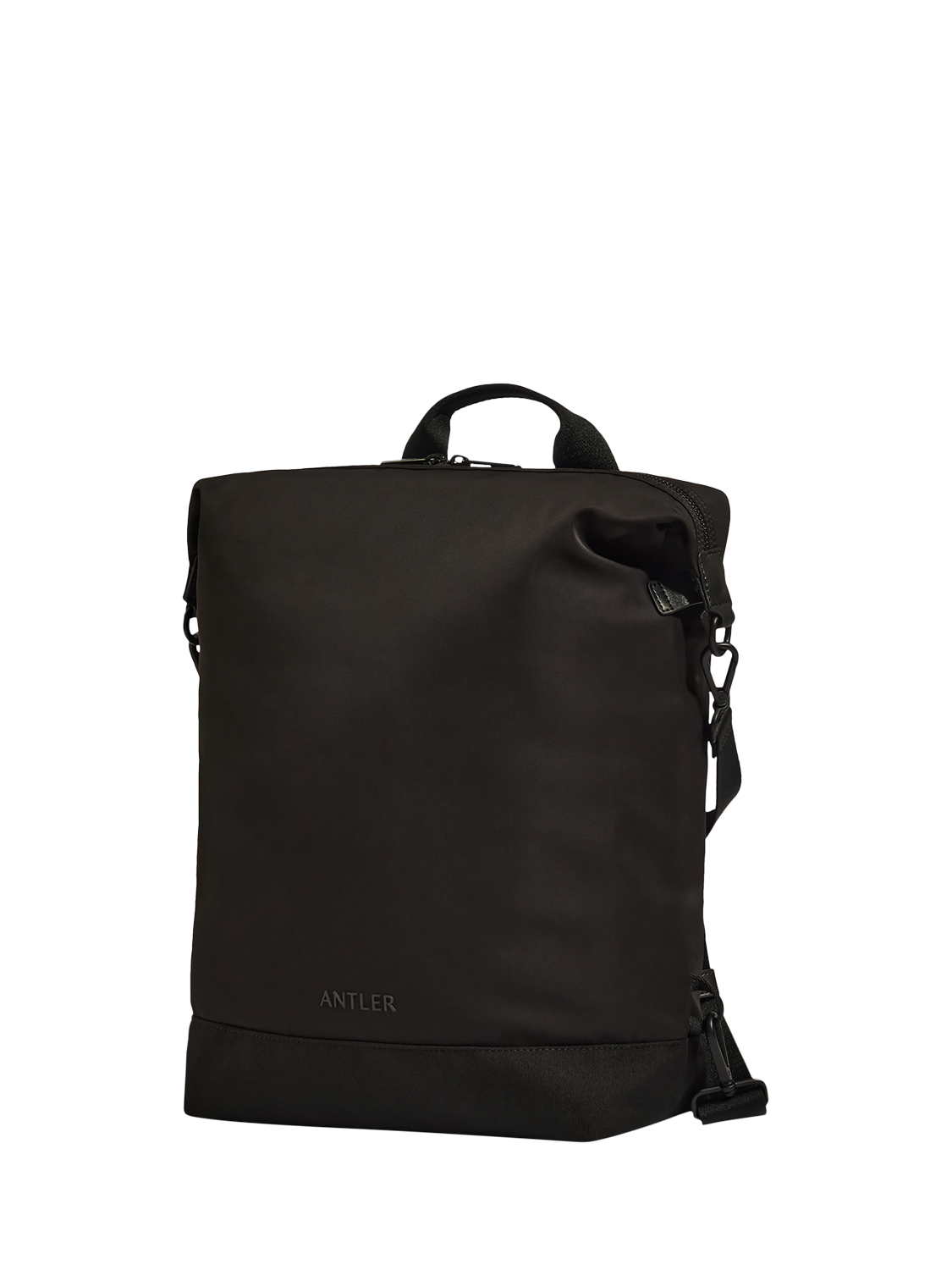 It's finished with premium leather trims, and inside a padded laptop compartment protects your tech, while seven internal pockets keep everything in place. Designed to fit 14" and 16" devices.