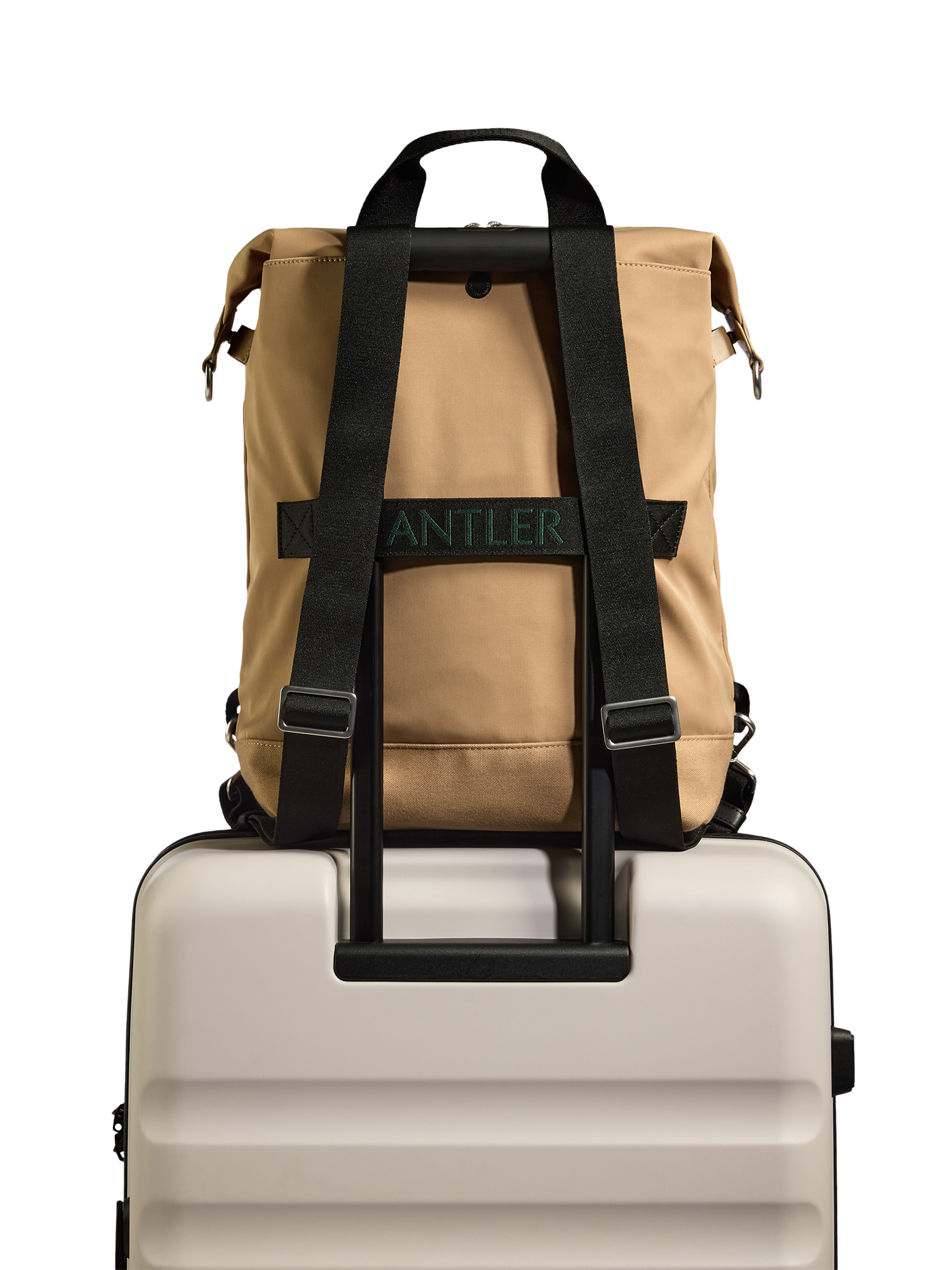 It's finished with premium leather trims, and inside a padded laptop compartment protects your tech, while seven internal pockets keep everything in place. Designed to fit 14" and 16" devices.