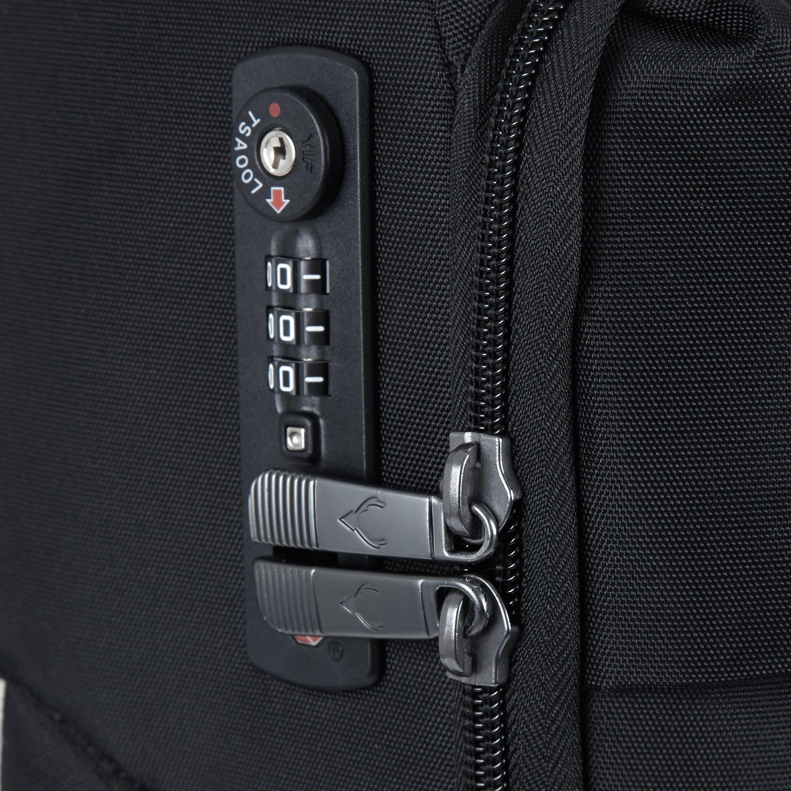 The case features a recessed TSA Lock on top of front panel for ease of access, patented corner protectors, unique recessed handle area for comfort, large front pocket and a ultra light highly technical frame structure with rip resistant fabric.