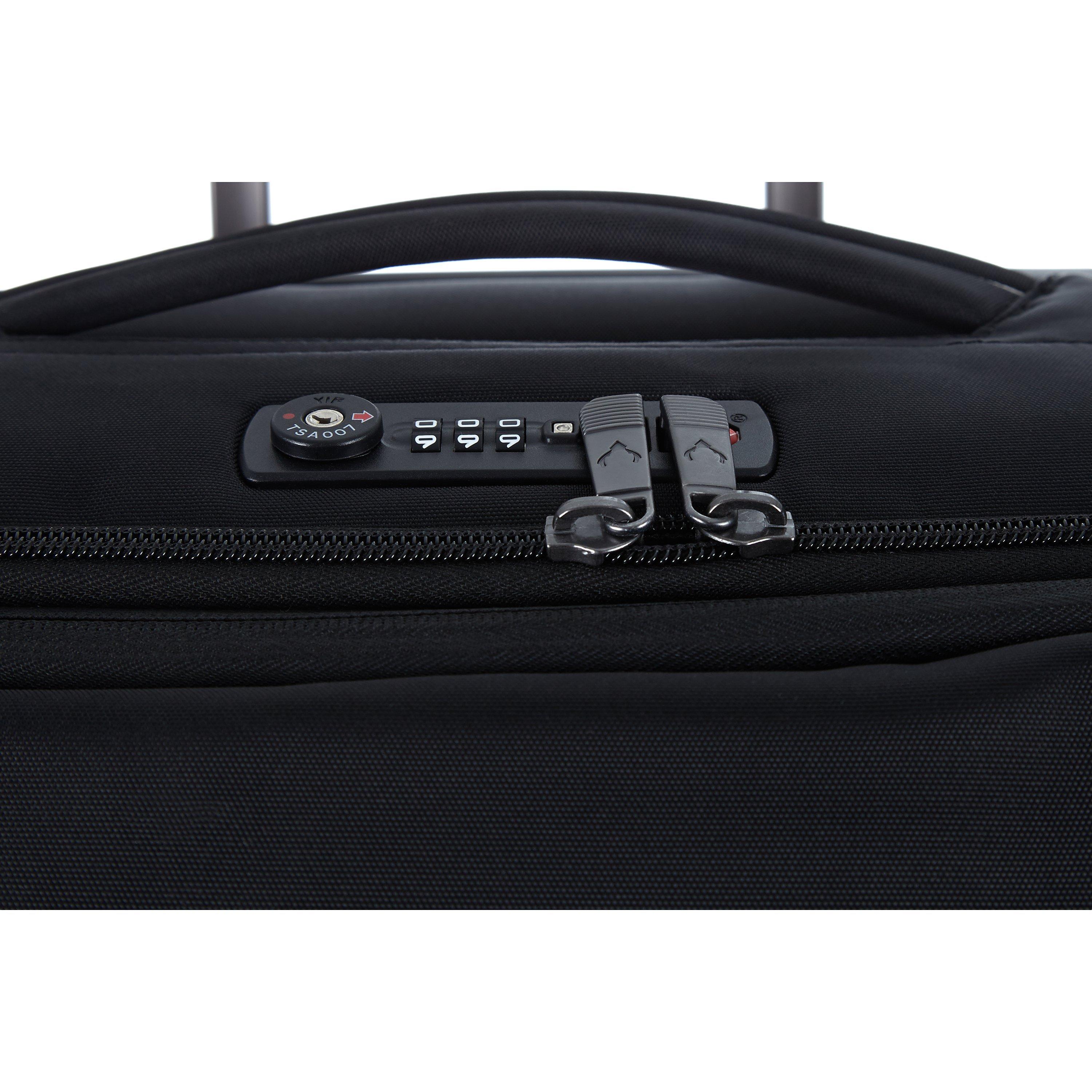 The case features a recessed TSA Lock on top of front panel for ease of access, patented corner protectors, unique recessed handle area for comfort, large front pocket and a ultra light highly technical frame structure with rip resistant fabric.