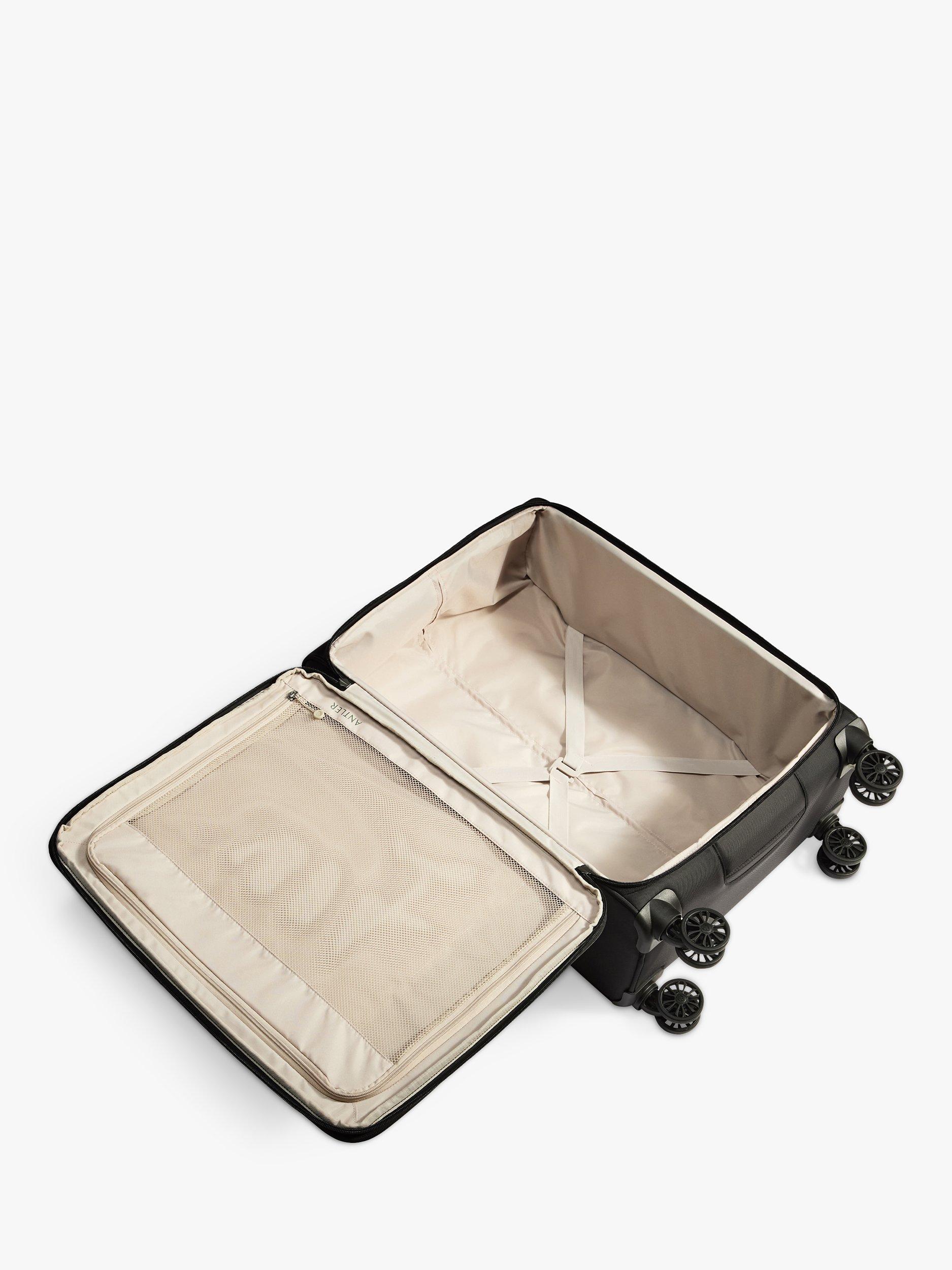 Experience the lighter side of travel with Antler's Soft Stripe Medium suitcase. Crafted entirely from fully recycled lightweight polyester, Soft Stripe’s innovative construction ensures superior strength and durability with a more responsible outlook, and with convenient expander functionality, you can effortlessly fit in extra souvenirs collected along the way.