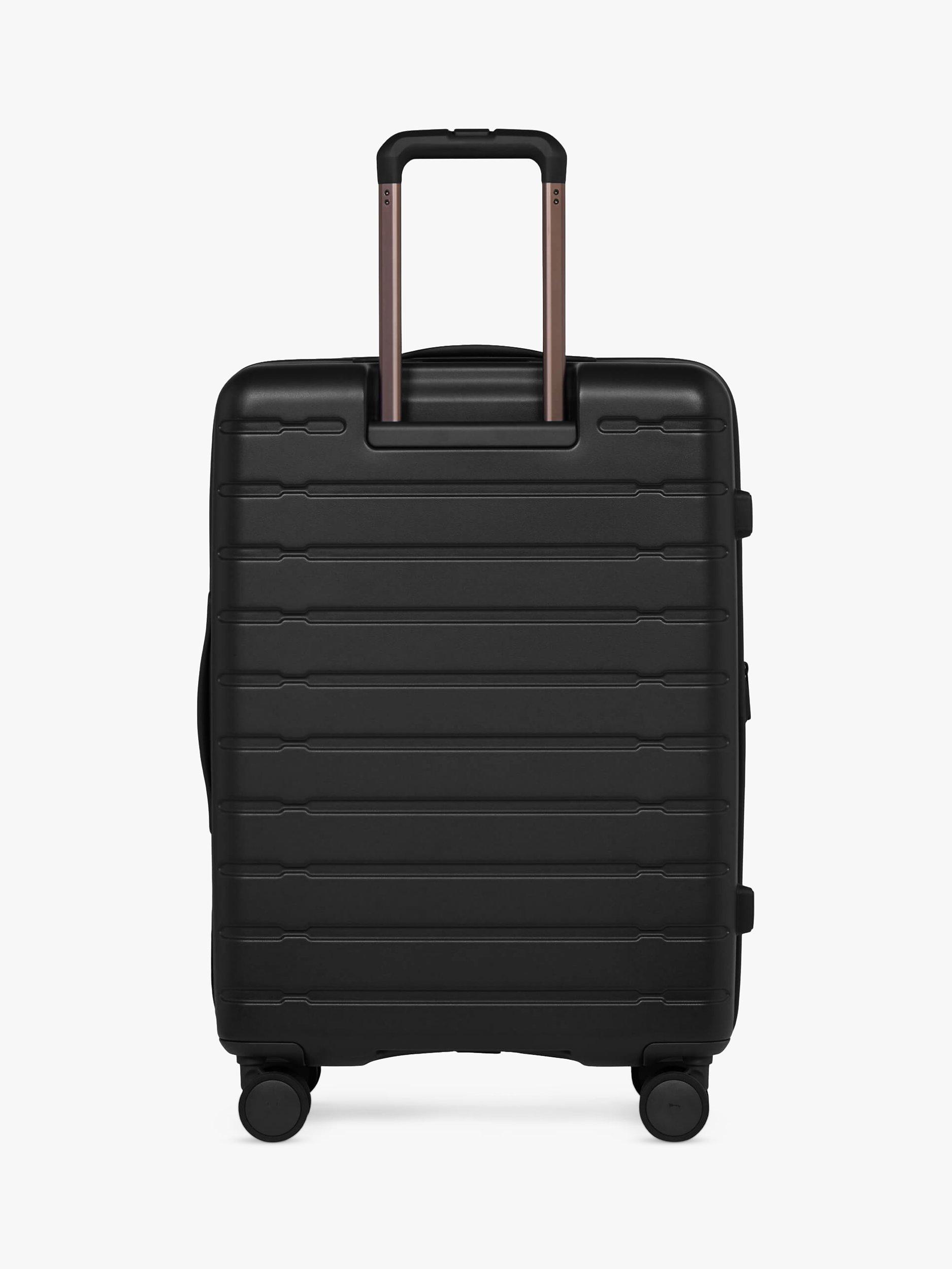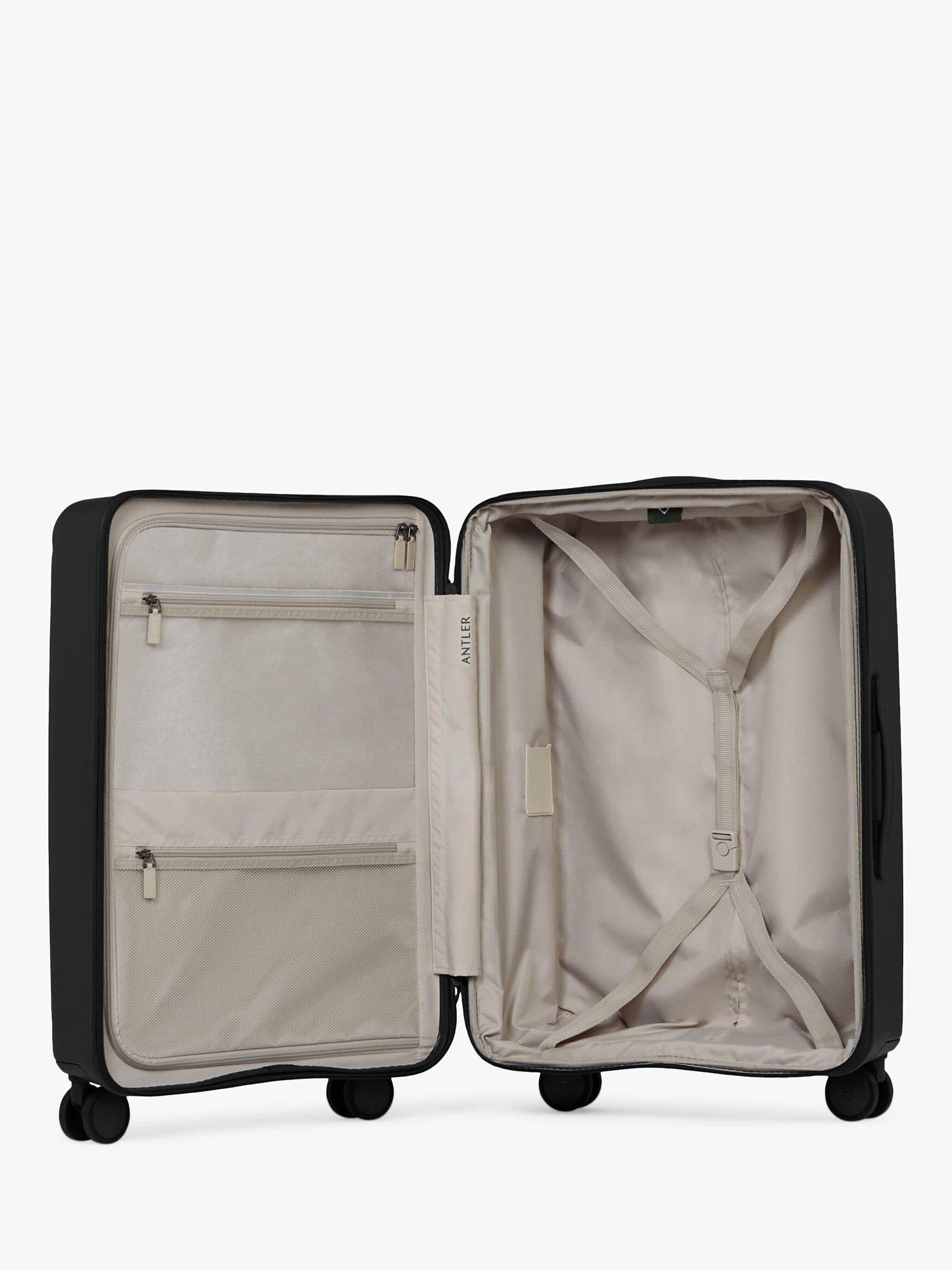 Stamford fuses Antler’s timeless British design with modern Japanese innovation. Hinomoto’s 360-degree rotating wheels offer enhanced control and a muted tread, thanks to their Lisof tyre fabric, developed with Mitsubishi. In-built functionality keeps these wheels well-greased for longer, lengthening your luggage’s lifespan. Stamford’s robust yet lightweight polycarbonate shell has a smooth, matt surface, making scratches less visible. A removable packing divider with a pocket sits under compression packing straps to help prevent creasing and keep clothes flat, whilst an expander zip on the case adds 5cm space. A TSA-approved combination lock keeps treasures safe. For ease the collection can be nested and stored inside each other if bought as a set