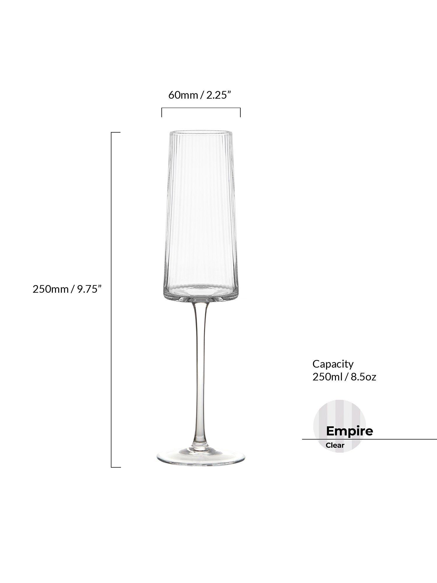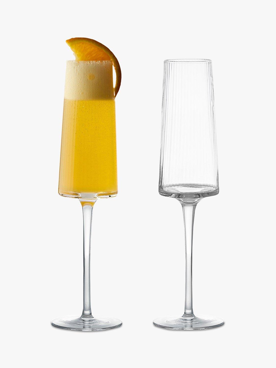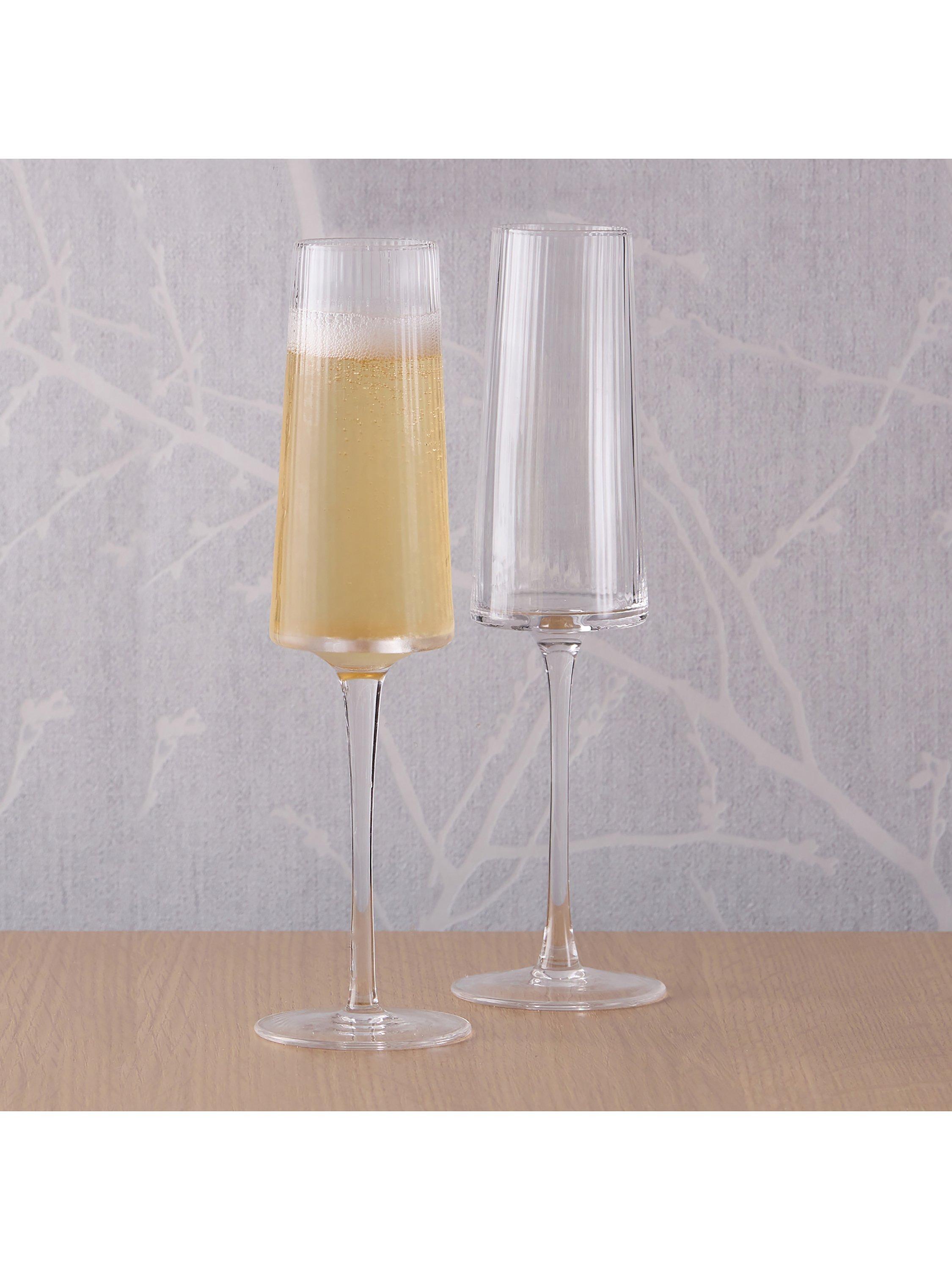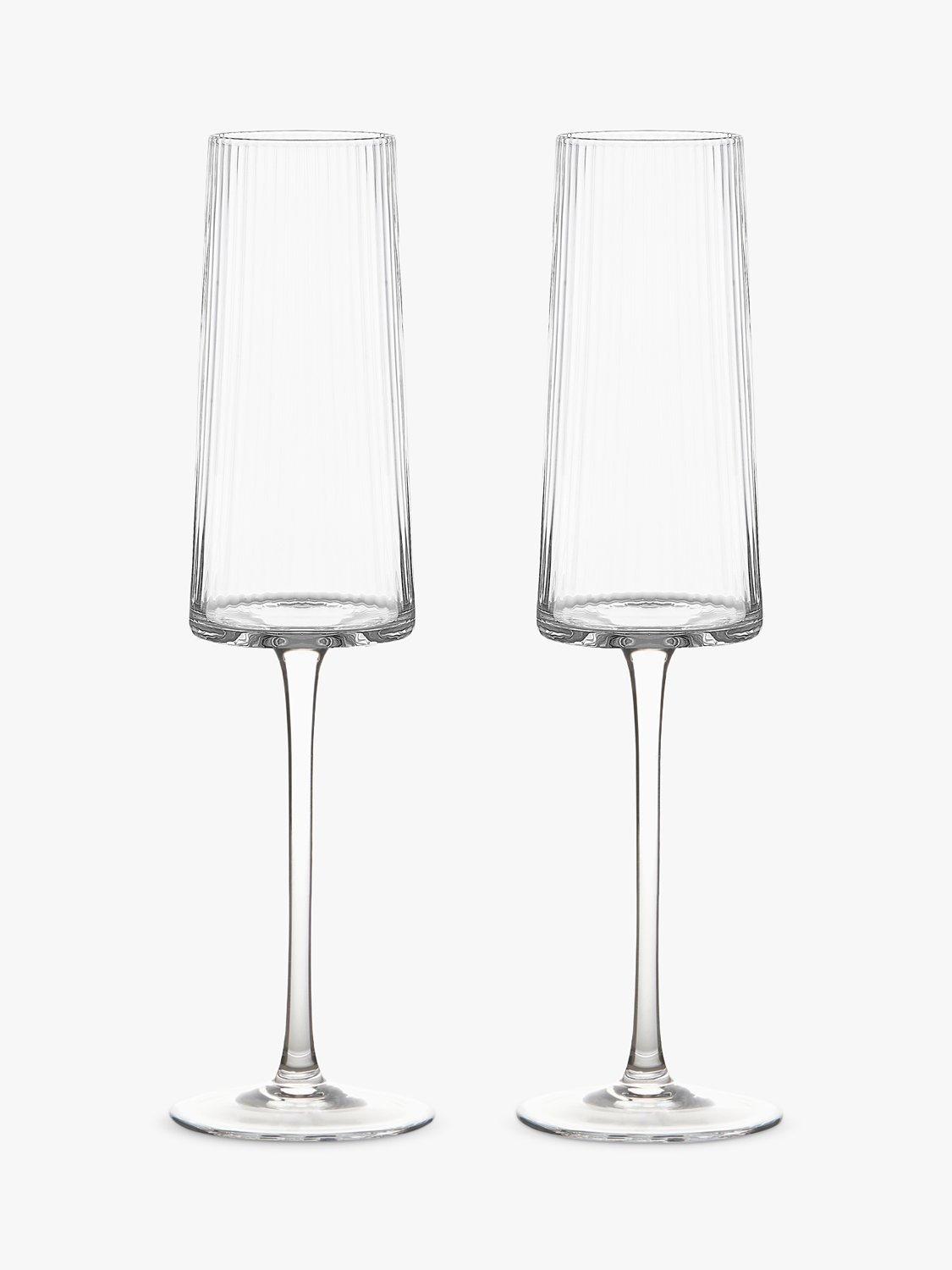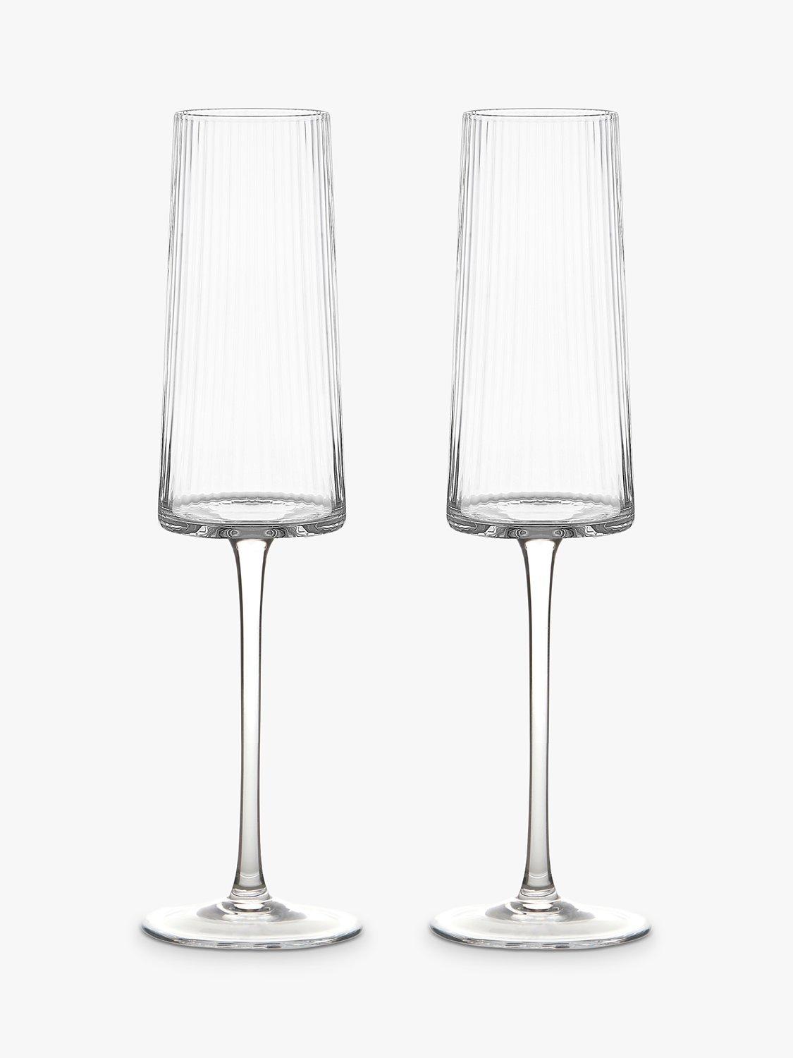 Handmade and mouthblown with fluted optics, this pair of champagne flute glasses have an elegant and modern silhouette.
