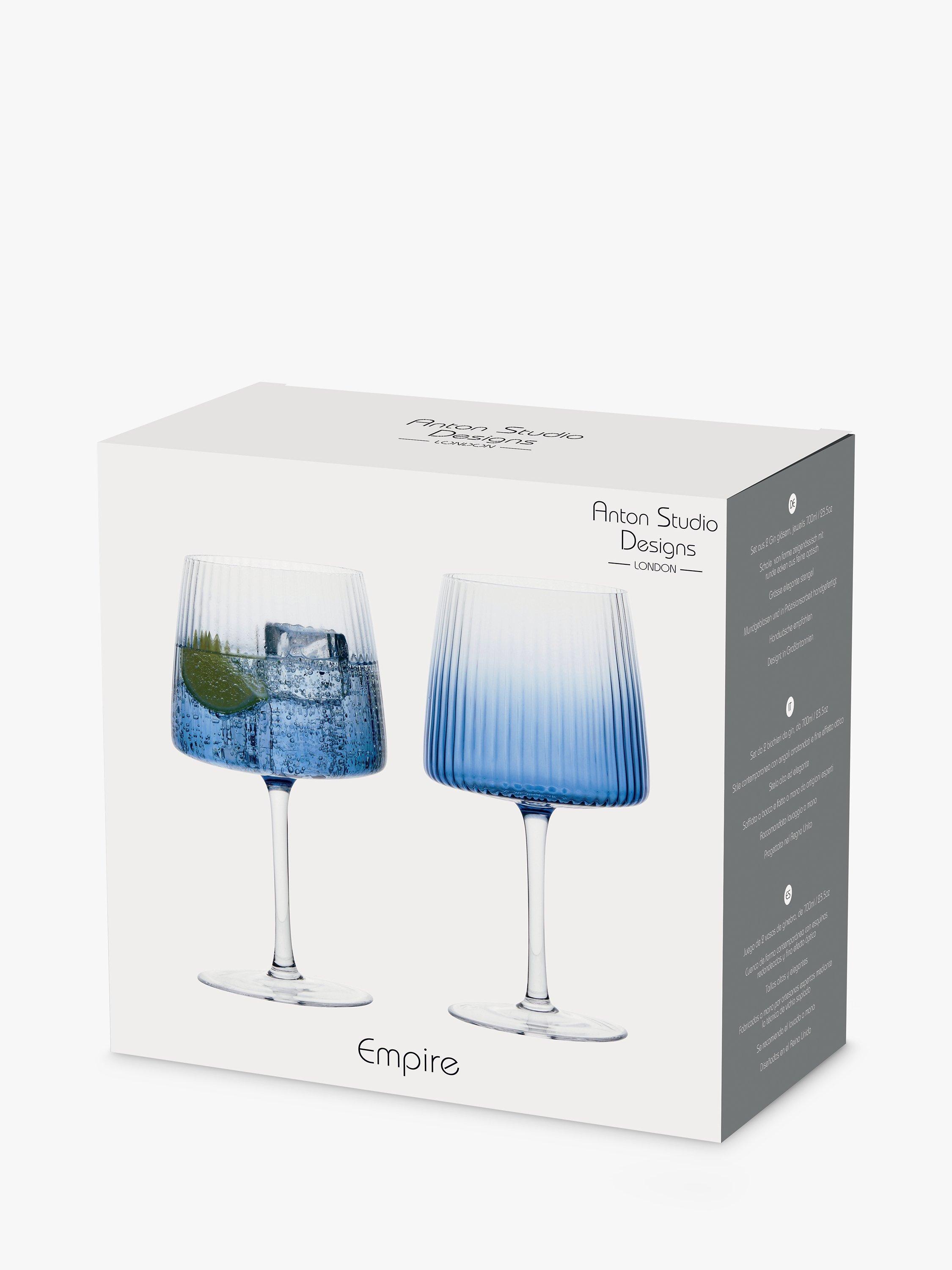 Handmade and mouthblown with fluted optics, this set of two gin glasses from Anton Studio Designs instantly create an elegant and modern silhouette.