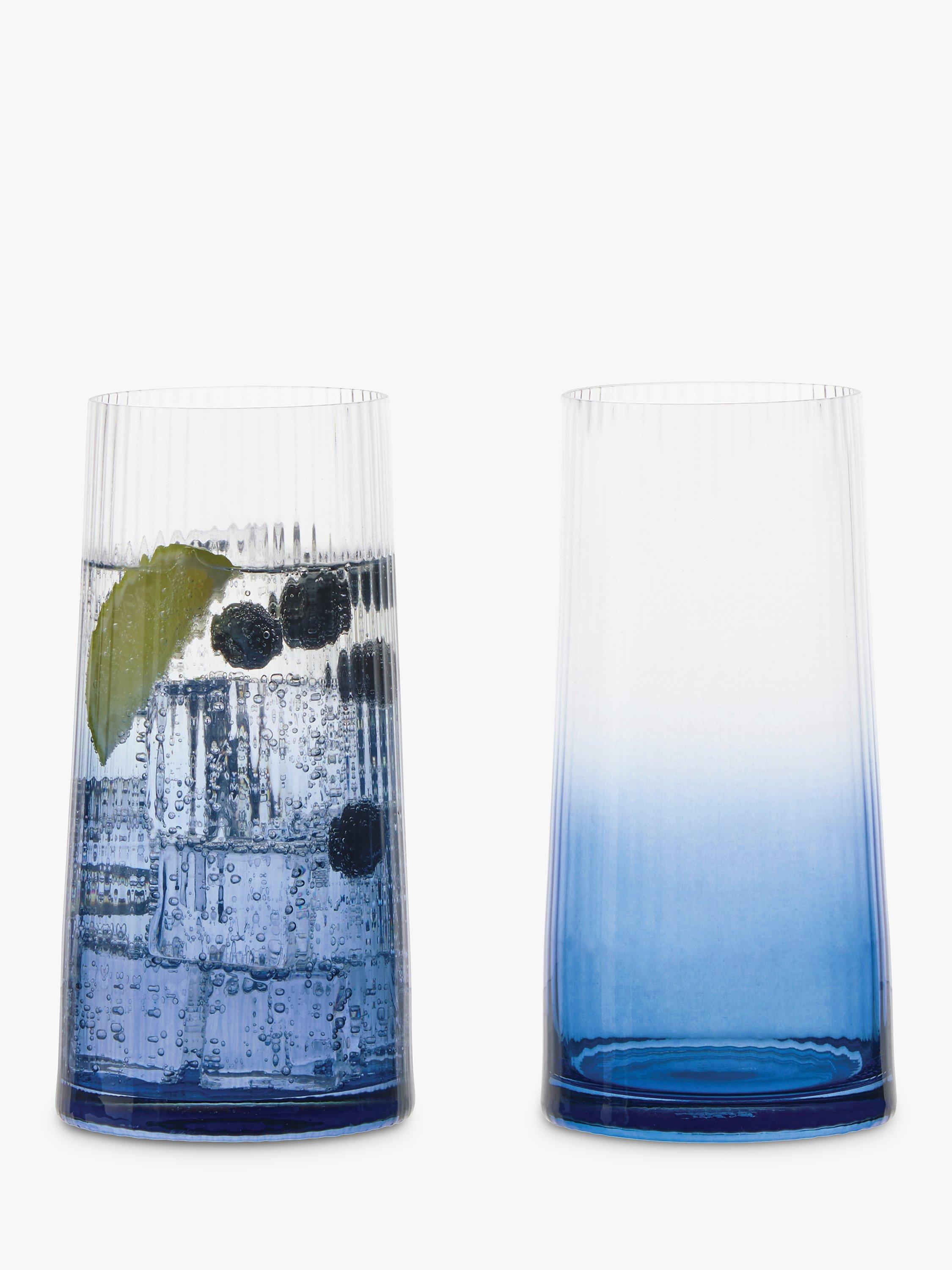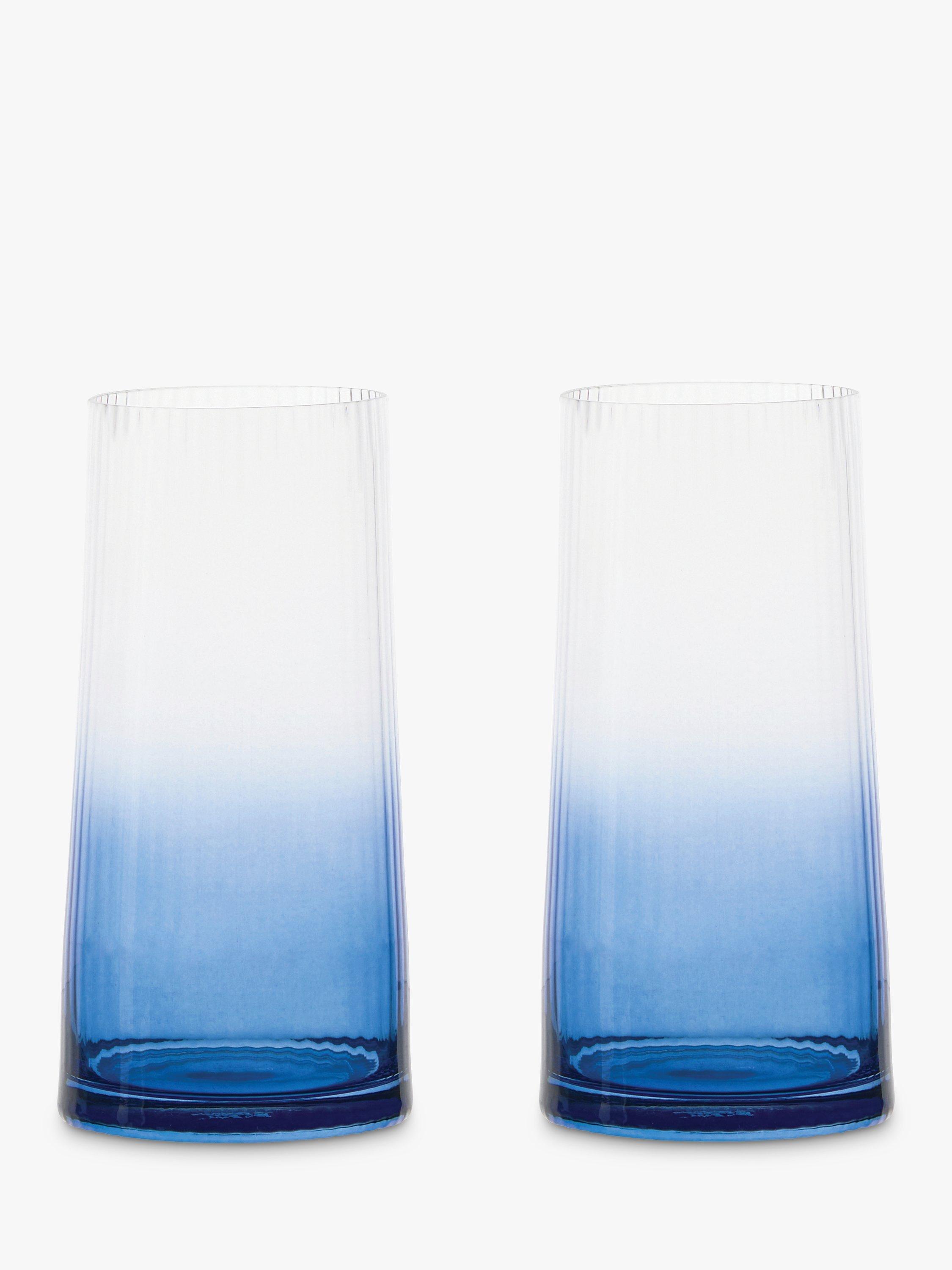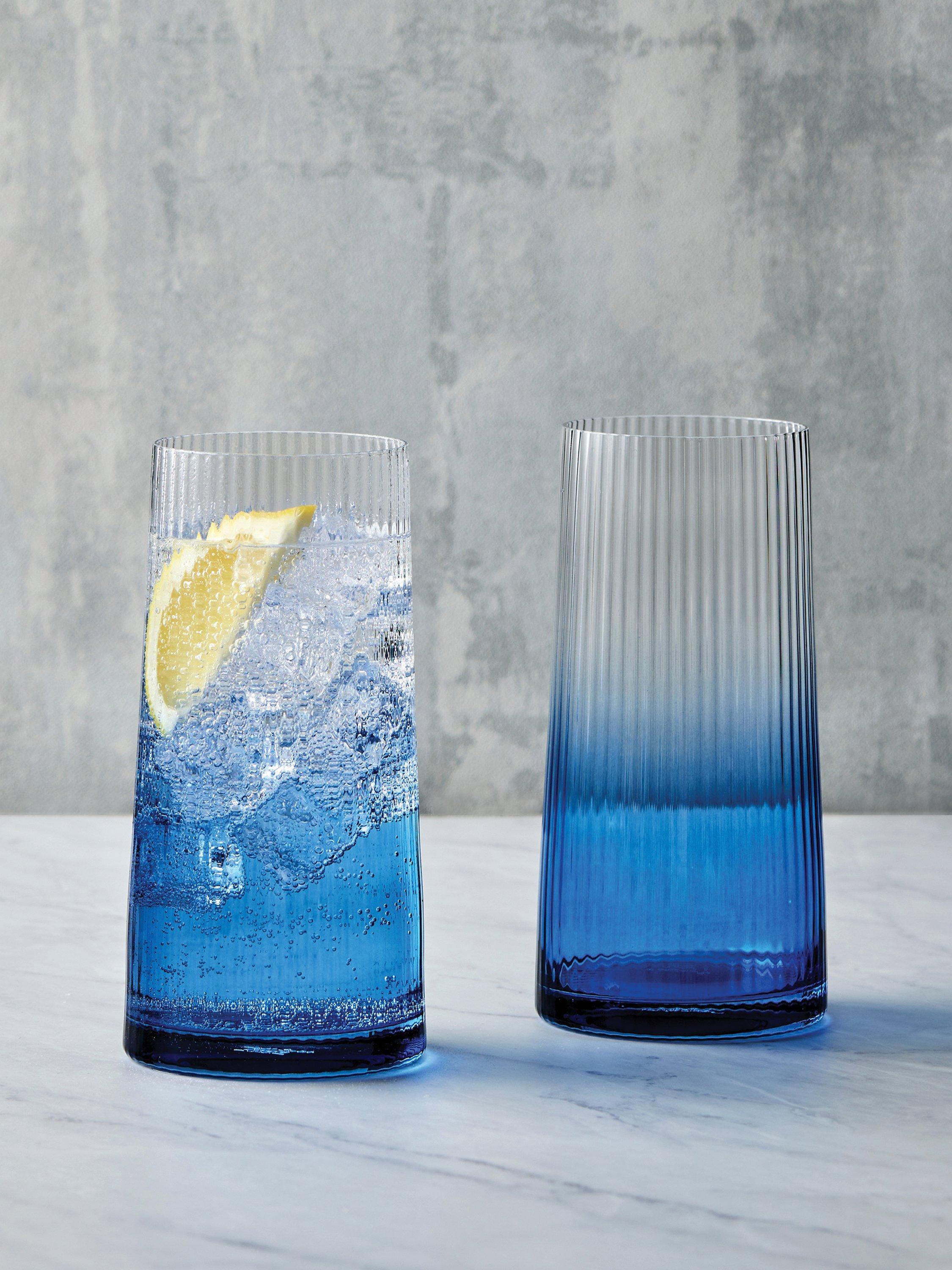 Handmade and mouth blown with fluted optics, this set of two highball glasses instantly create an elegant and modern silhouette.