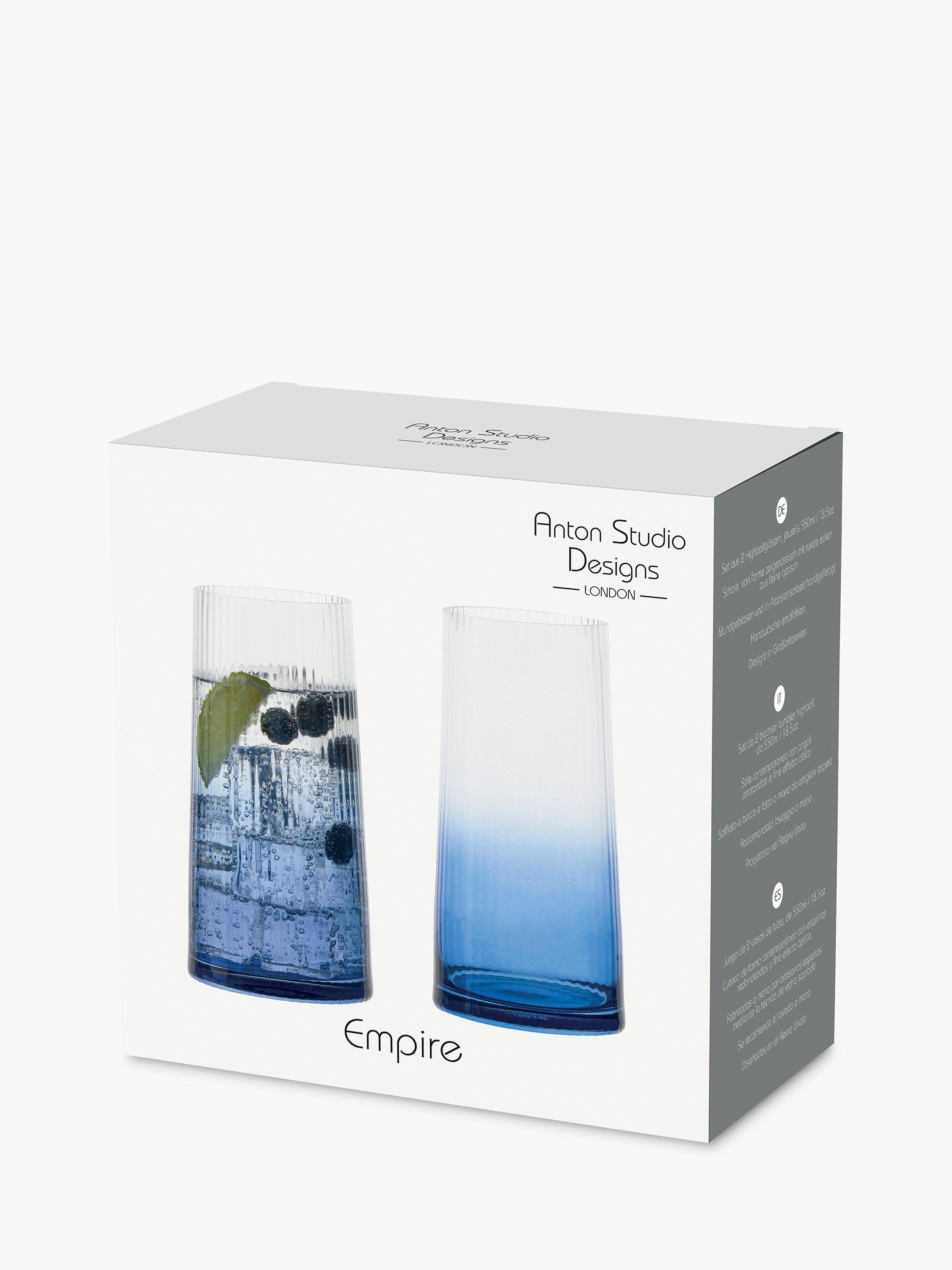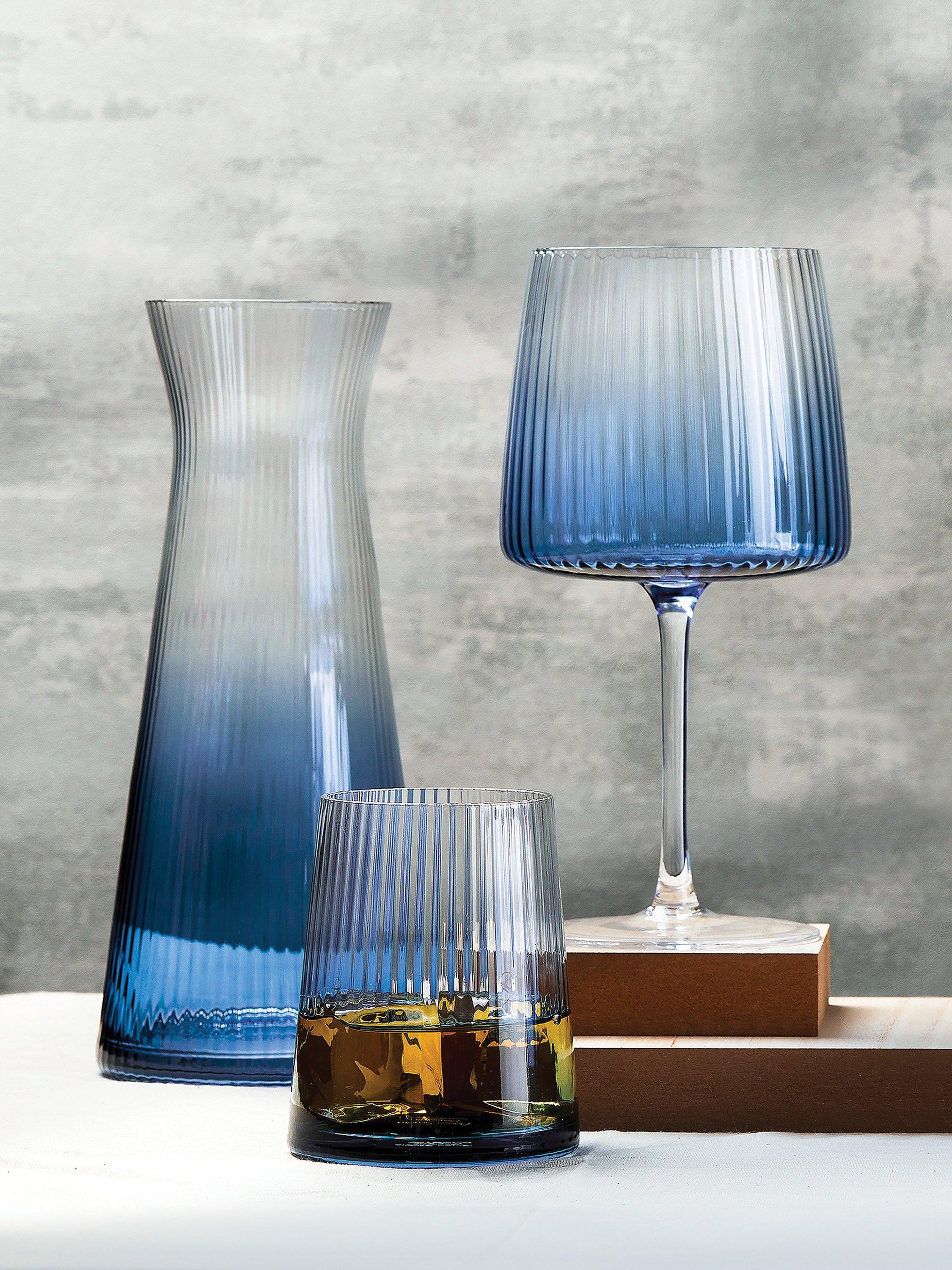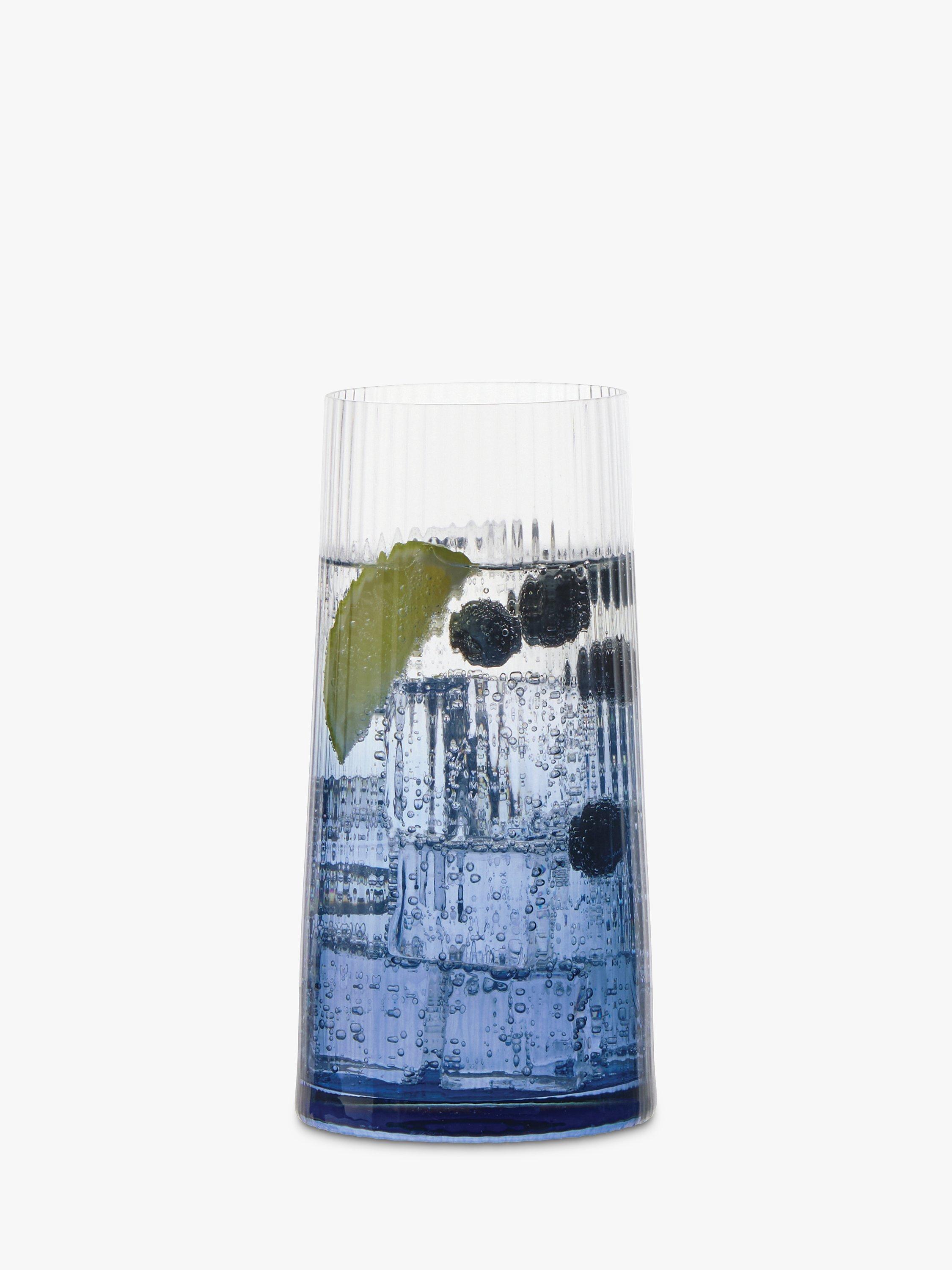 Handmade and mouth blown with fluted optics, this set of two highball glasses instantly create an elegant and modern silhouette.