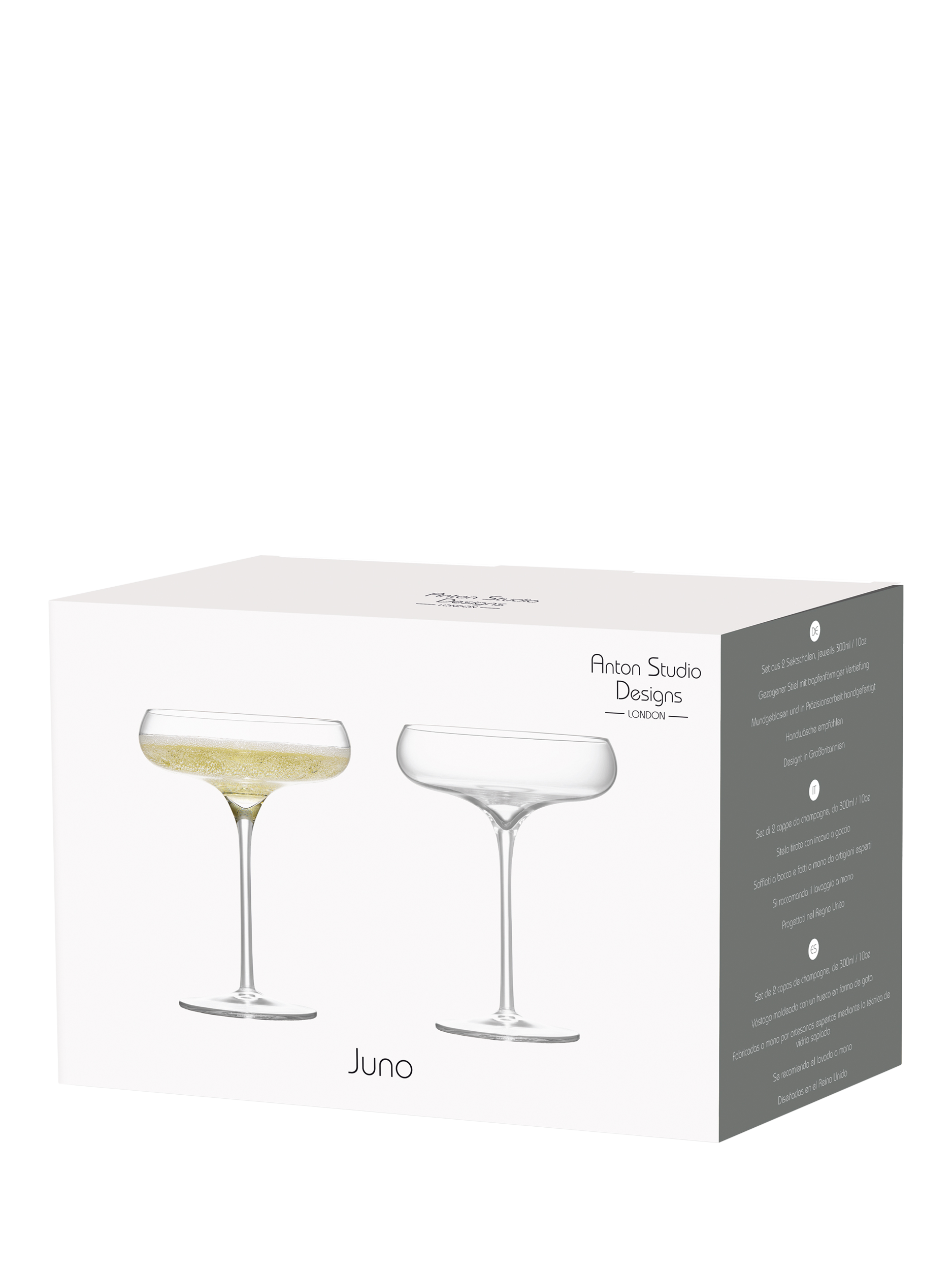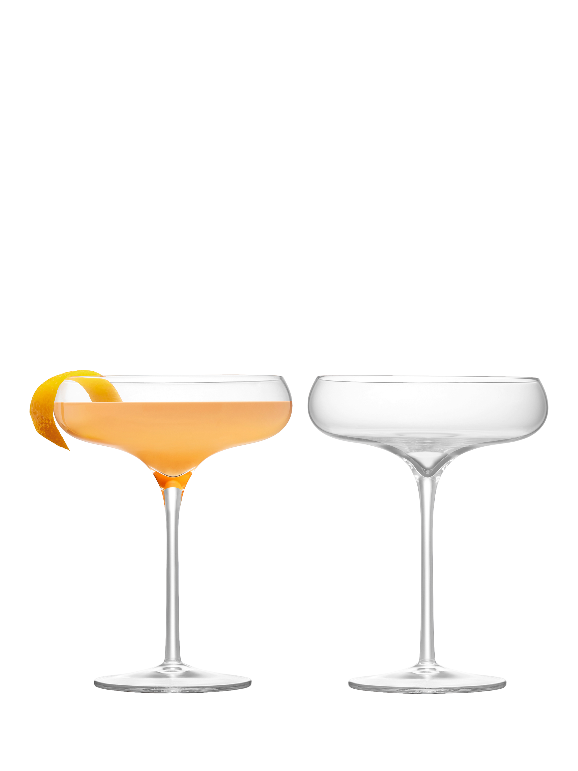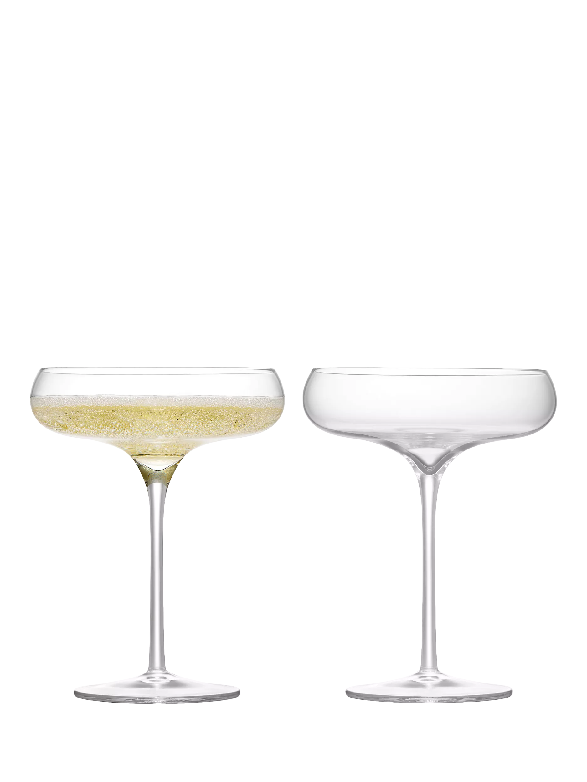 This pair of Champagne Saucers have an elegant and striking silhouette.