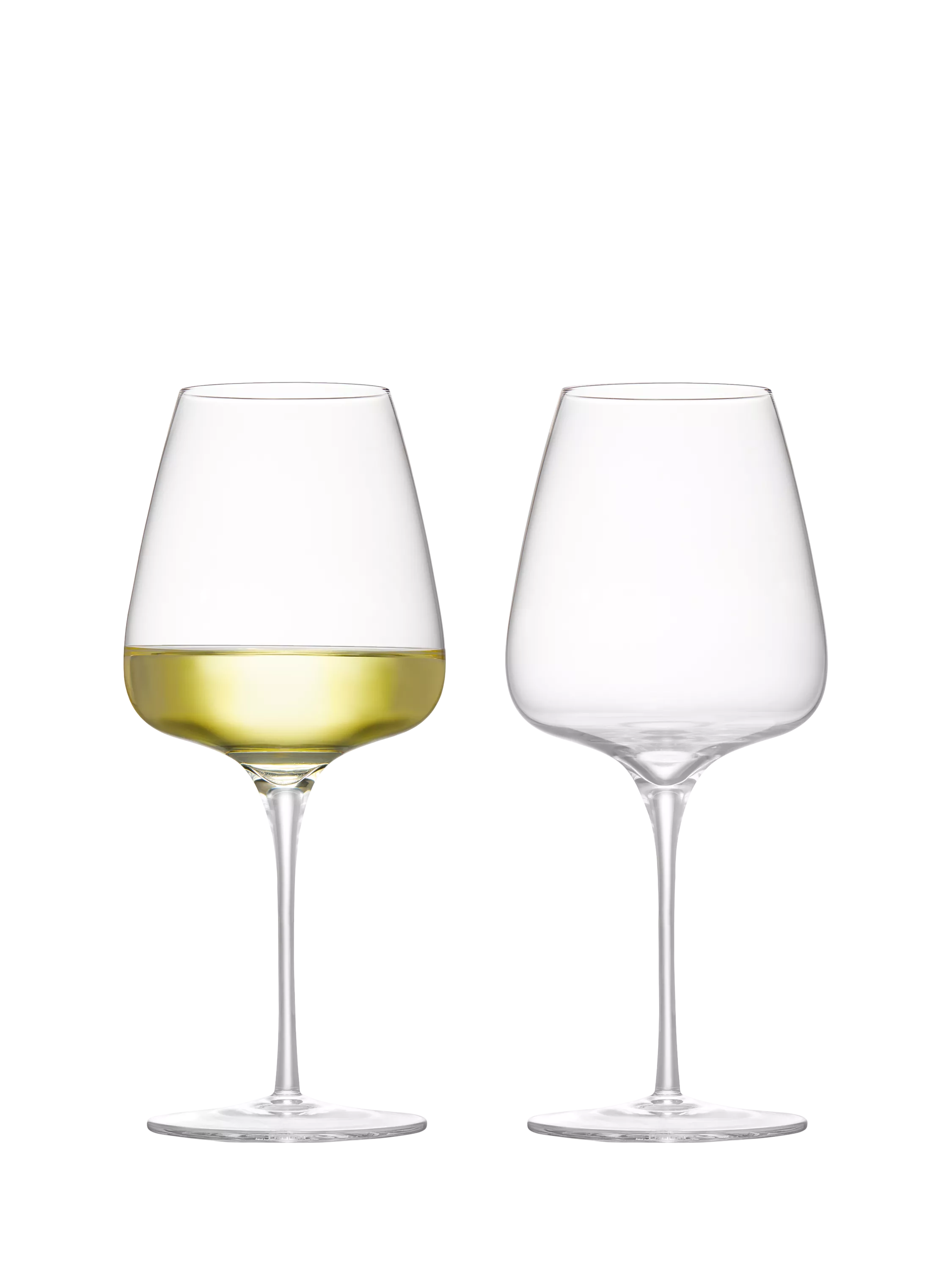 This pair of white wine glasses have an elegant and striking silhouette.