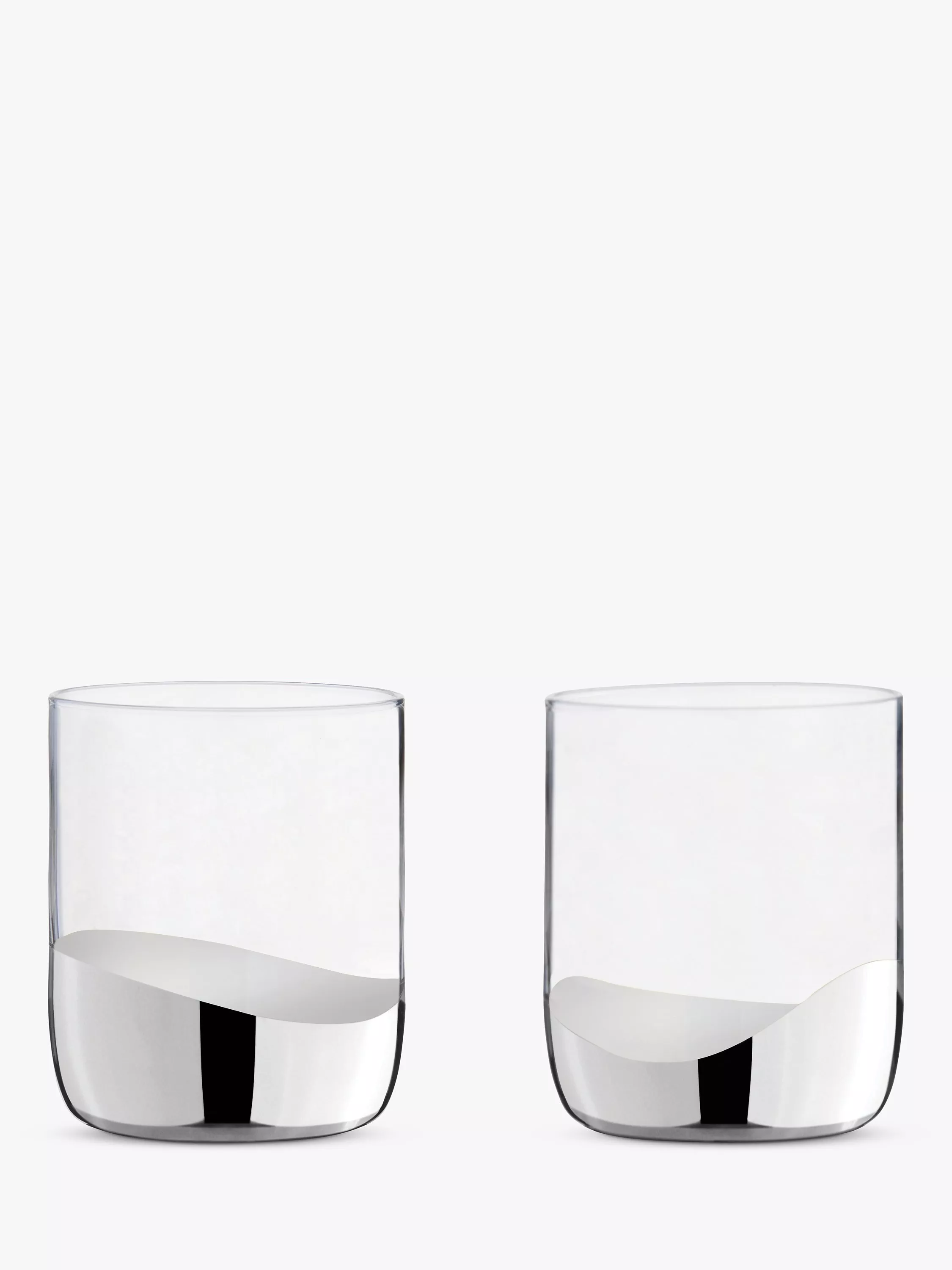 Anton Studio DesignsWave Double Old Fashioned Glass Tumblers, Set of 2, 400ml, Silver