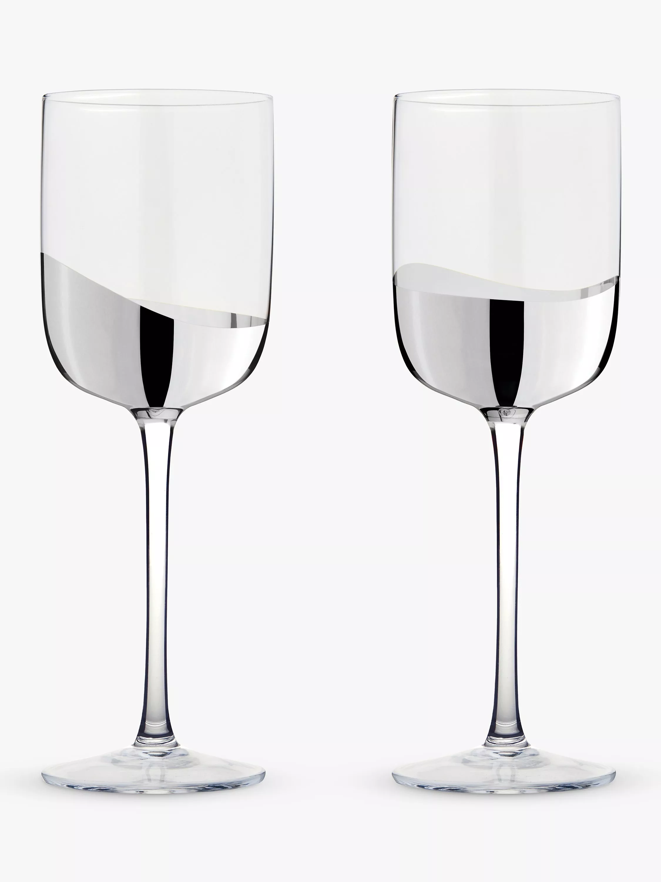 Pair of wine glasses from Anton Studio Designs with a contemporary wave-effect design and elegant stems.