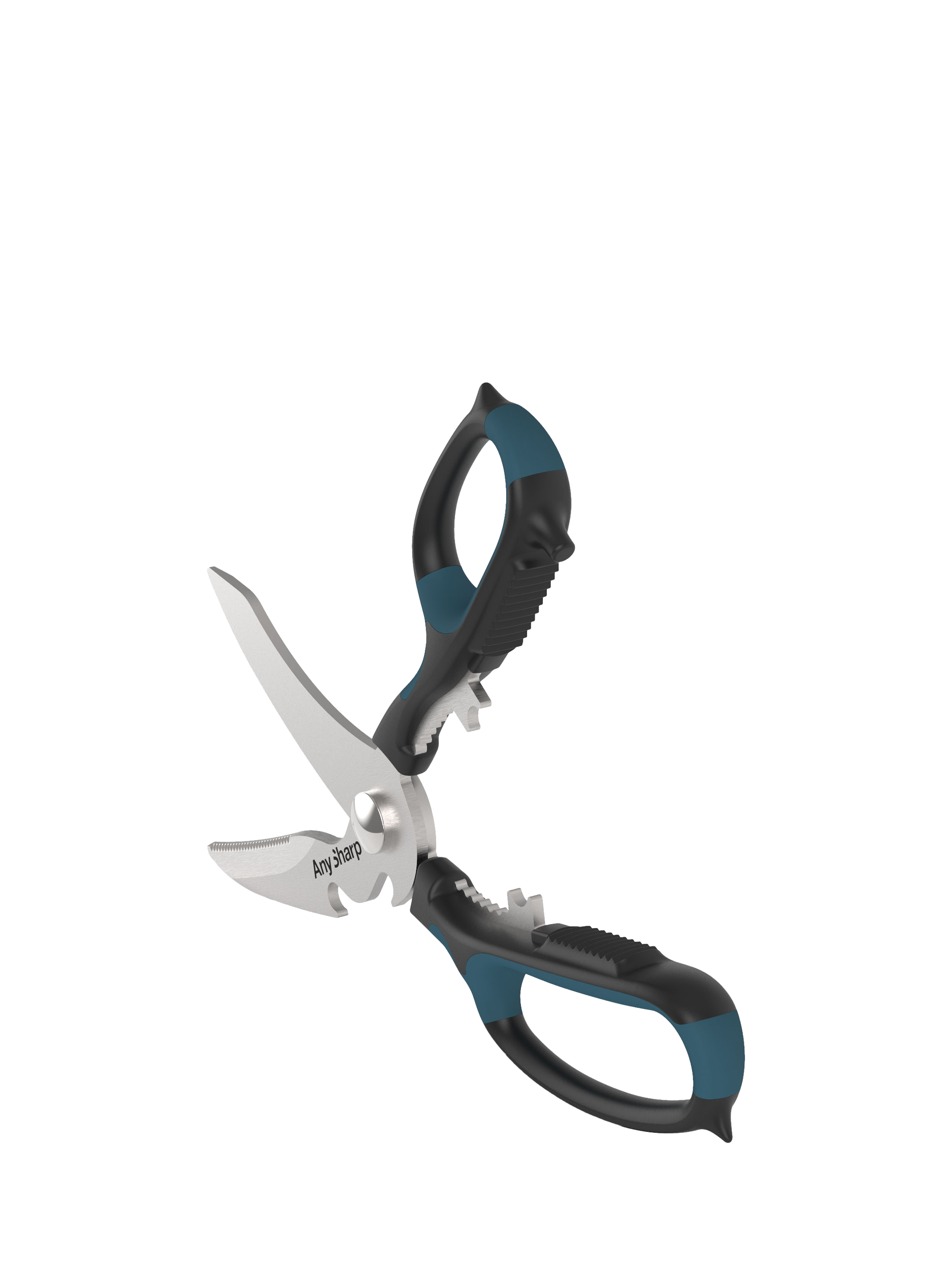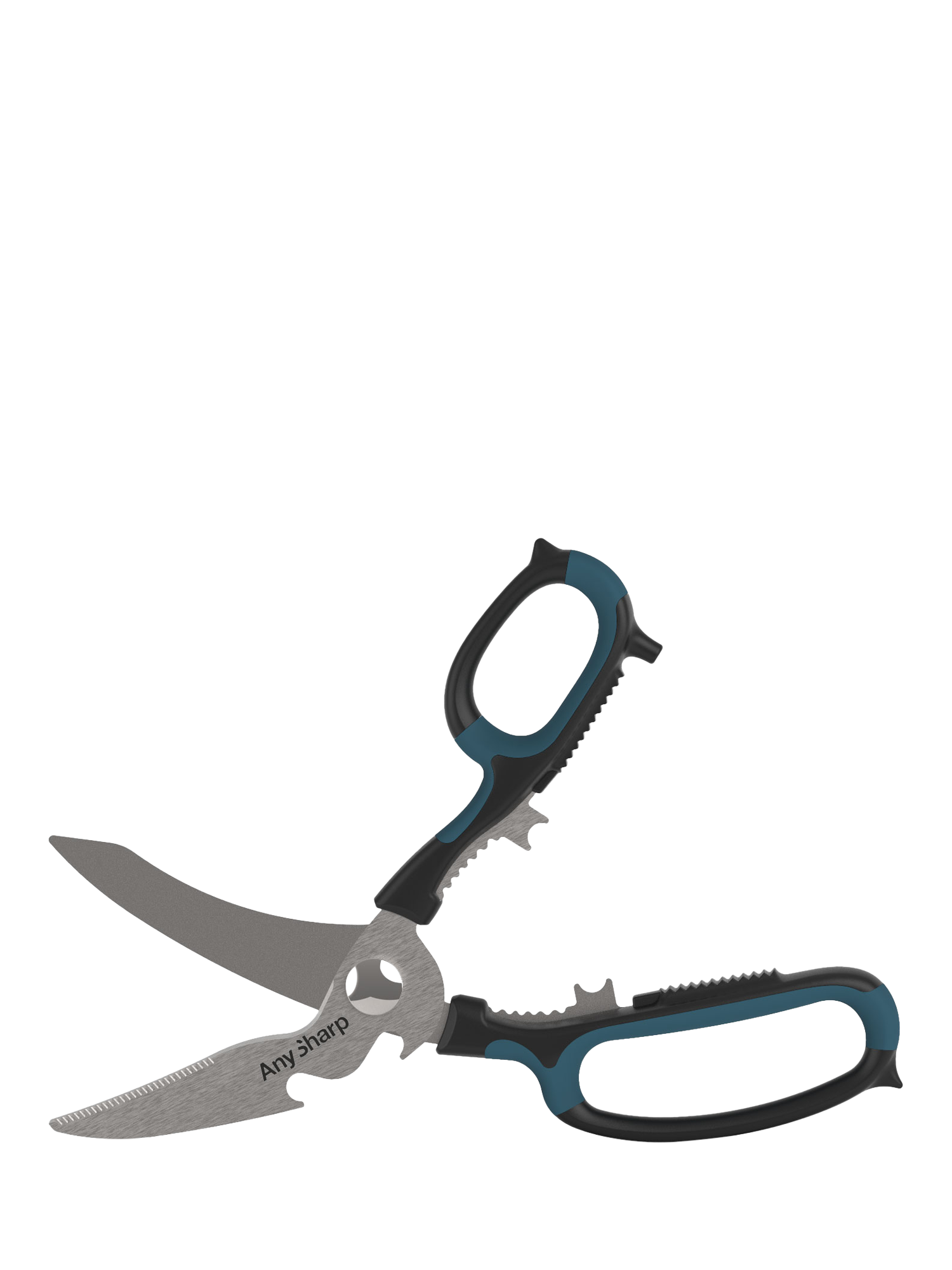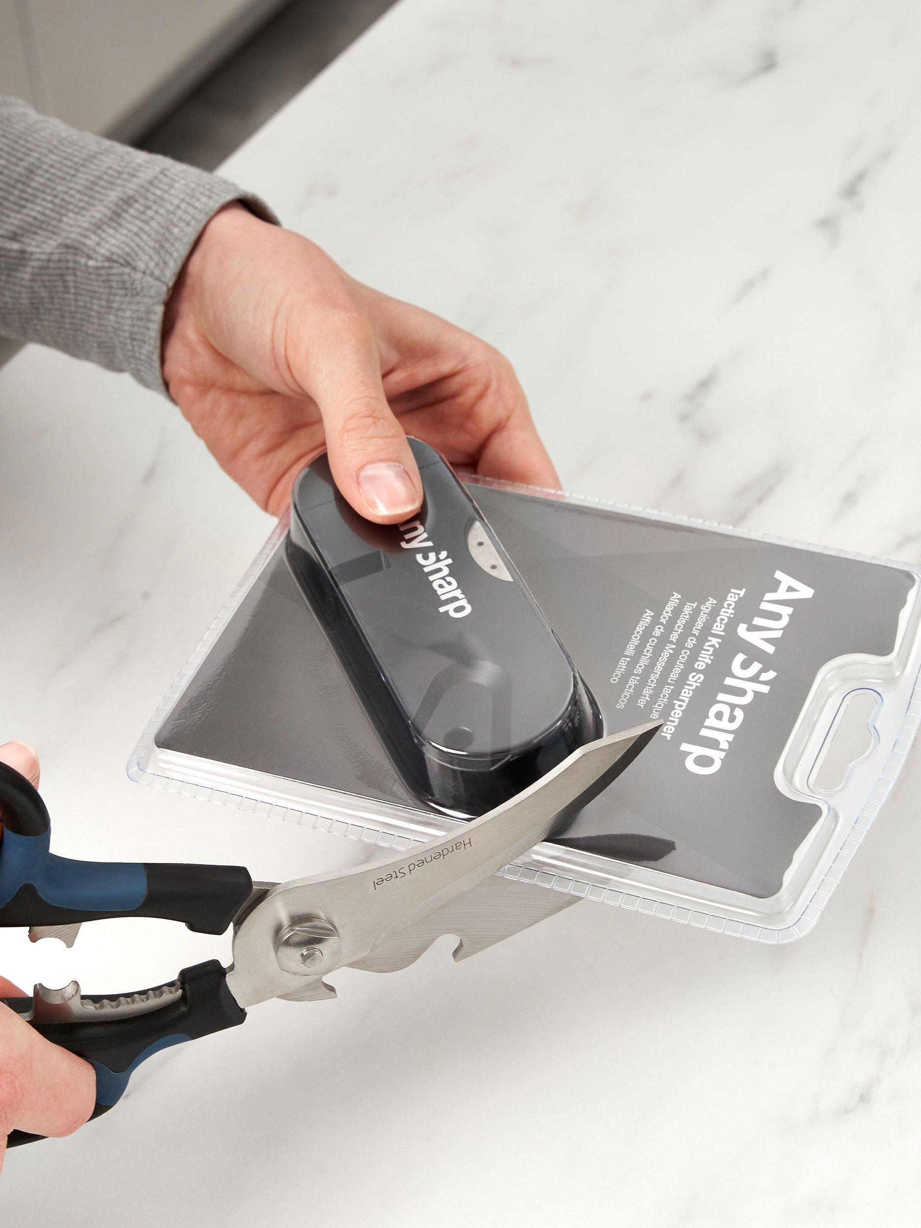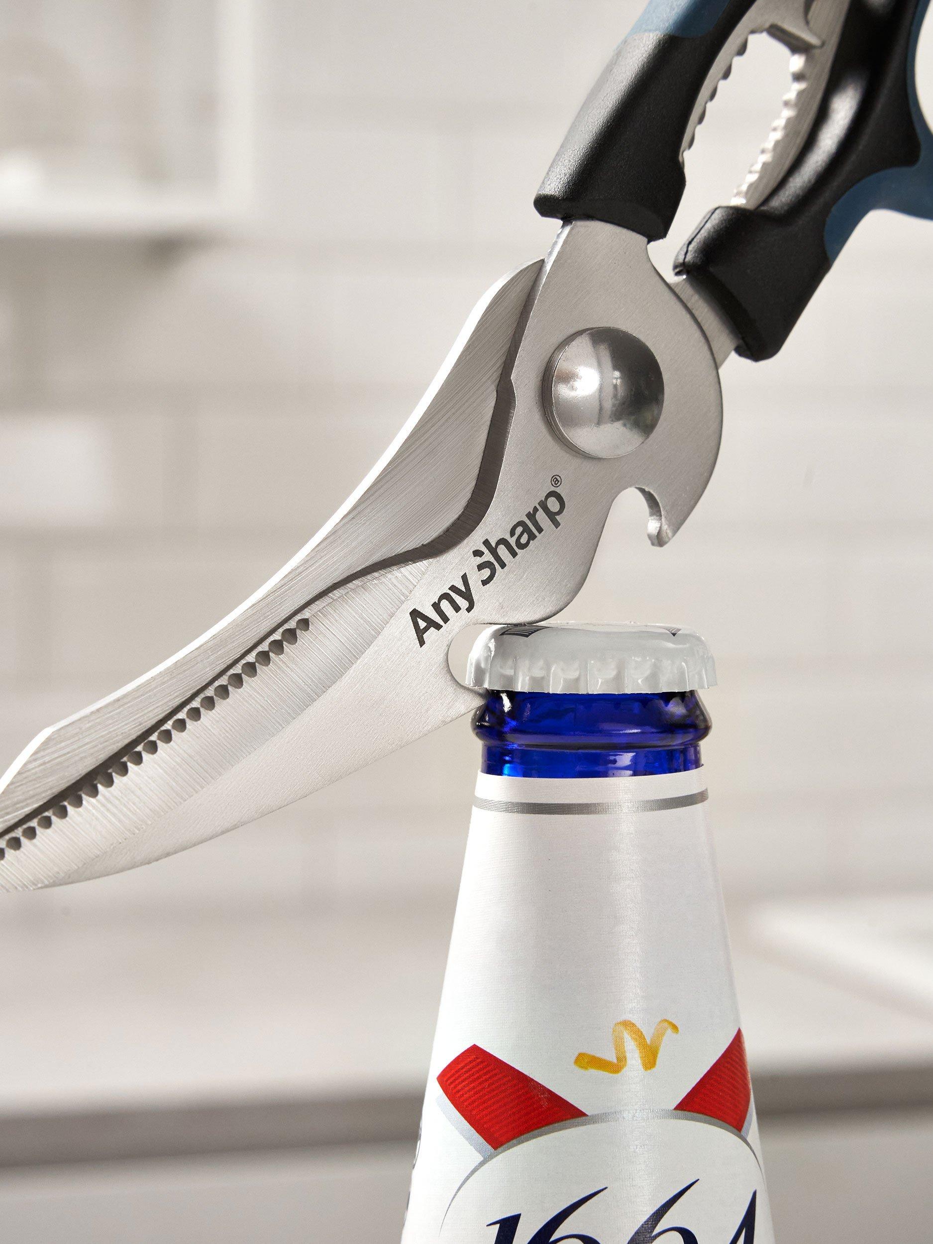 AnySharp multi-purpose scissors feature razor-sharp, hardened steel blades with a special 'cut anything' design and wide, soft grips. Multi-functional with various built-in tools for home and garden use, including a nutcracker, bottle opener, garlic crusher and wire stripper.