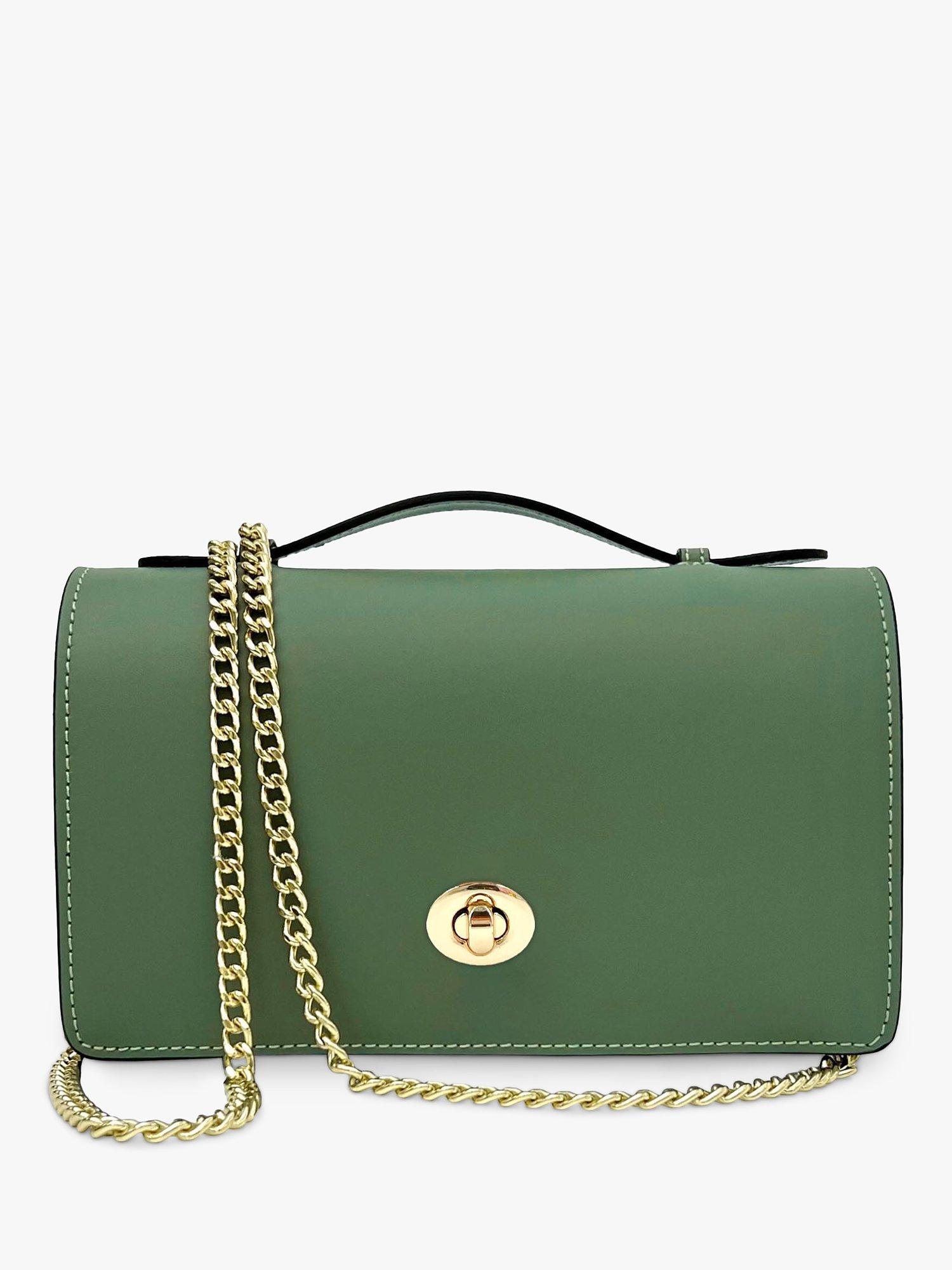 Made in Italy from smooth ruga leather, the bag is fully lined and features iconic gold detailing with a twist lock clasp and an internal zip pocket.