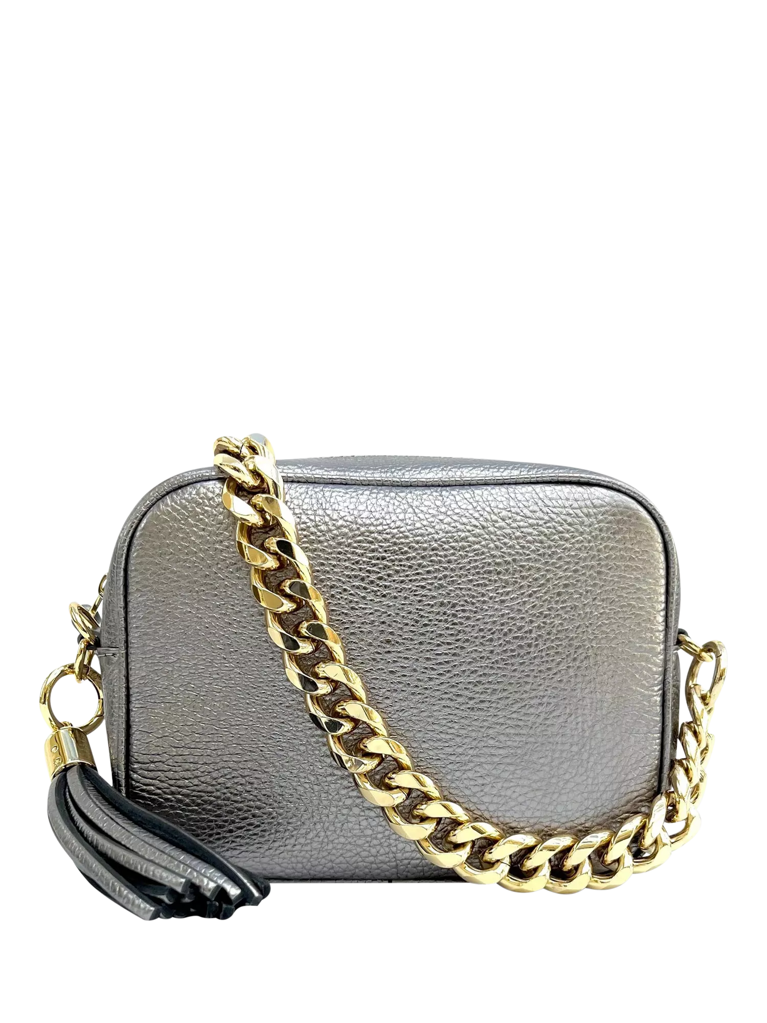 Apatchy LondonChain Strap Leather Camera Bag, Pewter