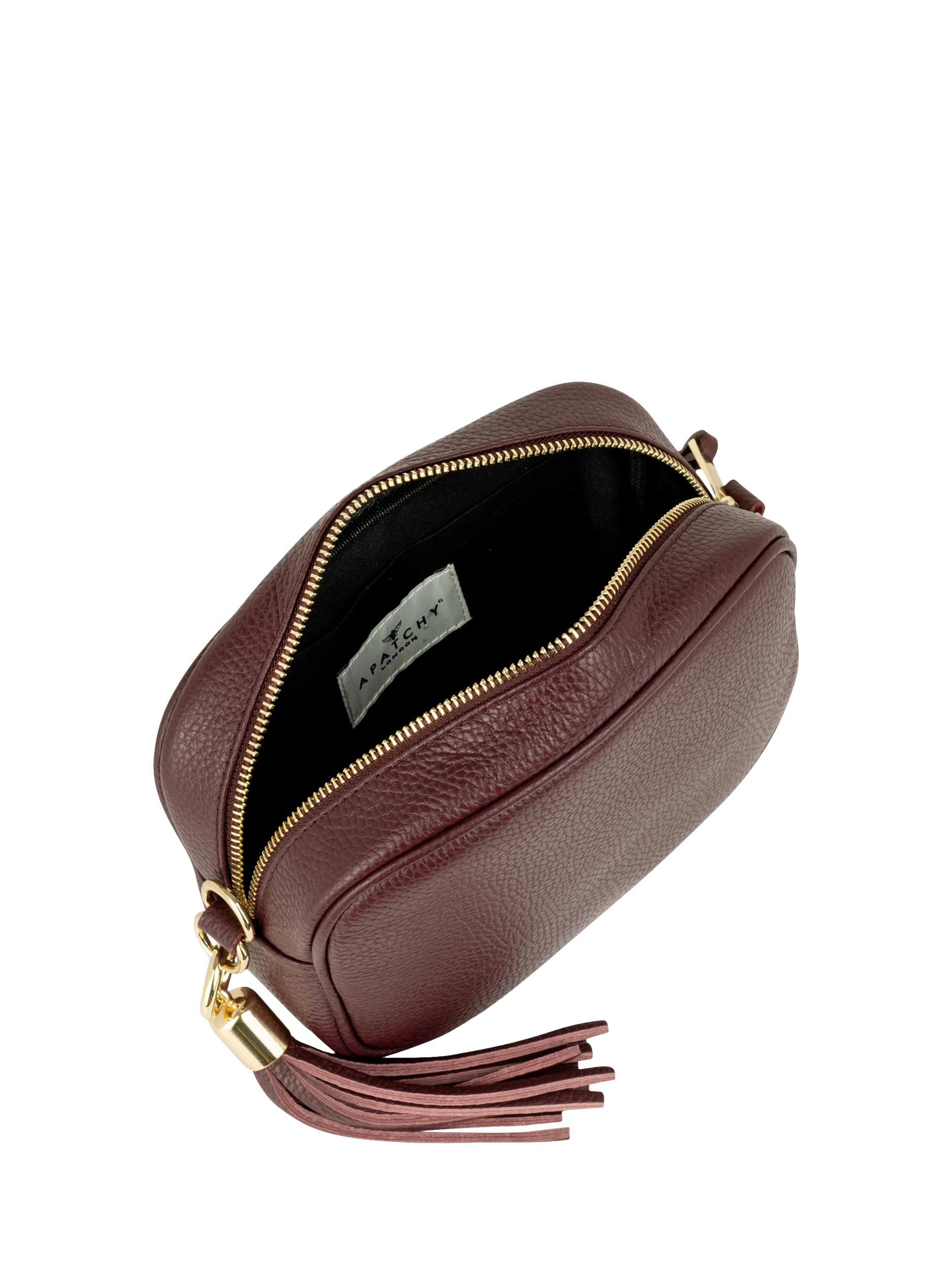 This timeless camera bag from Apatchy is perfect for all occasions, taking you stylishly from day to night. Made in Italy from supple grained pebble leather, the handbag is fully lined and features gold hardware with a stylish leather tassel.