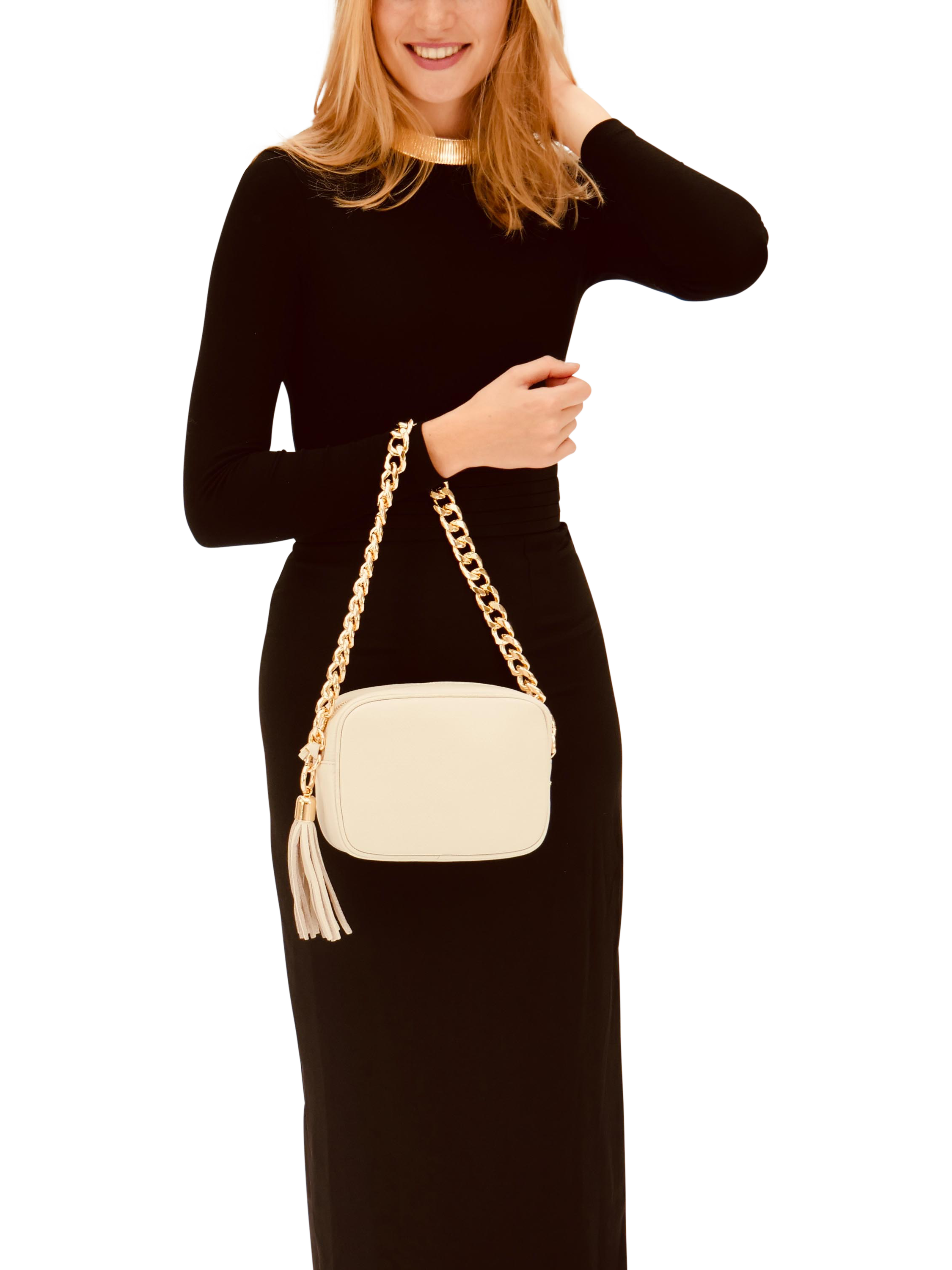 Apatchy LondonChain Strap Leather Camera Bag, Stone