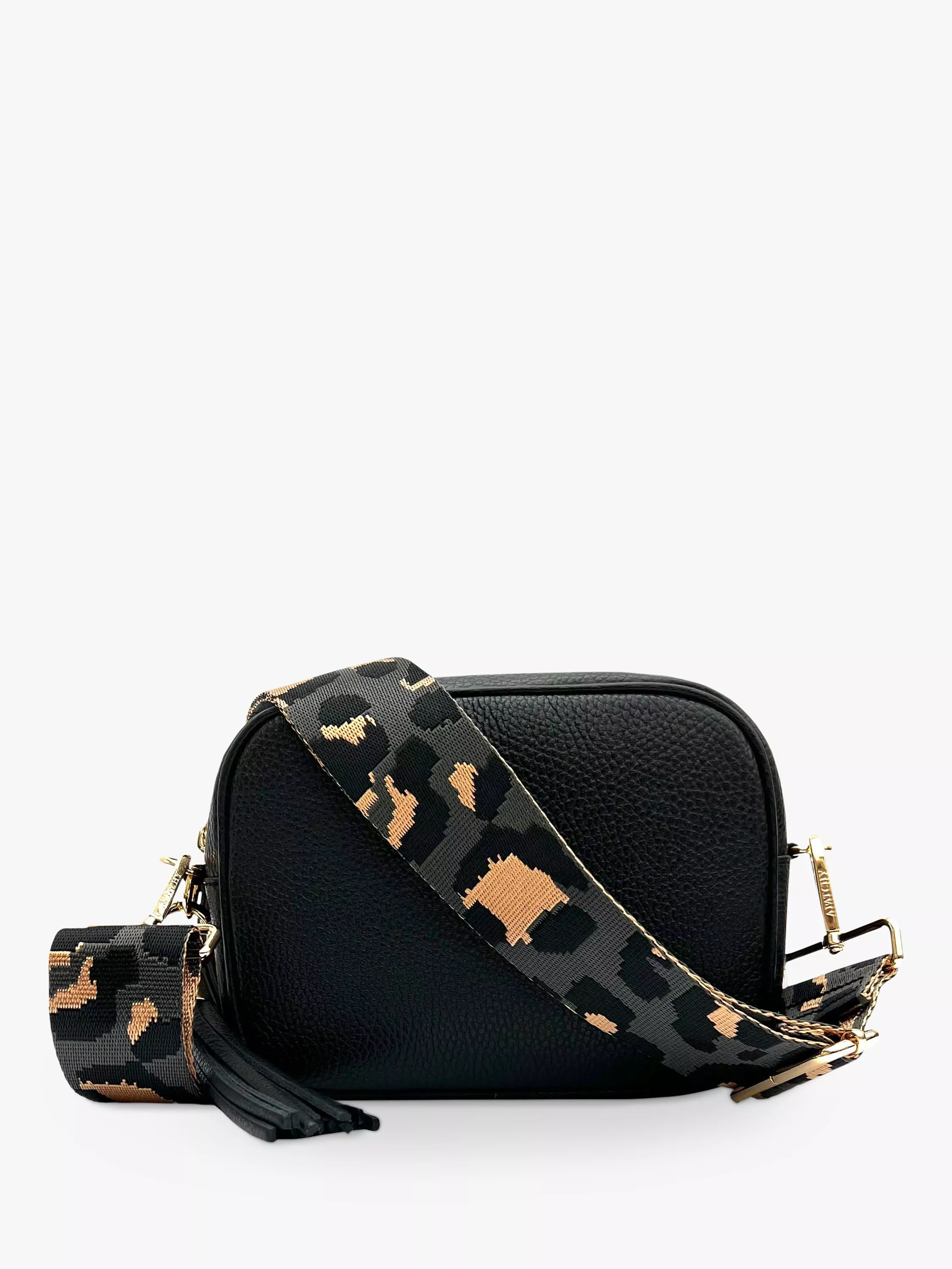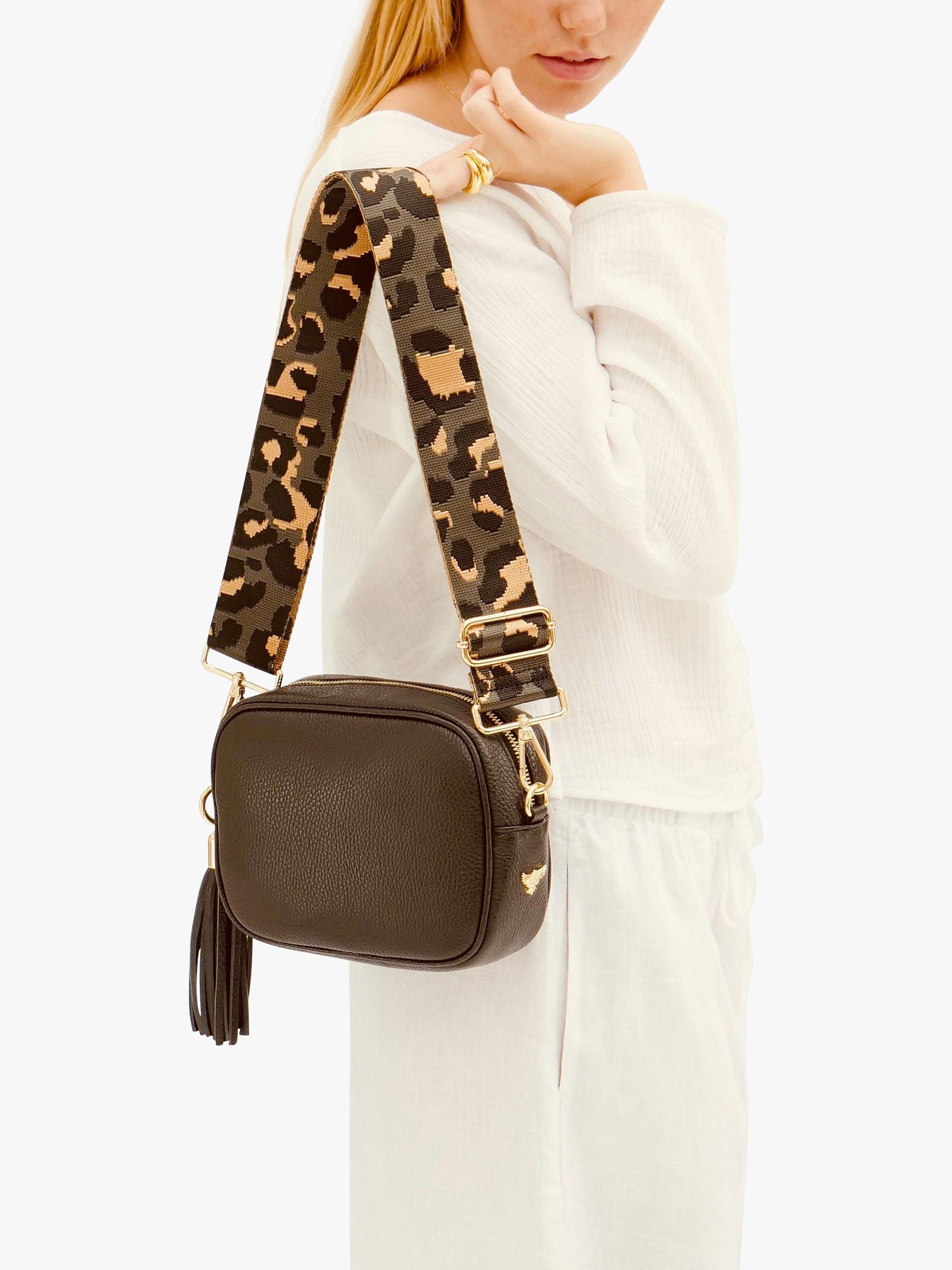 This timeless camera bag is perfect for all occasions, taking you smoothly from day to night. With a fully lined interior and statement gold hardware, it comes with a wide leopard print strap that can be adjusted or fully detached to turn the bag into a clutch. Wear it on your shoulder or across your body, this handbag will easily accommodate your purse, keys, phone and cosmetics.