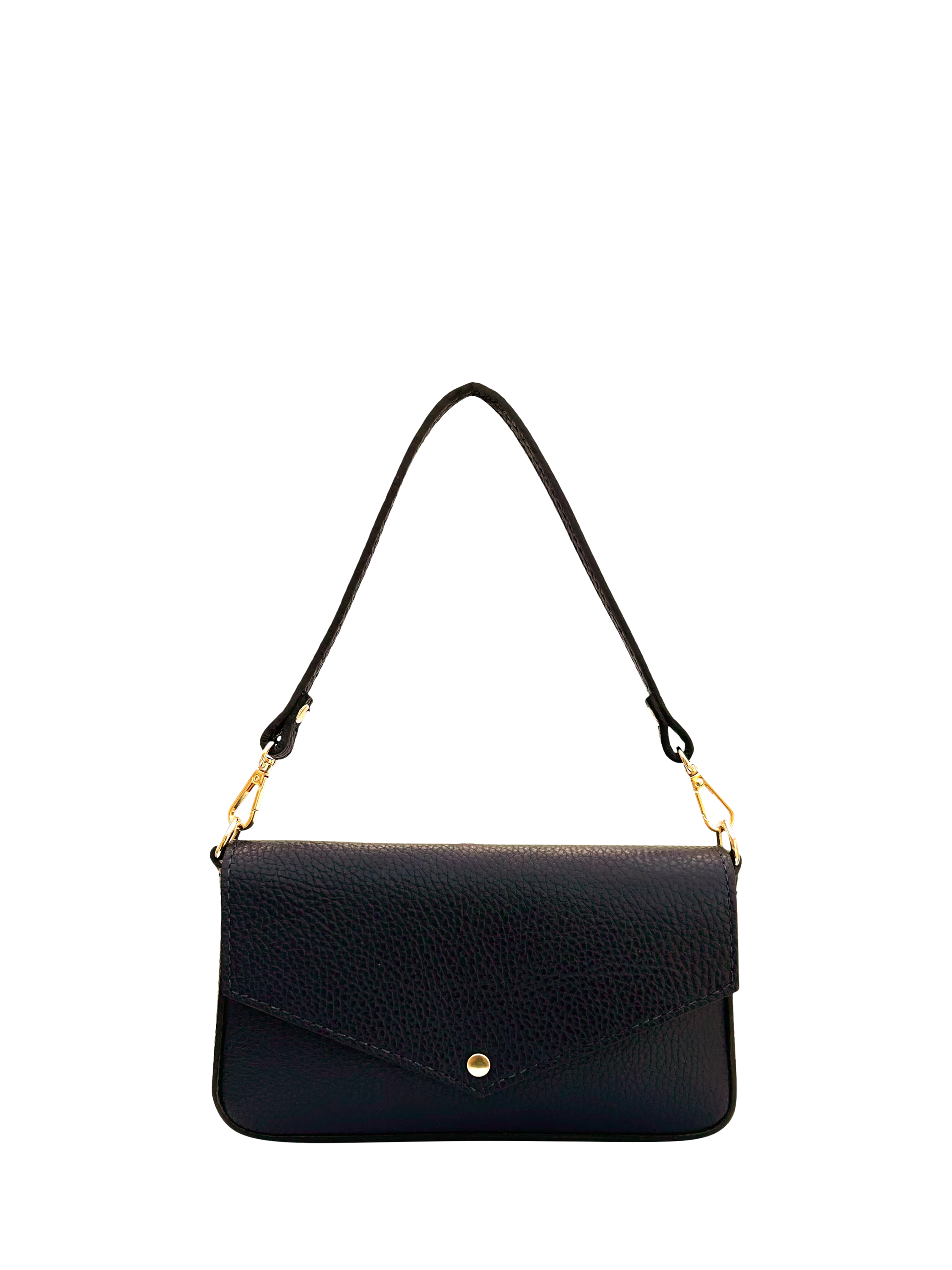 Made in Italy from grained pebble leather, The Munro Shoulder Bag by Apatchy is your new must-have handbag. Wear on the shoulder or across the body, this handbag will easily accommodate a purse, keys, mobile phone and cosmetics. It comes with a leather shoulder strap and gold chain crossbody strap or, remove them both to carry yours as a clutch. Designed with a practical yet stylish lined interior, features include an internal pocket and it comes in a branded dust bag.
