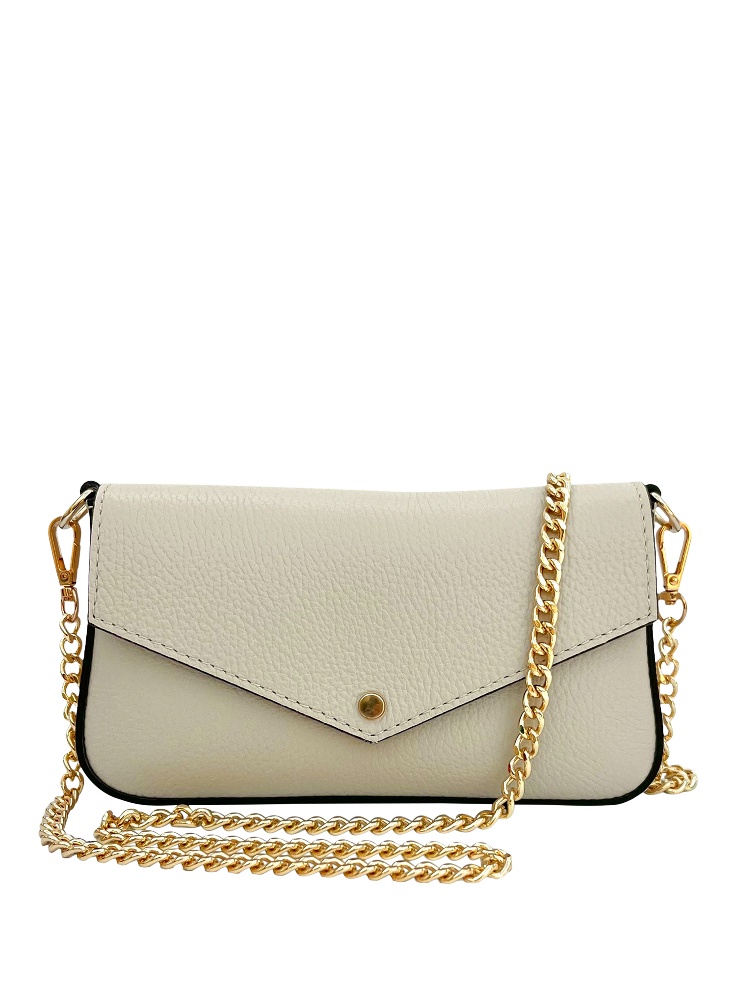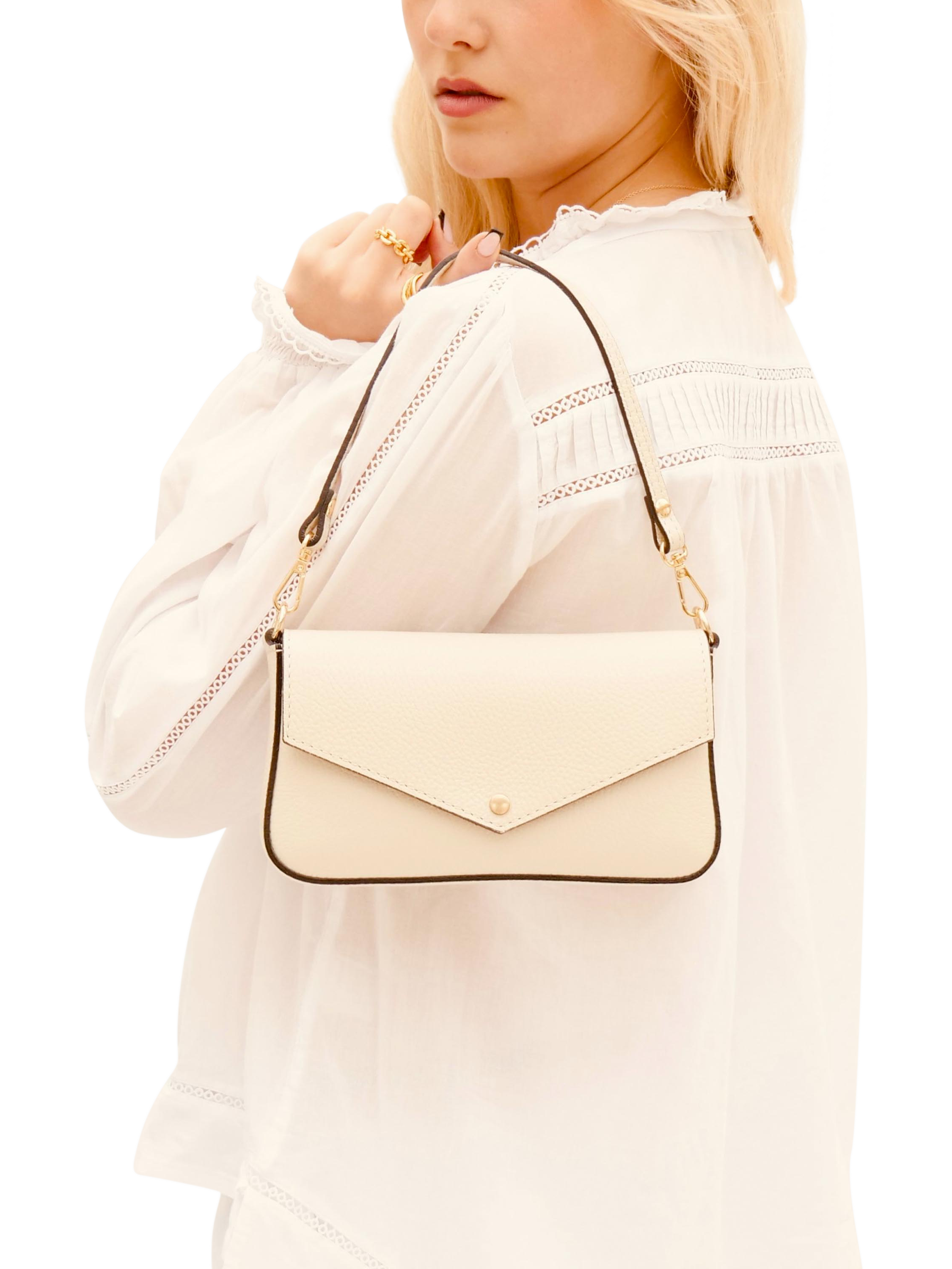Made in Italy from grained pebble leather, The Munro Shoulder Bag by Apatchy is your new must-have handbag. Wear on the shoulder or across the body, this handbag will easily accommodate a purse, keys, mobile phone and cosmetics. It comes with a leather shoulder strap and gold chain crossbody strap or, remove them both to carry yours as a clutch. Designed with a practical yet stylish lined interior, features include an internal pocket and it comes in a branded dust bag.