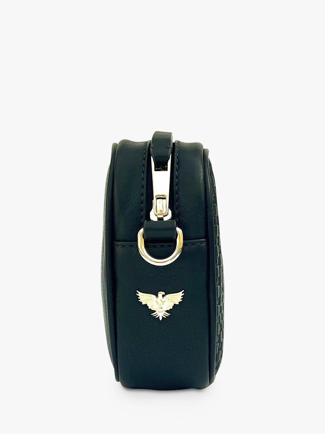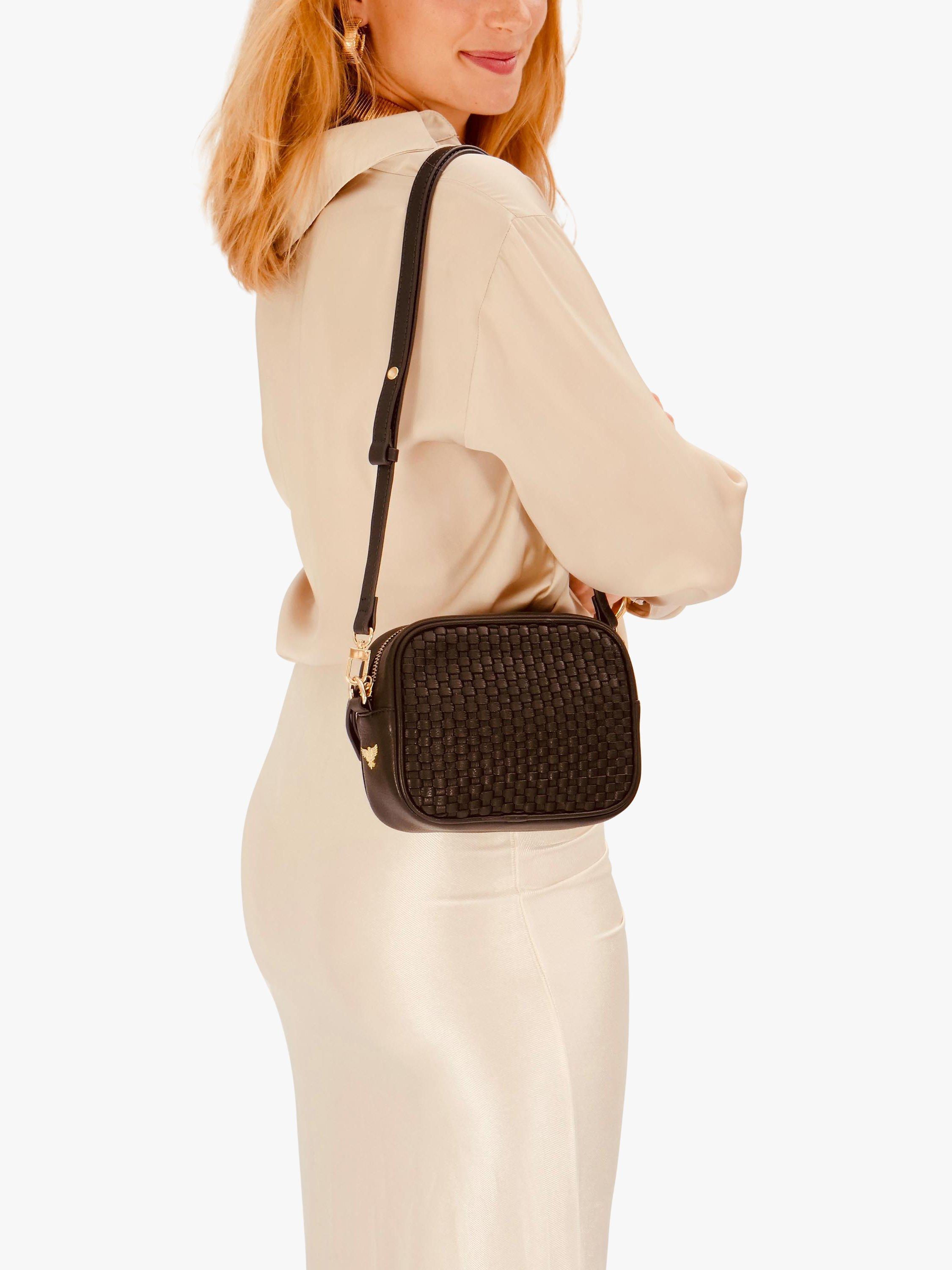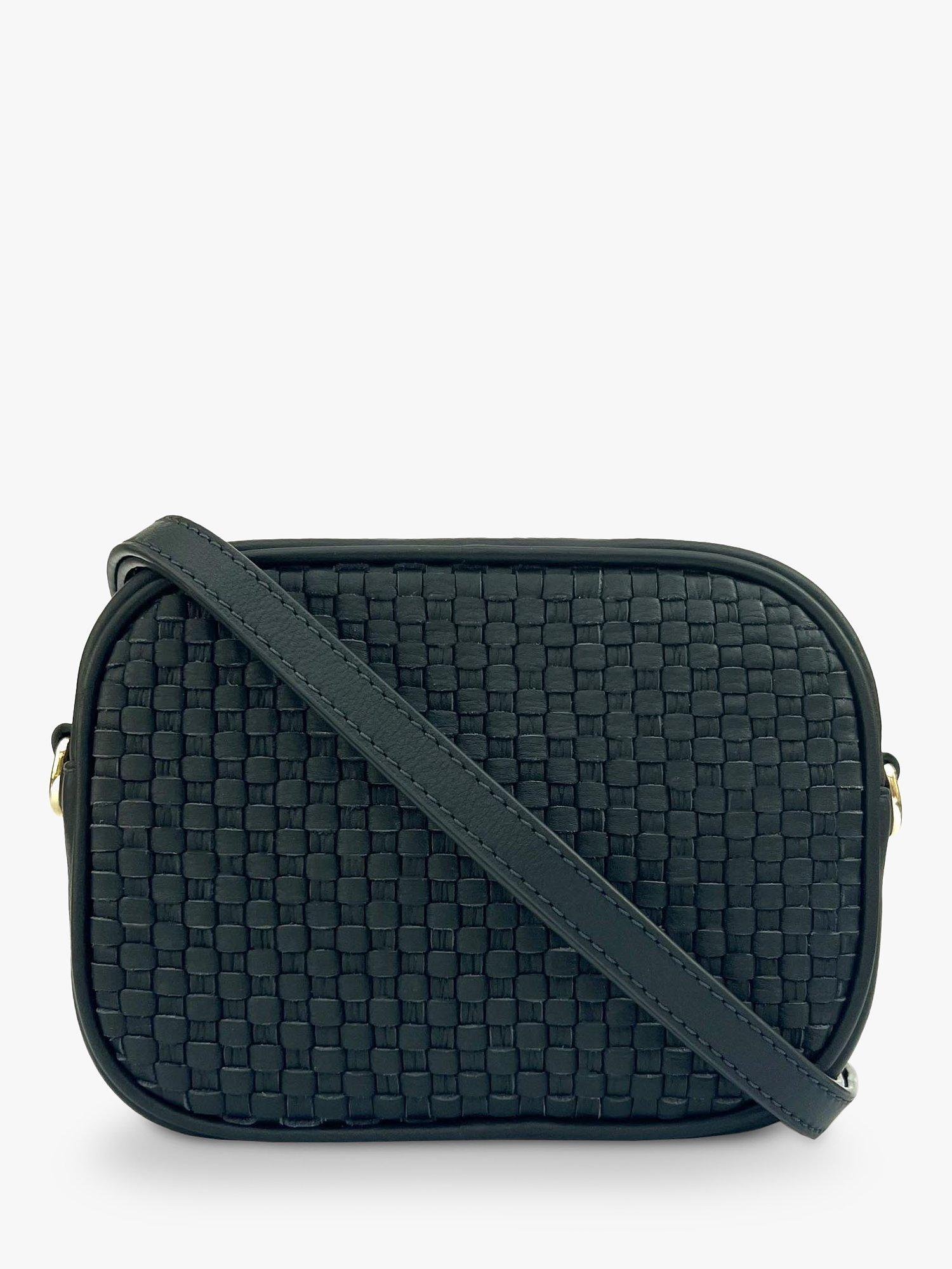 Crafted for style and functionality, this camera bag perfectly blends elegance and practicality. Designed to stay in style season after season, the exterior is detailed with woven leather and gold hardware. Wear it on your shoulder, across your body, or remove the strap and carry it in hand; this handbag will easily accommodate your purse, keys, phone and cosmetics.