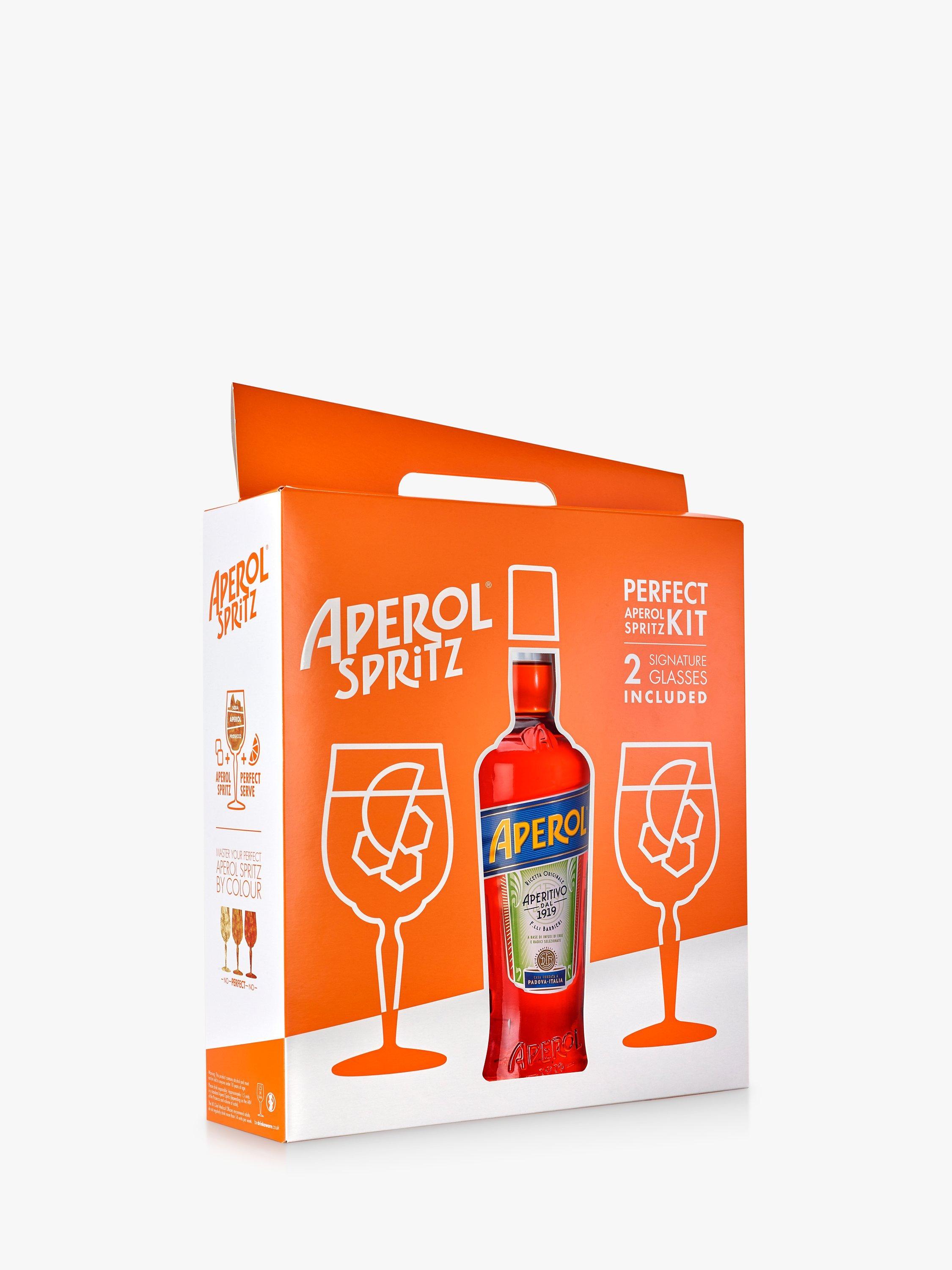Now you can have Aperol glasses without checking if the barman is watching. Aperol is the perfect Aperitivo, bright orange in colour and light in alcohol. Featuring a rich and complex taste derived from the infusion of a blend of high-quality herbs and roots. Created by the Barbieri brothers, whose original recipe has remained a secret to this day – Aperol launched in 1919 at the Padua International Fair and quickly became one of Italy's favourite aperitifs. Now you can find Aperol all over the world, usually not far from a measure of prosecco and a dash of soda water. This set includes two glasses stamped with the iconic Aperol logo and a 70cl bottle of the famous Aperitivo.