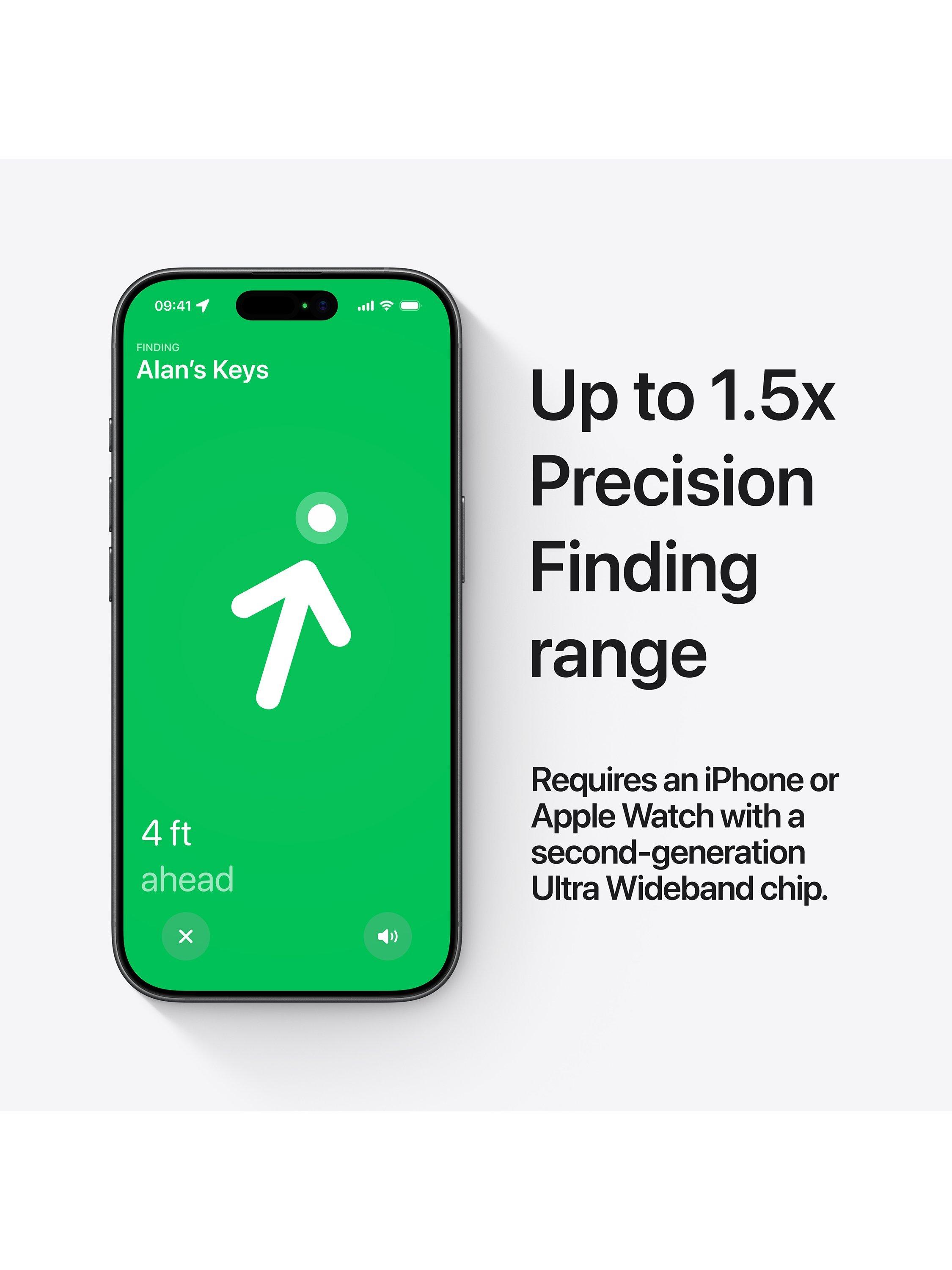 [1] Expanded Precision Finding and louder speaker reflect comparison with previous-generation AirTag. Find My requires iOS 14, iPadOS or macOS Catalina or later, and that your device is signed in to iCloud with your Apple Account. Some features are not available in all countries or regions. Improved Precision Finding works with AirTag (2nd generation) paired with iPhone Air or iPhone 15 or later (excluding iPhone 16e); availability varies by region. Precision Finding on Apple Watch requires Apple Watch Series 9 or later, or Apple Watch Ultra 2 or later, with watchOS 26.2.1.