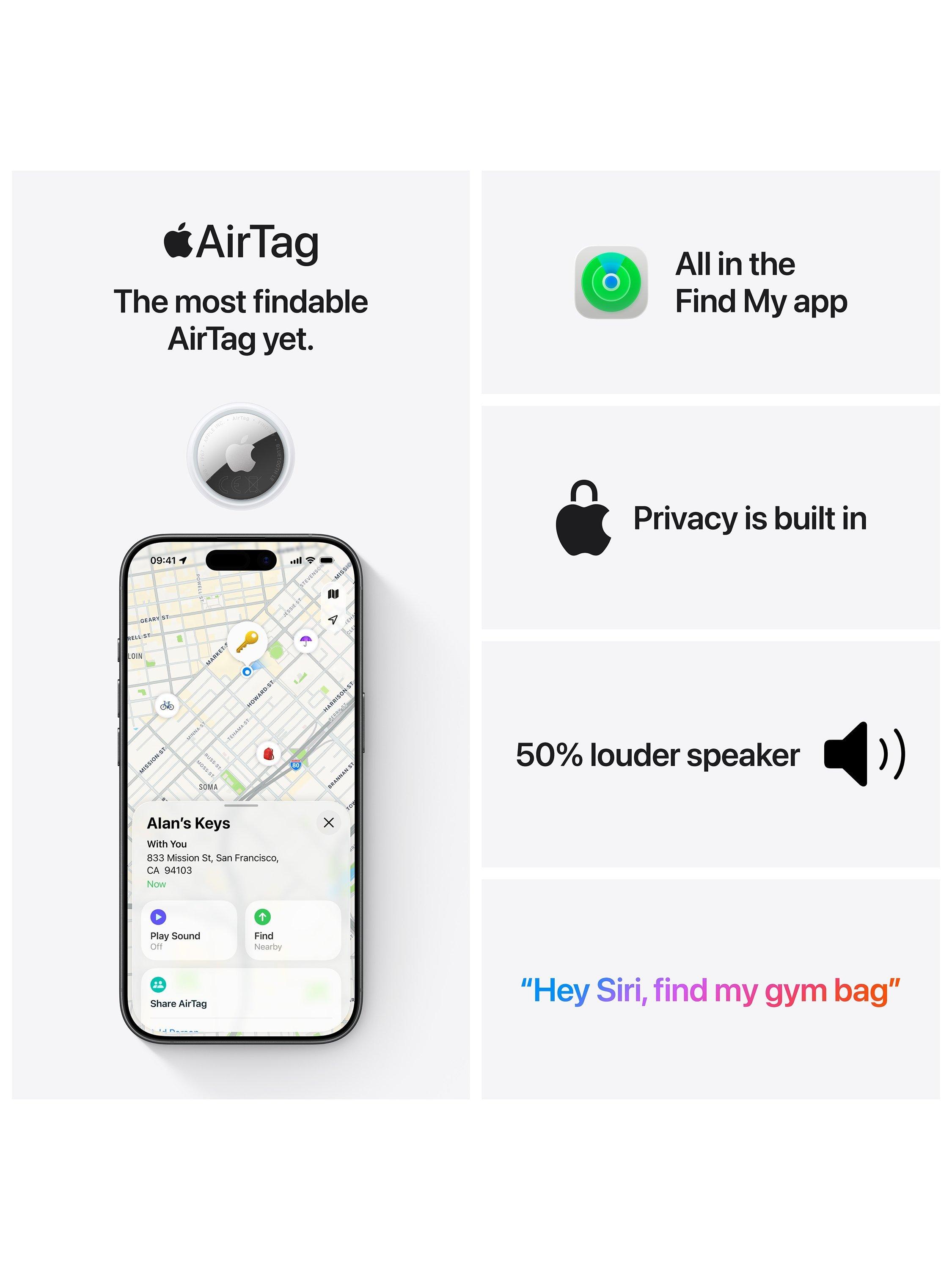 - Enhanced Speaker - With a 50% louder speaker and a new, distinctive chime, it’s easier than ever to hear and find AirTag.[1]