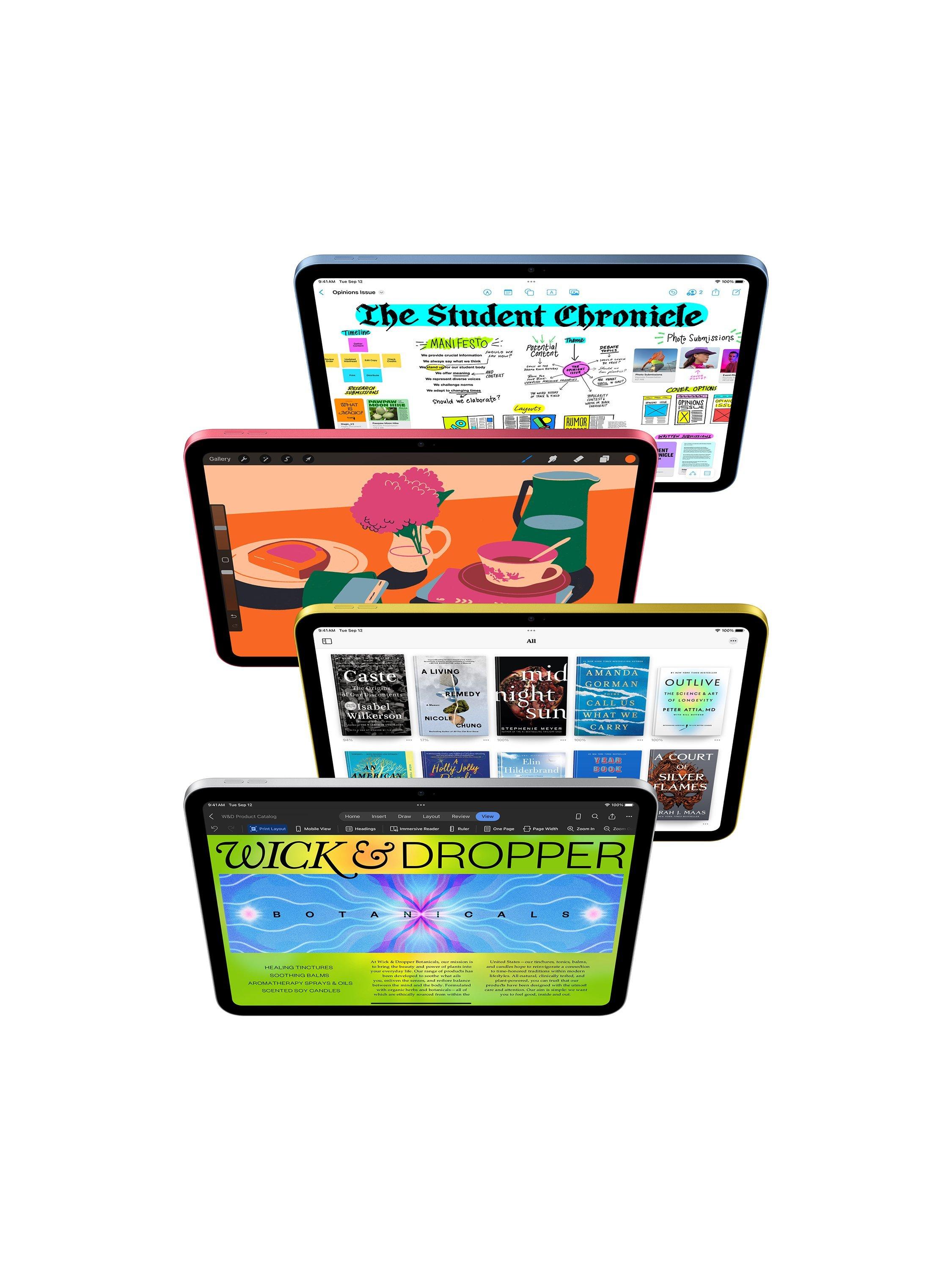 The 2022 iPad is colourfully reimagined to be more capable, more intuitive and even more fun. With a new all‑screen design, a 10.9" Liquid Retina display and four gorgeous colours, it's a user-friendly way to help get things done, create and stay connected.