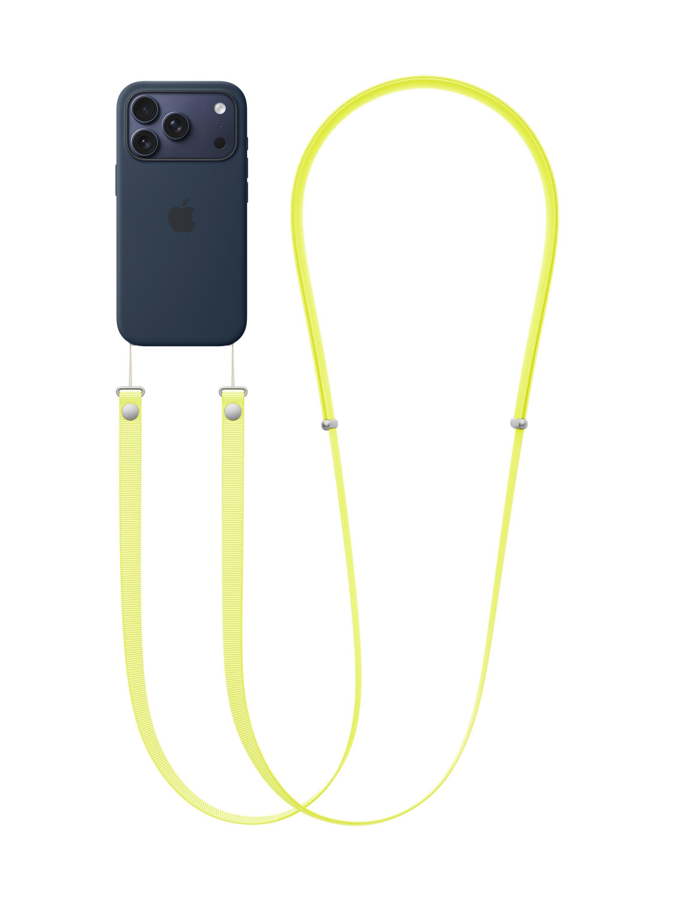 The Crossbody Strap is designed to attach to selected Apple cases for a convenient and hands‑free way to wear iPhone.