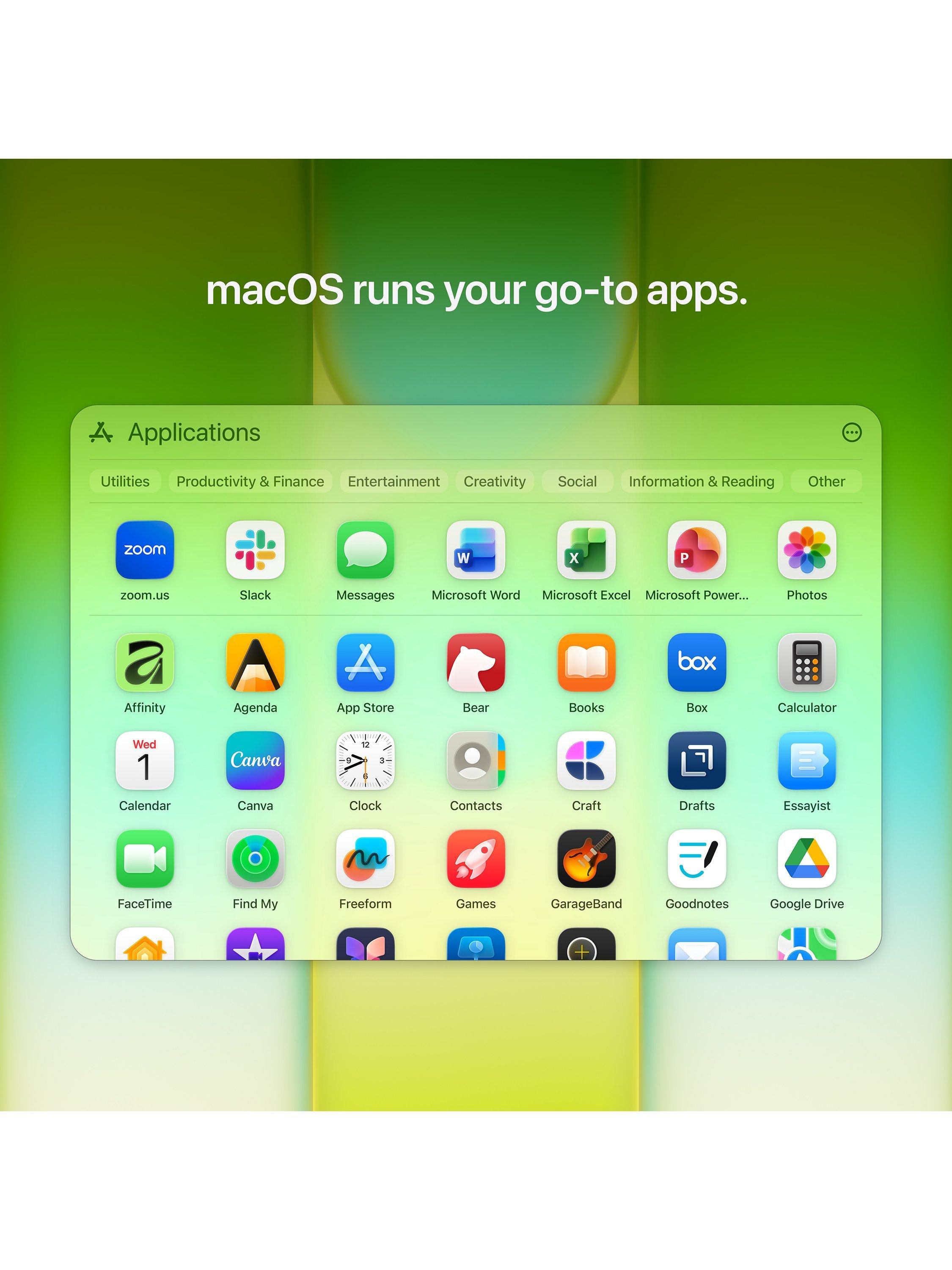 All your go-to apps run lightning fast in macOS, including built-in apps like FaceTime(4) and Messages.