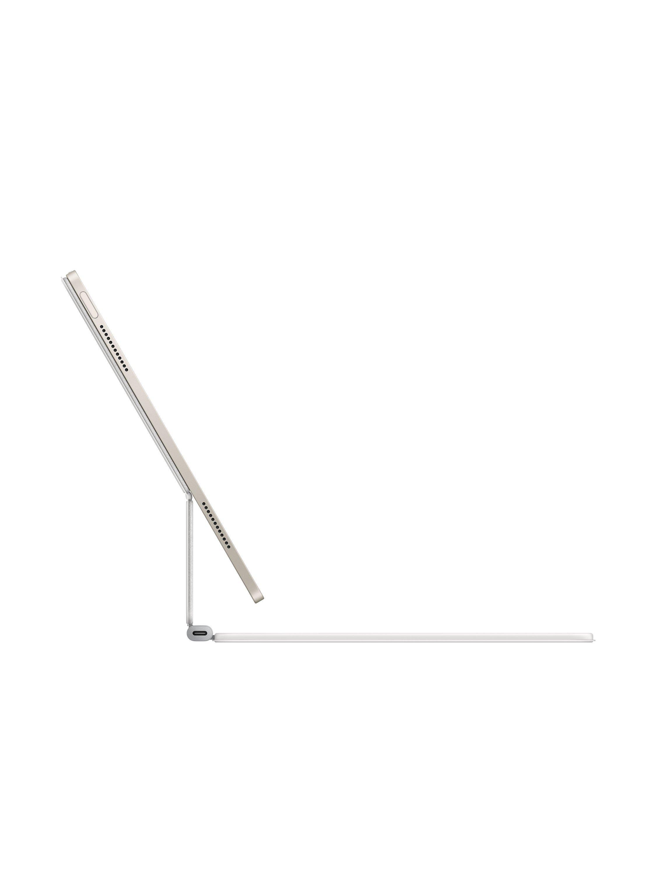 Magic Keyboard is the perfect companion for iPad Air. It delivers an amazing typing experience and a trackpad for precision tasks in a sleek, portable design. The keyboard includes a 14‑key function row, a USB‑C connector for pass‑through charging, and front and back protection for your iPad. The floating cantilever design smoothly adjusts to multiple viewing angles and a large glass trackpad expands how you can work with iPadOS.