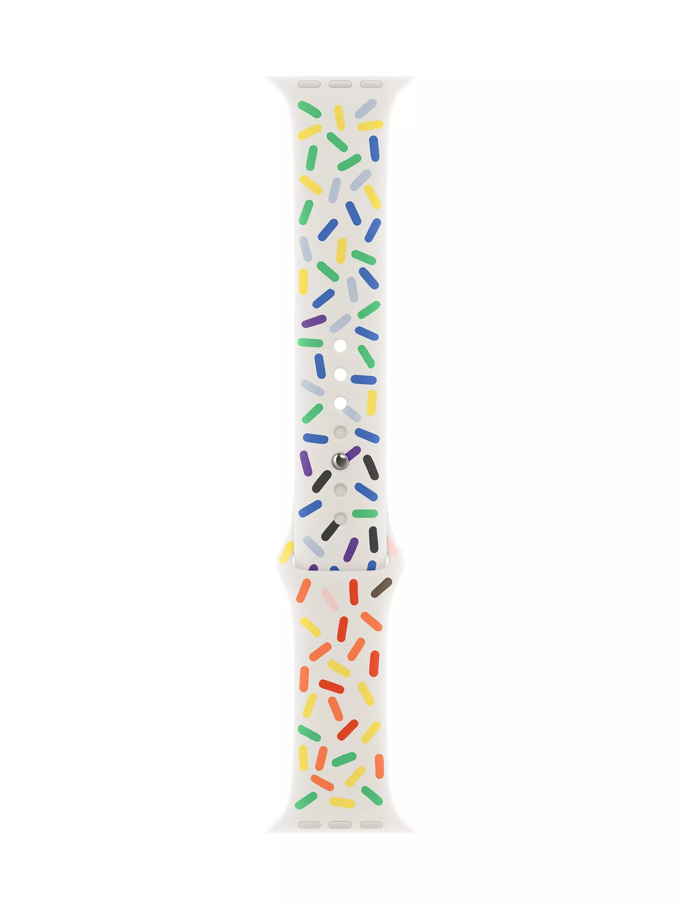 Featuring a joyful design, the Pride Edition Sport Band incorporates a full range of vibrant colours to celebrate the beauty and diversity of the LGBTQ+ community. In addition to the colours of the core Pride flag, black and brown symbolise marginalised LGBTQ+ communities of colour, as well as those impacted by HIV/AIDS. Light blue, pink and white honour trans and non-binary people.