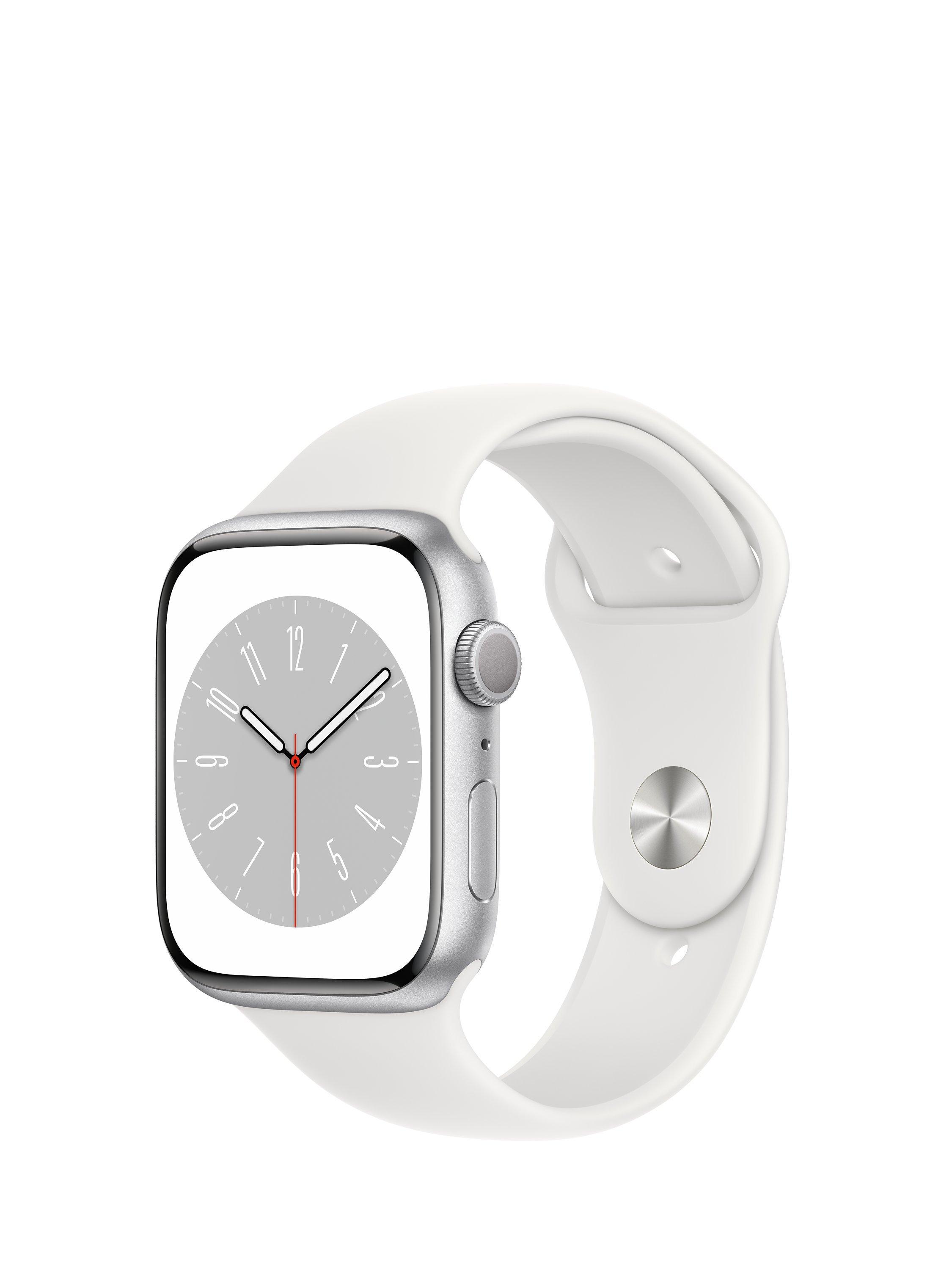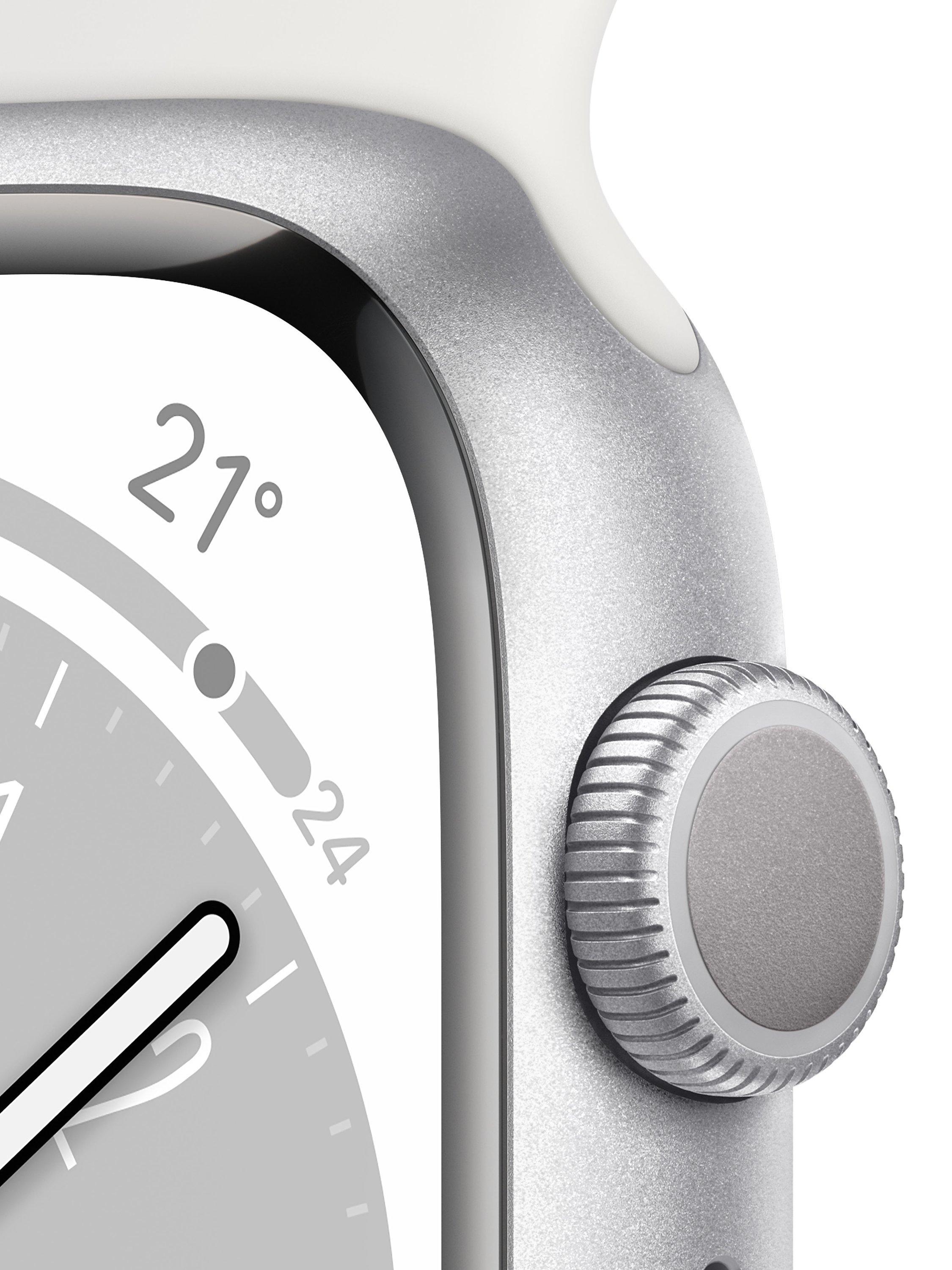 AppleWatch Series 8 GPS, 45mm Silver Aluminium Case with White Sport Band - Regular