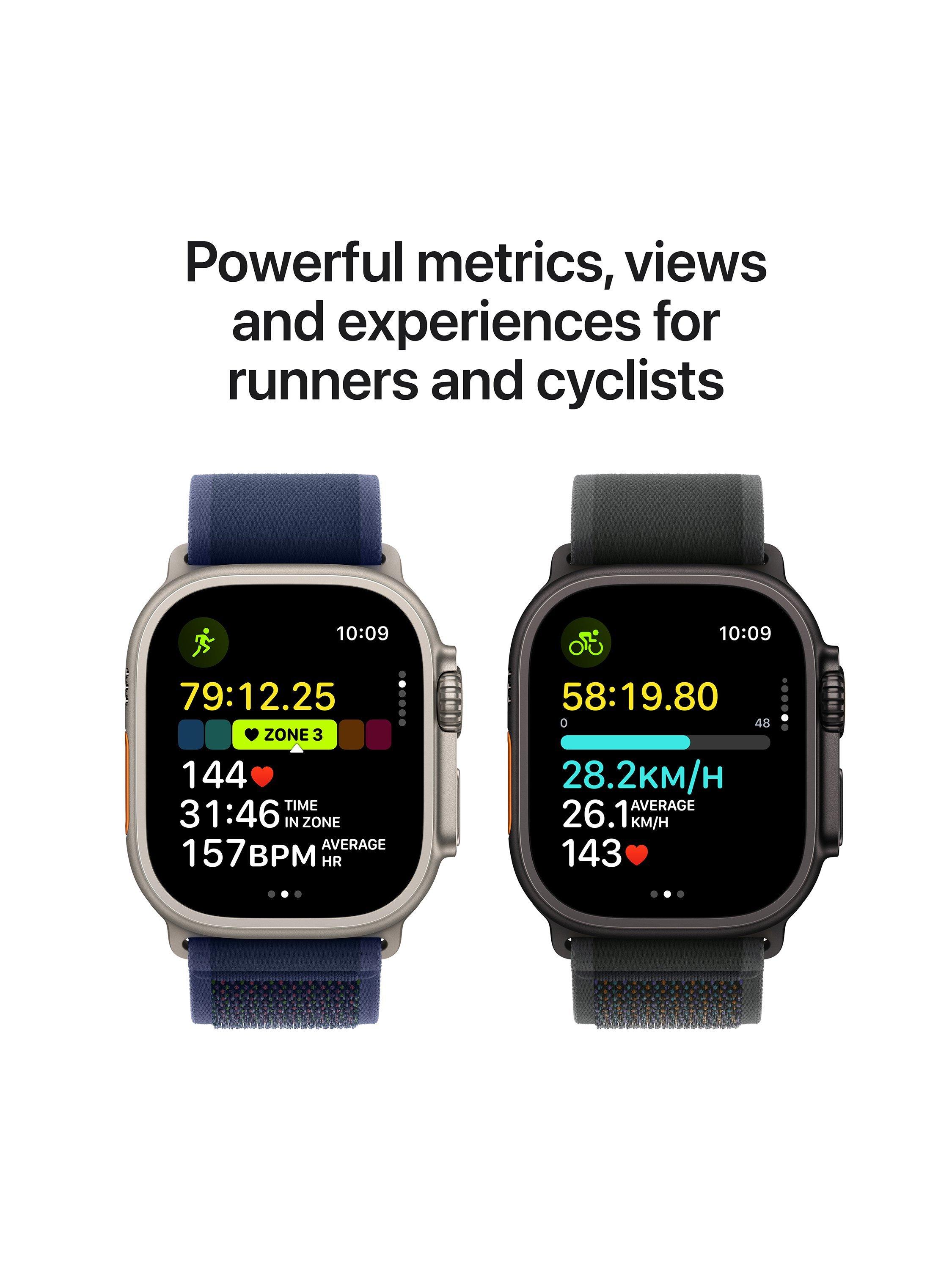 Go to next-level adventure and push your limits with the supremely rugged and tough Apple Watch Ultra 2. Powered by the S9 SiP, it’s brighter, always ready for action, and introduces Double Tap (available late 2023), an amazing way to use your Apple Watch without even touching the screen. Built with adventure and exploration in mind, it features a robust titanium case, precision dual-frequency GPS, the freedom of cellular connectivity, and up to 36 hours of battery life. Get yourself to the next level of endeavour.