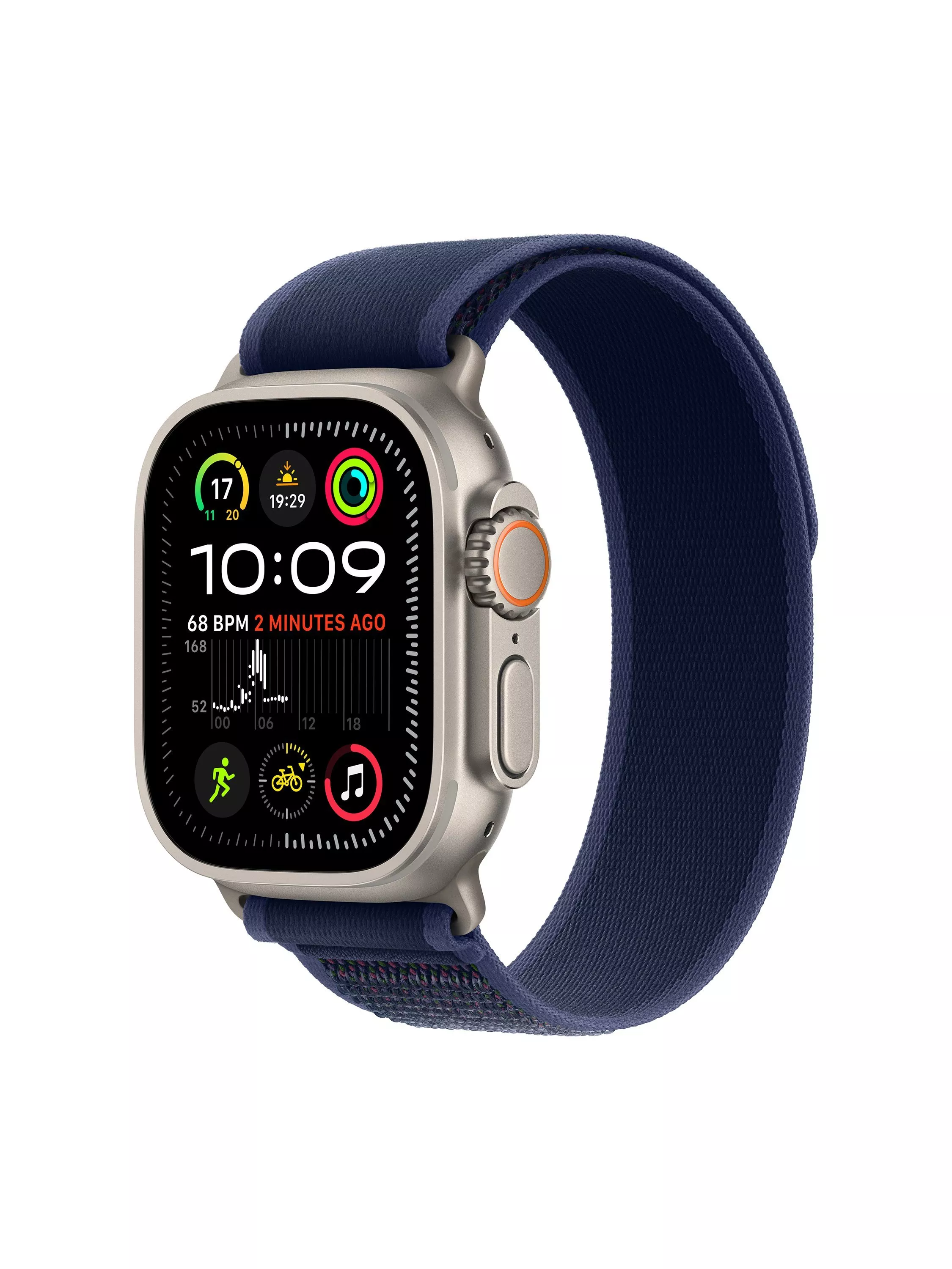 Apple Watch Ultra 2 is crafted for supreme performance. The lightweight titanium case is rugged and corrosion resistant, and it’s raised to protect the sapphire crystal from edge impacts.