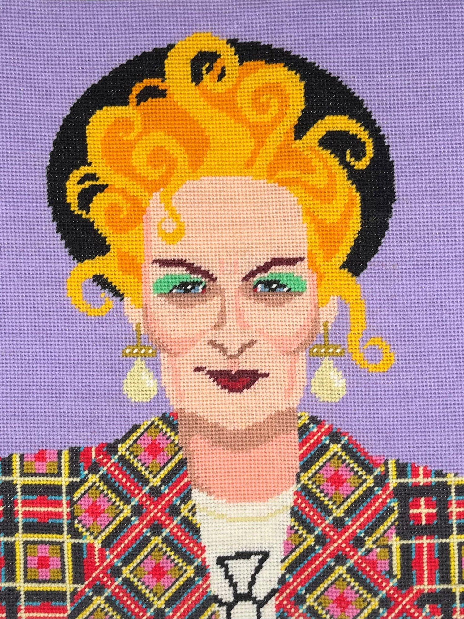 Vivienne Westwood, a revolutionary British fashion designer who fused punk rebellion with haute couture whilst championing for reduced consumption and environmental awareness, is depicted in this fabulous image designed by Emily Peacock. It can be framed or turned into a cushion cover.