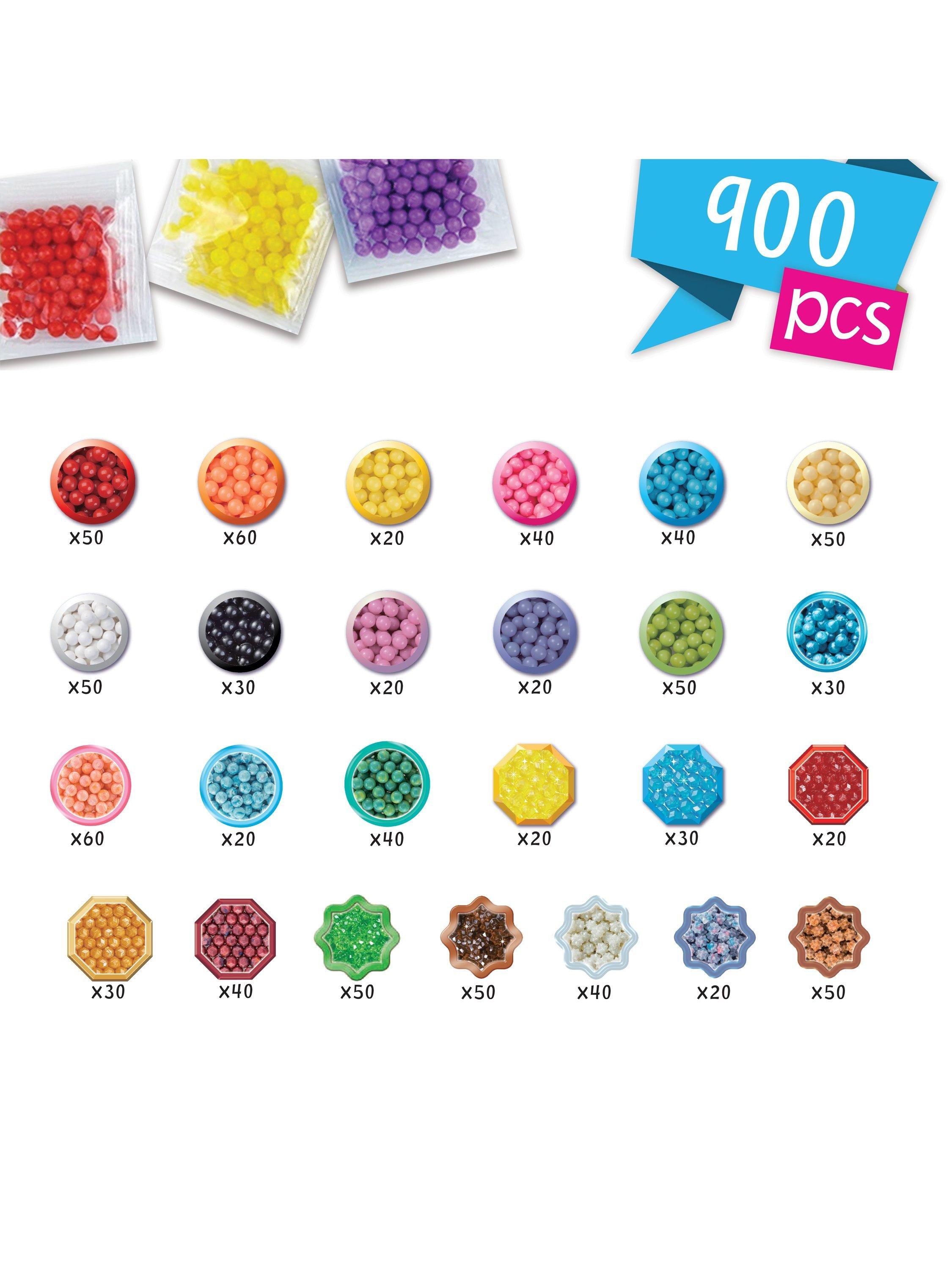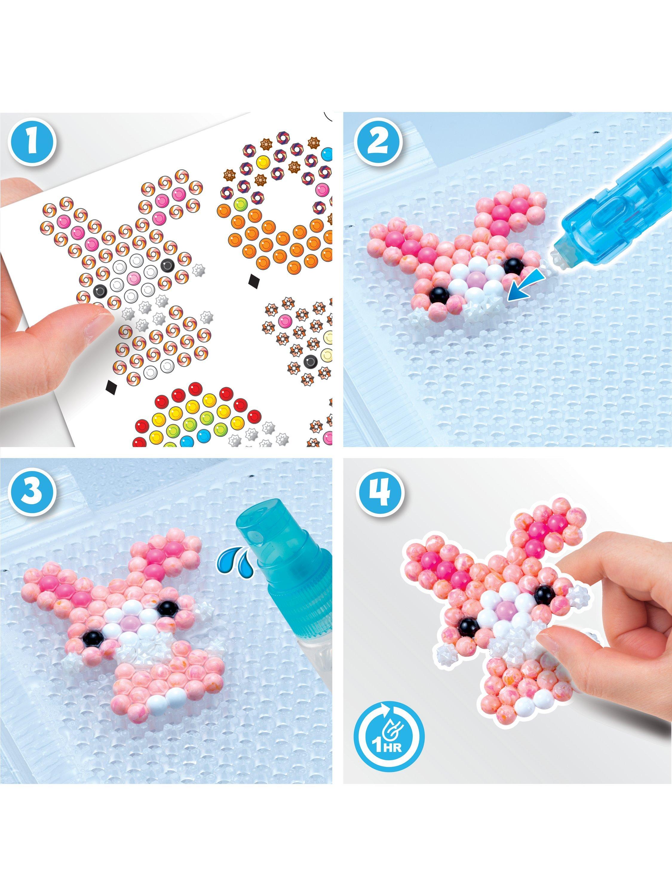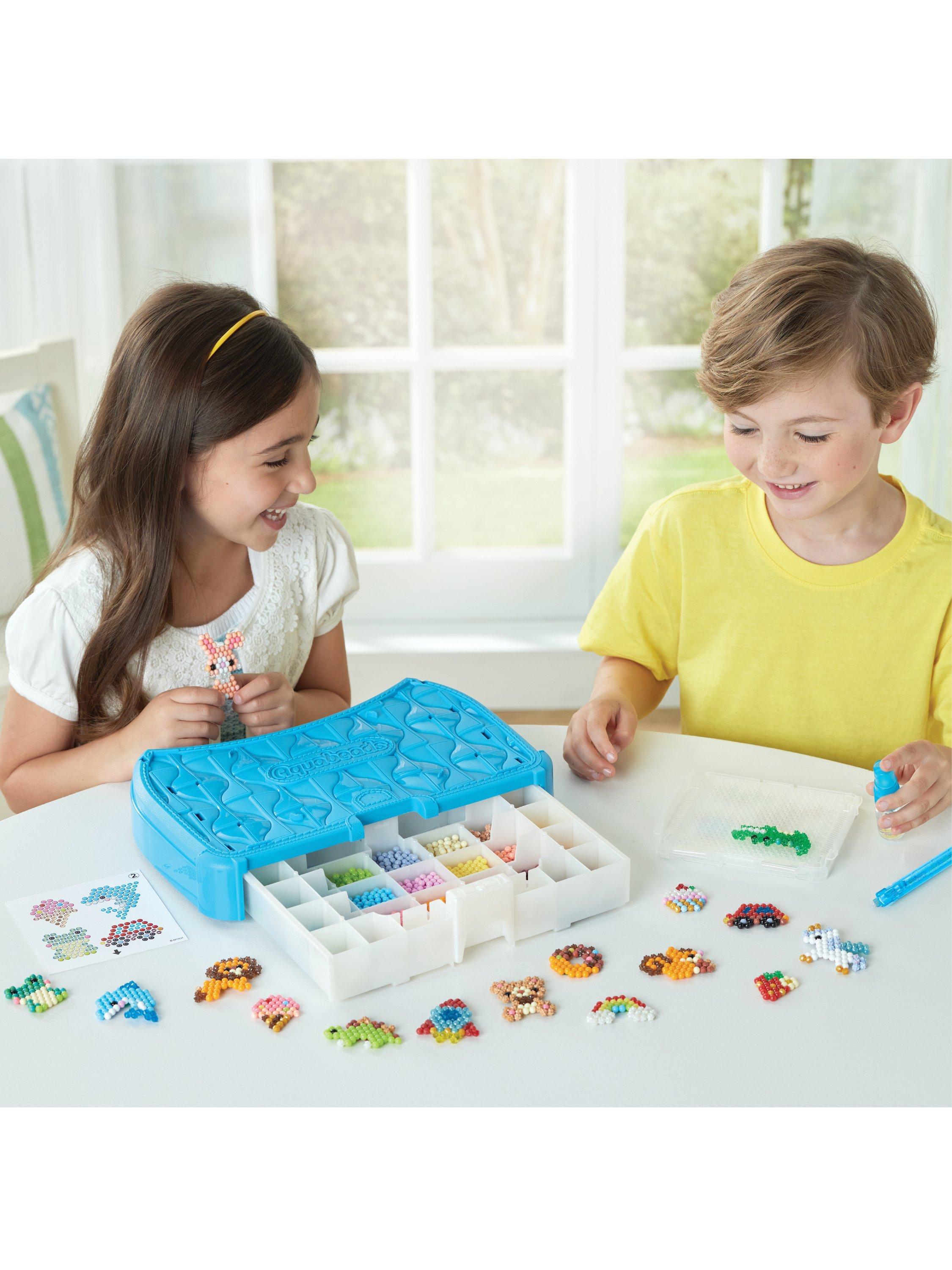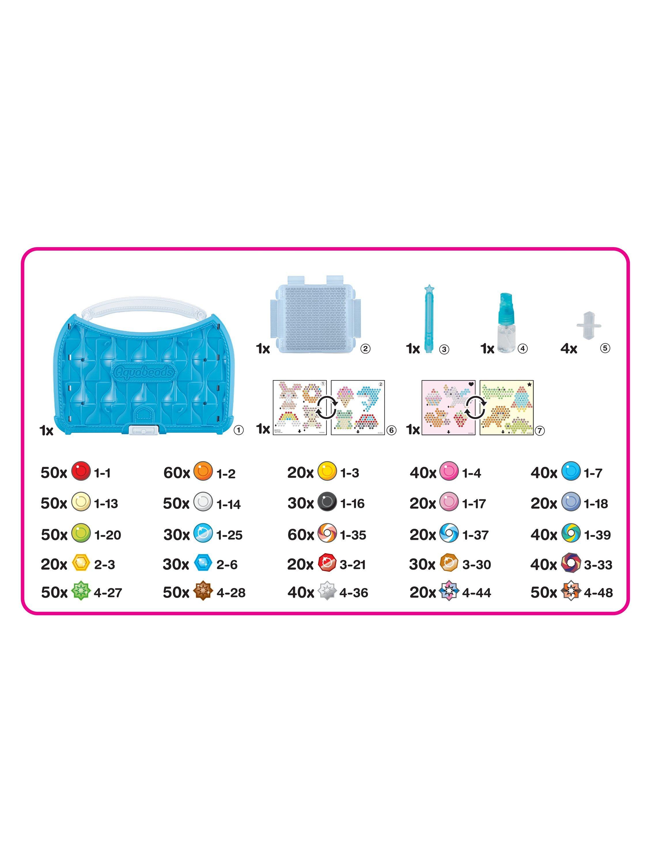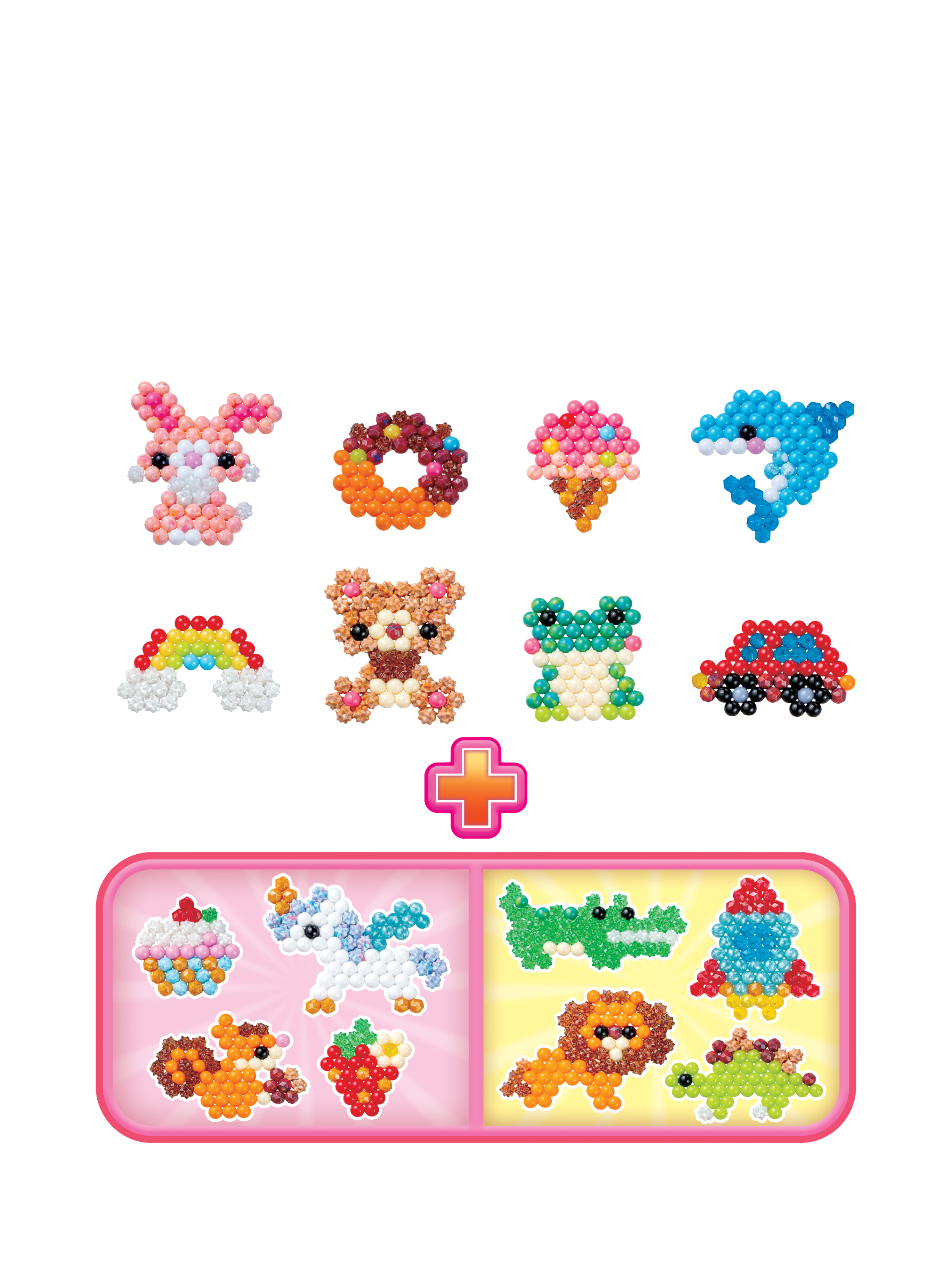 The Aquabeads Beginners Craft Studio includes 900 beads: classic beads, jewel beads, star beads, polygon beads and the NEW watercolour beads! You can create a rabbit, dolphin, rainbow, ice cream and lots more! After your creations are dry, they can be displayed on the case.