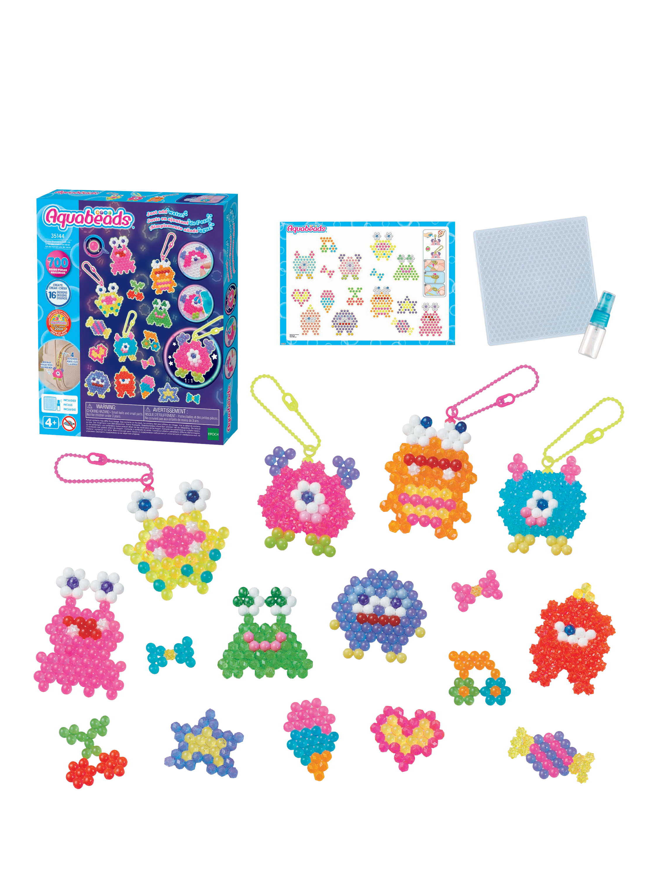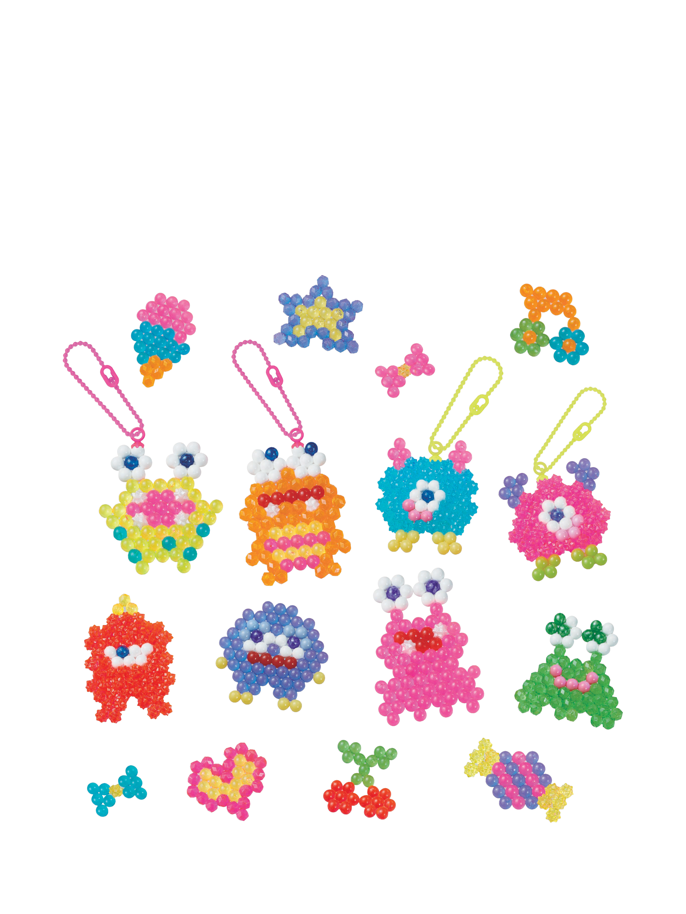 Aquabeads is the Original Water-Activated Bead Craft Kit! Since 2004, children throughout the world have created millions of Aquabeads designs. With the Crazy Monsters Craft Kit, follow the template sheet, place the beads onto the tray to create neon-coloured monsters. Using the sprayer, spray water onto the beads to make them magically stick together!