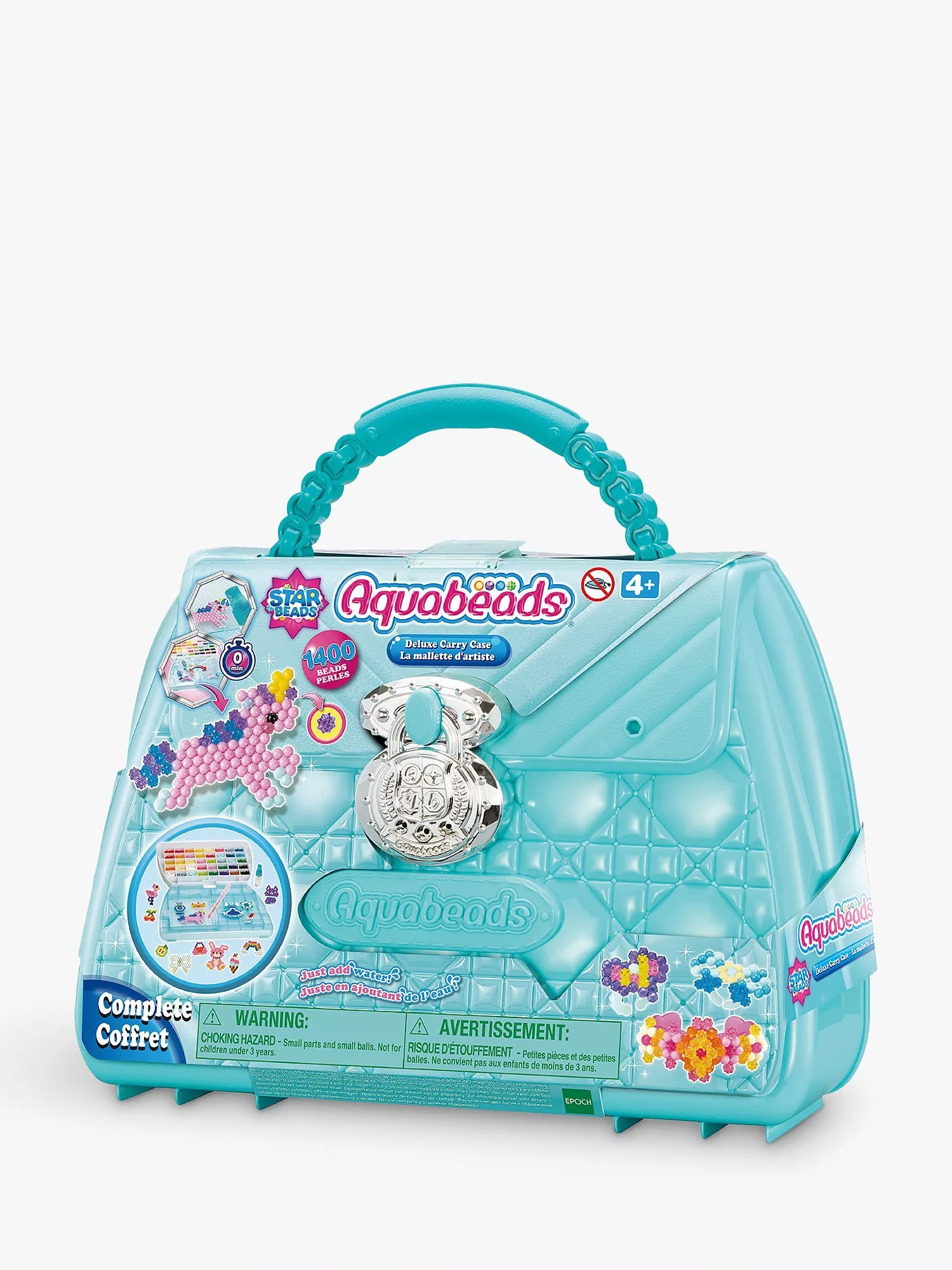 The Aquabeads Deluxe Carry Case comes with everything needed to get creating, including beads, bead pen, templates, flip tray, sprayer, bead storage and wearable jewellery displays.