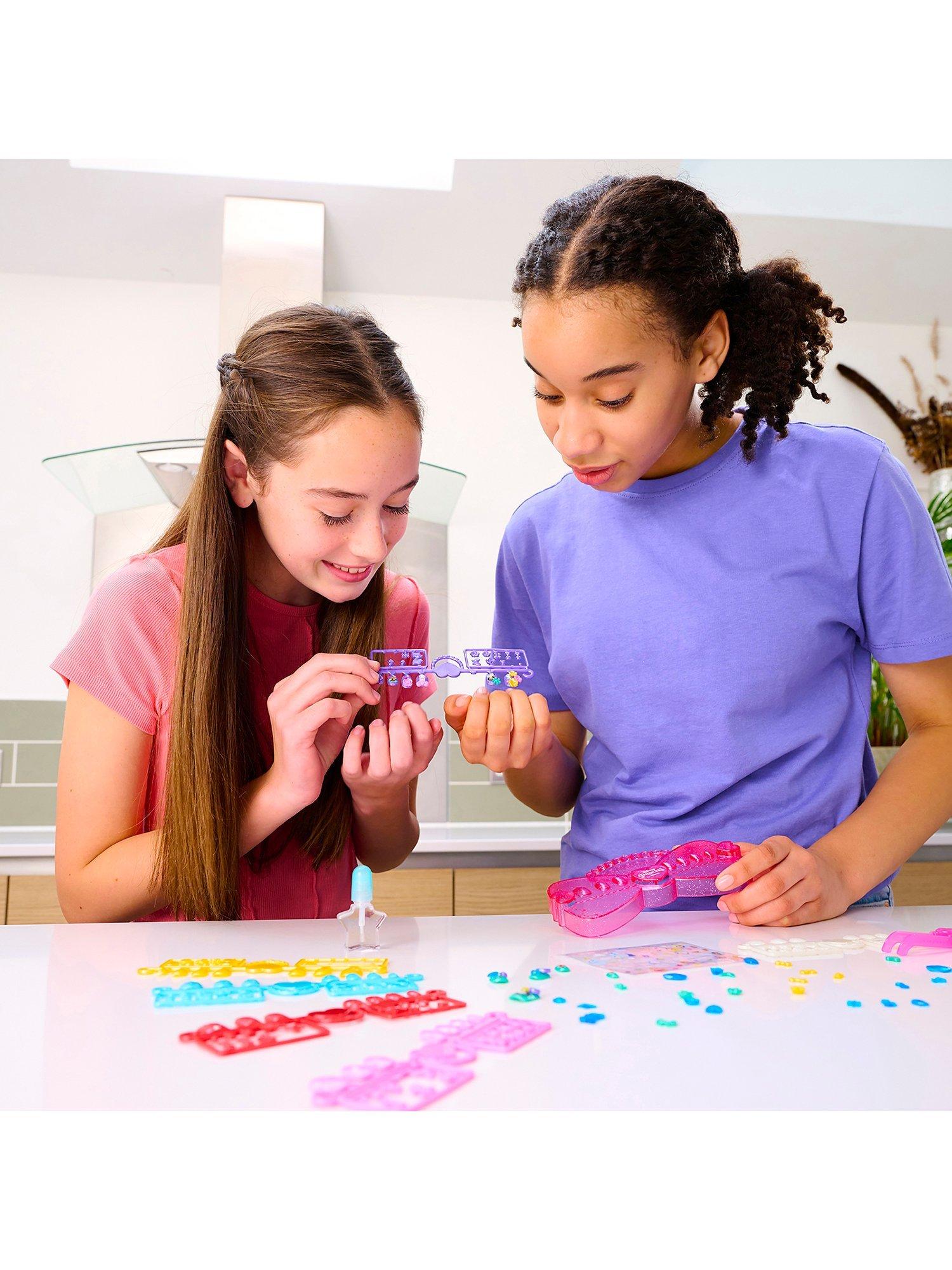 Following the design sheet, create fabulous nail designs featuring Cinderella, Jasmine, Aurora, Rapunzel, Belle, and Ariel. Using the water applicator, place the decorations on top of the Aquabeads nails to decorate and make them magically stick together! When the creations are completely dried after 3 minutes, carefully take the creation off from the runner so they are ready to wear!