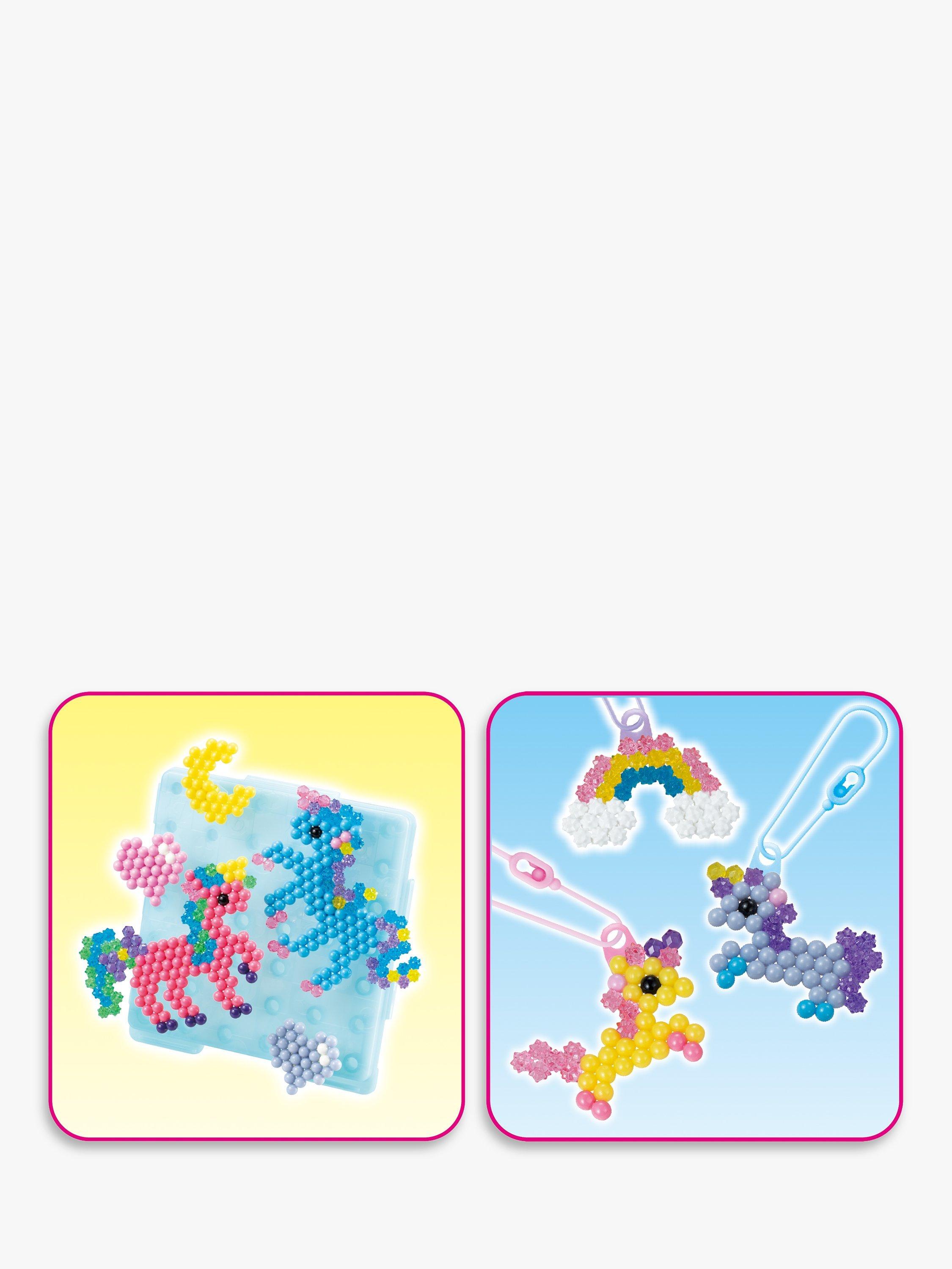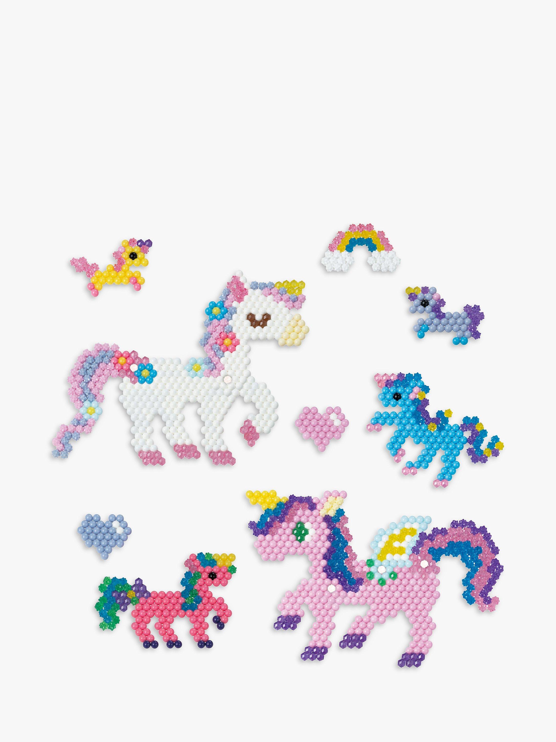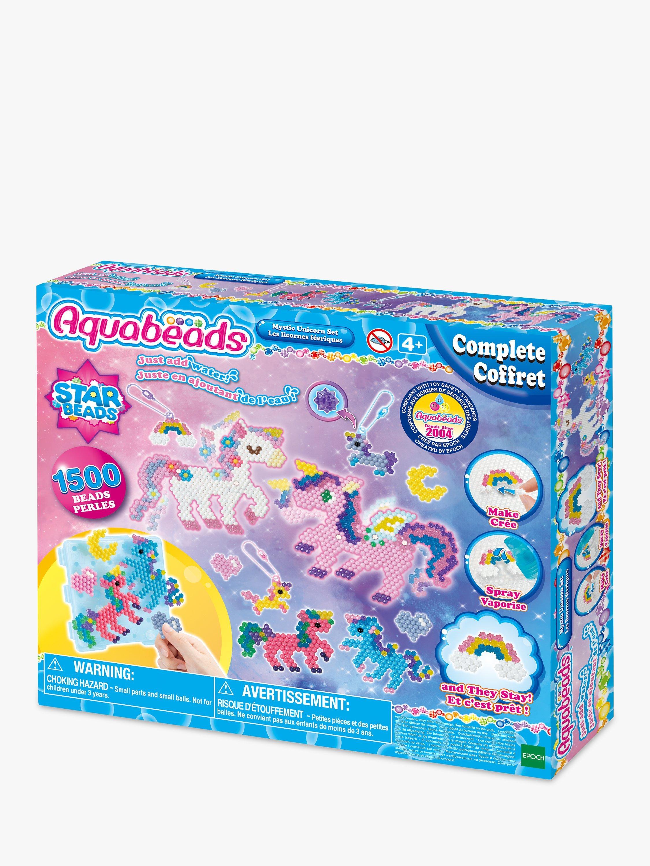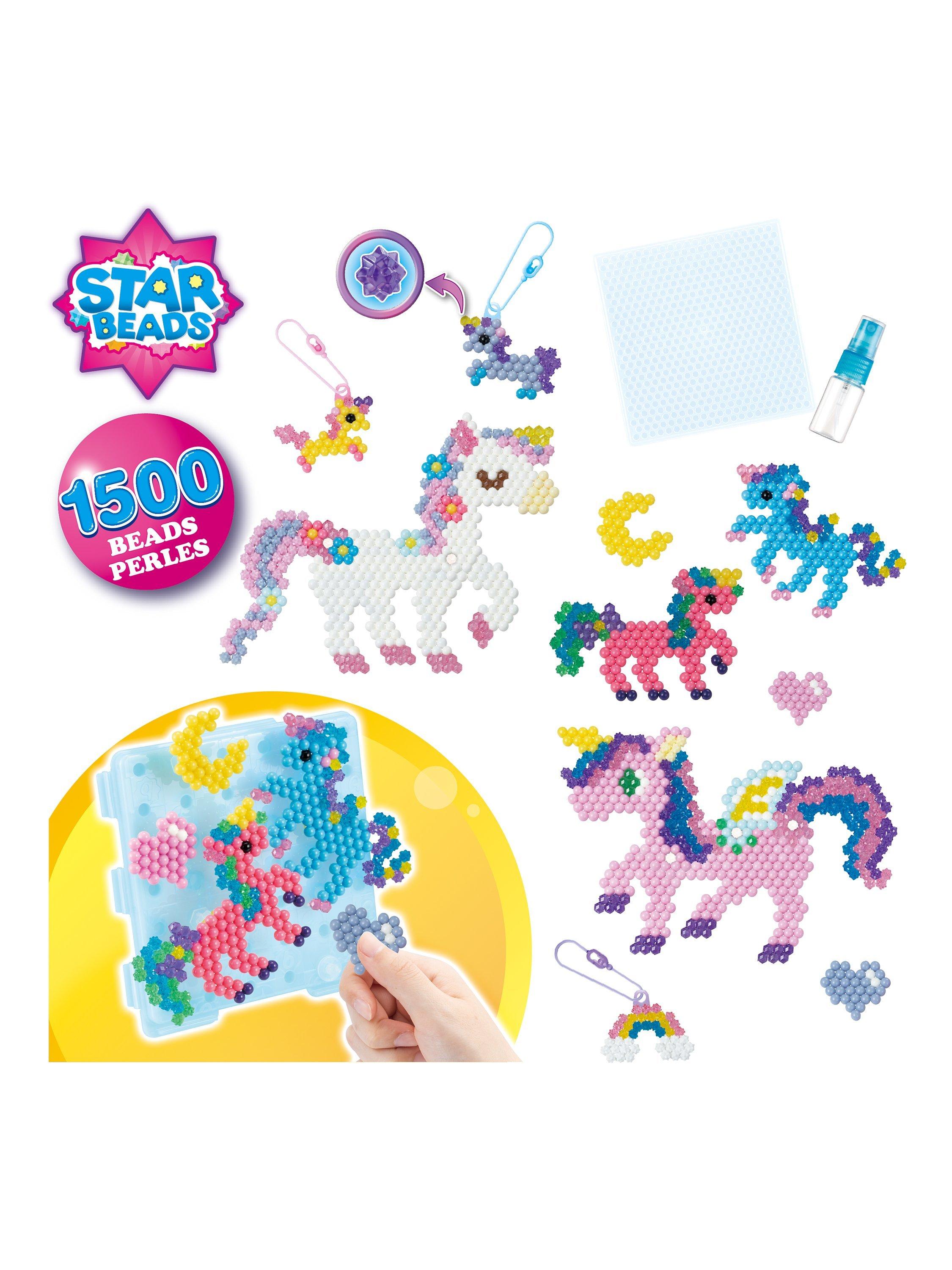 Create your own mystical world with the Mystic Unicorn Set. The set comes with 1500 beads in 24 colours, template sheets and instructions. Follow the template sheet to make wearable charms with your Aquabeads unicorns by using the included key chain accessories and colour straps.