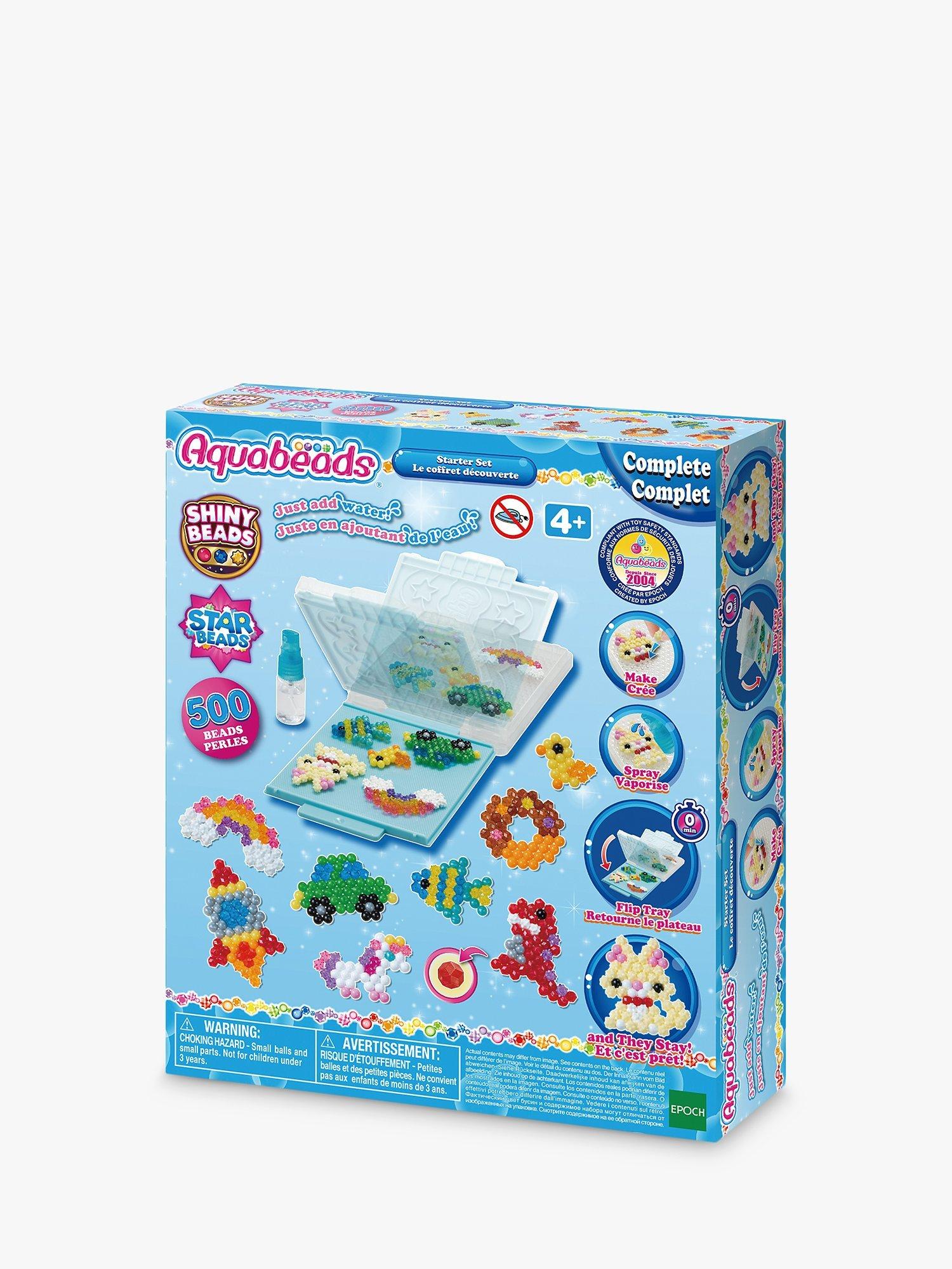Aquabeads is the Original Water-Activated Bead Craft Kit! The Starter Set includes 500 solid, jewel, and star beads in 18 colours, a flip tray set, a sprayer, a template sheet, and instructions, perfect to get started with Aquabeads!