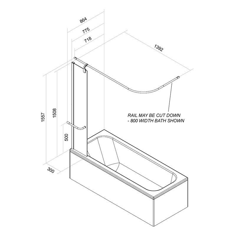 Teamed with a robust polished silver curtain rail, the Splash Guard is a great way of eliminating over splash when using a shower curtain.
