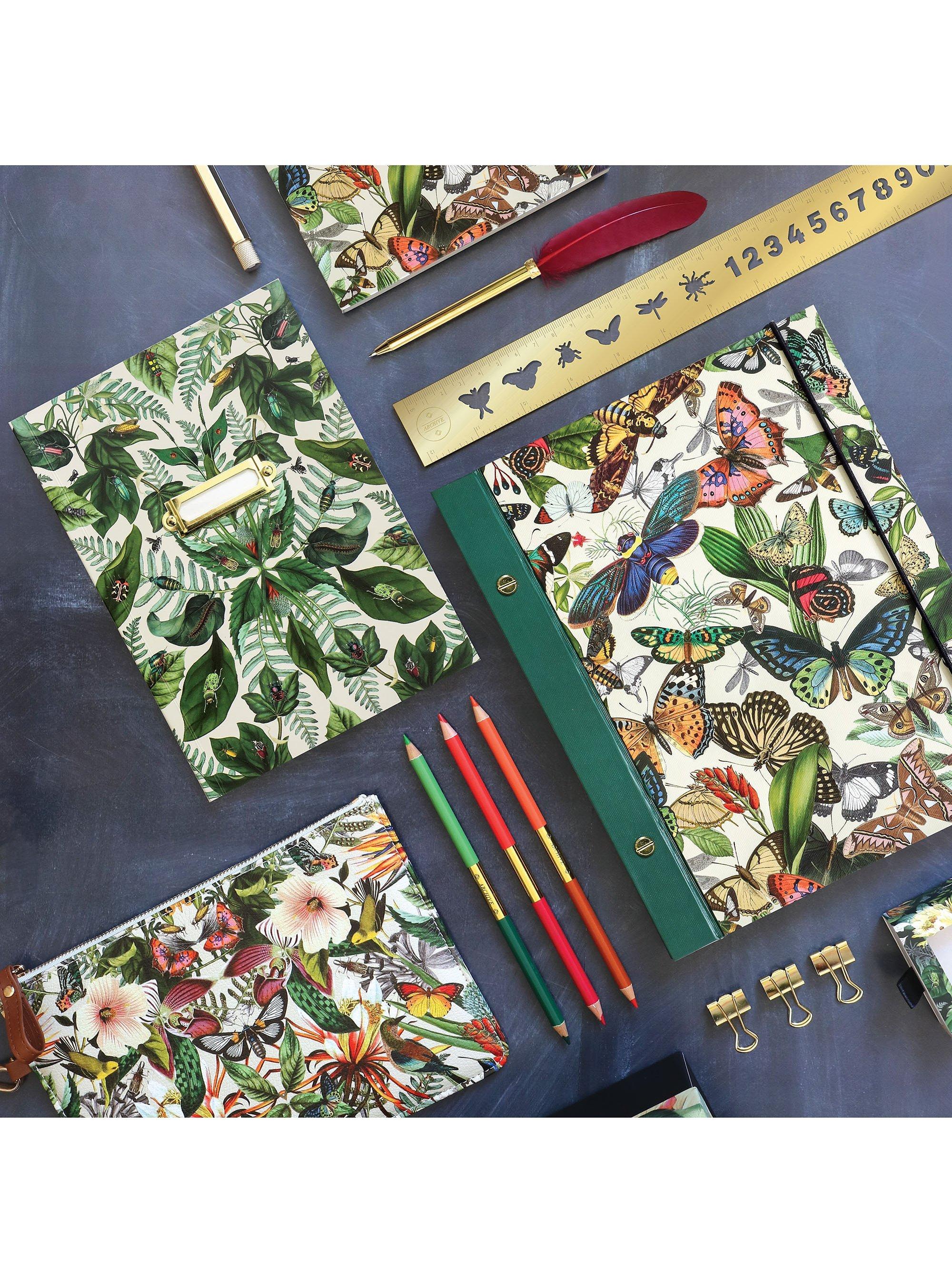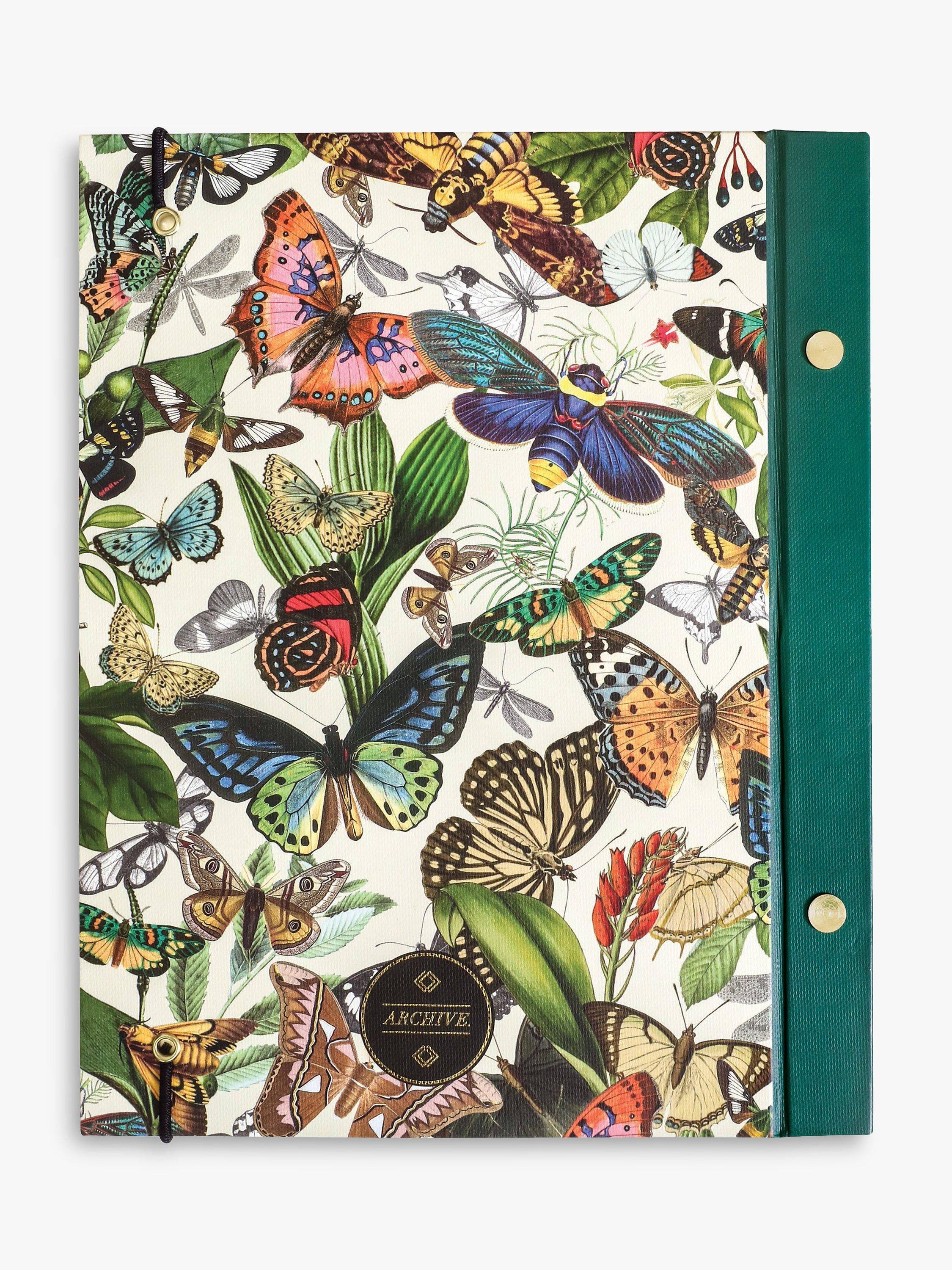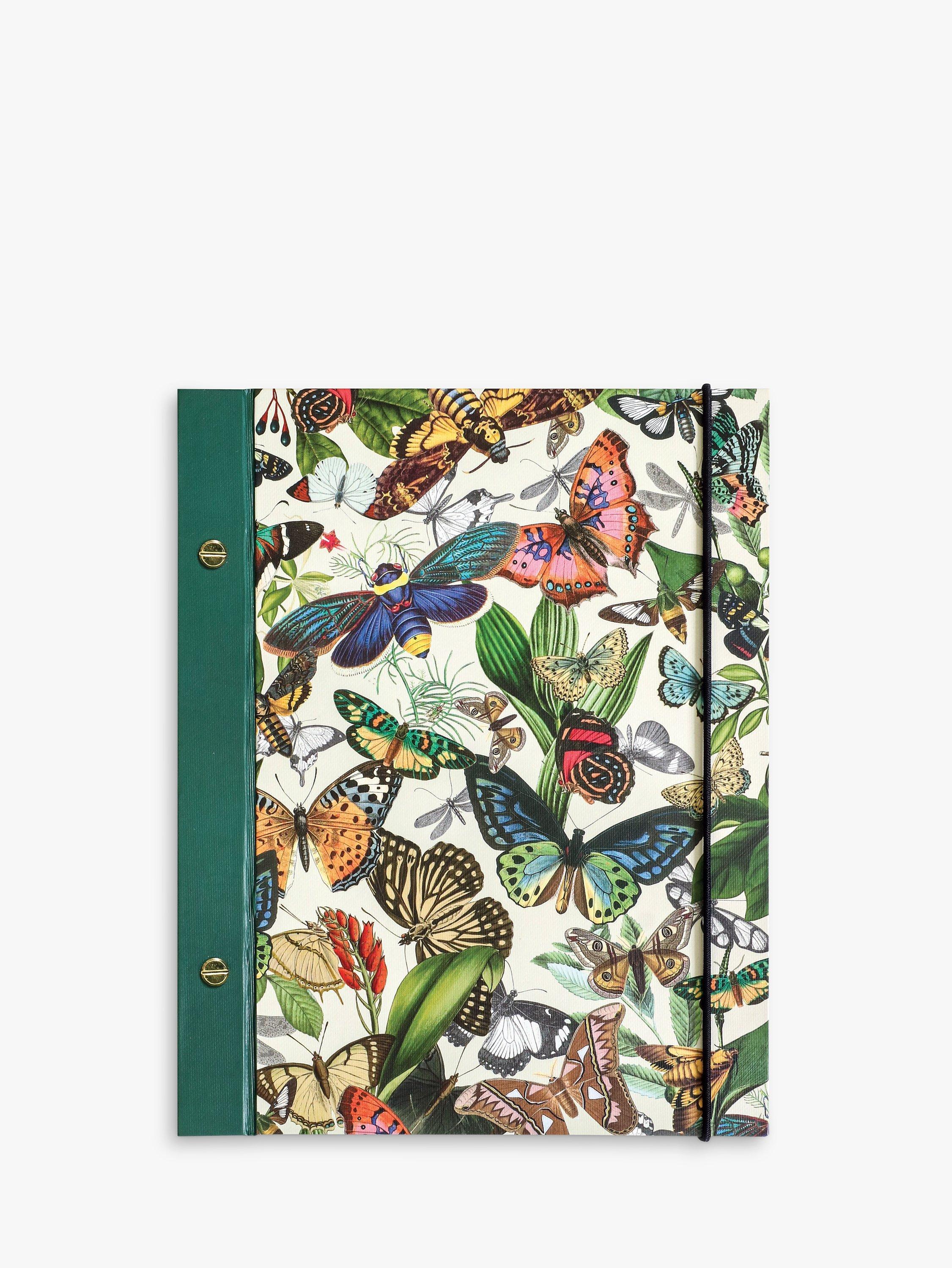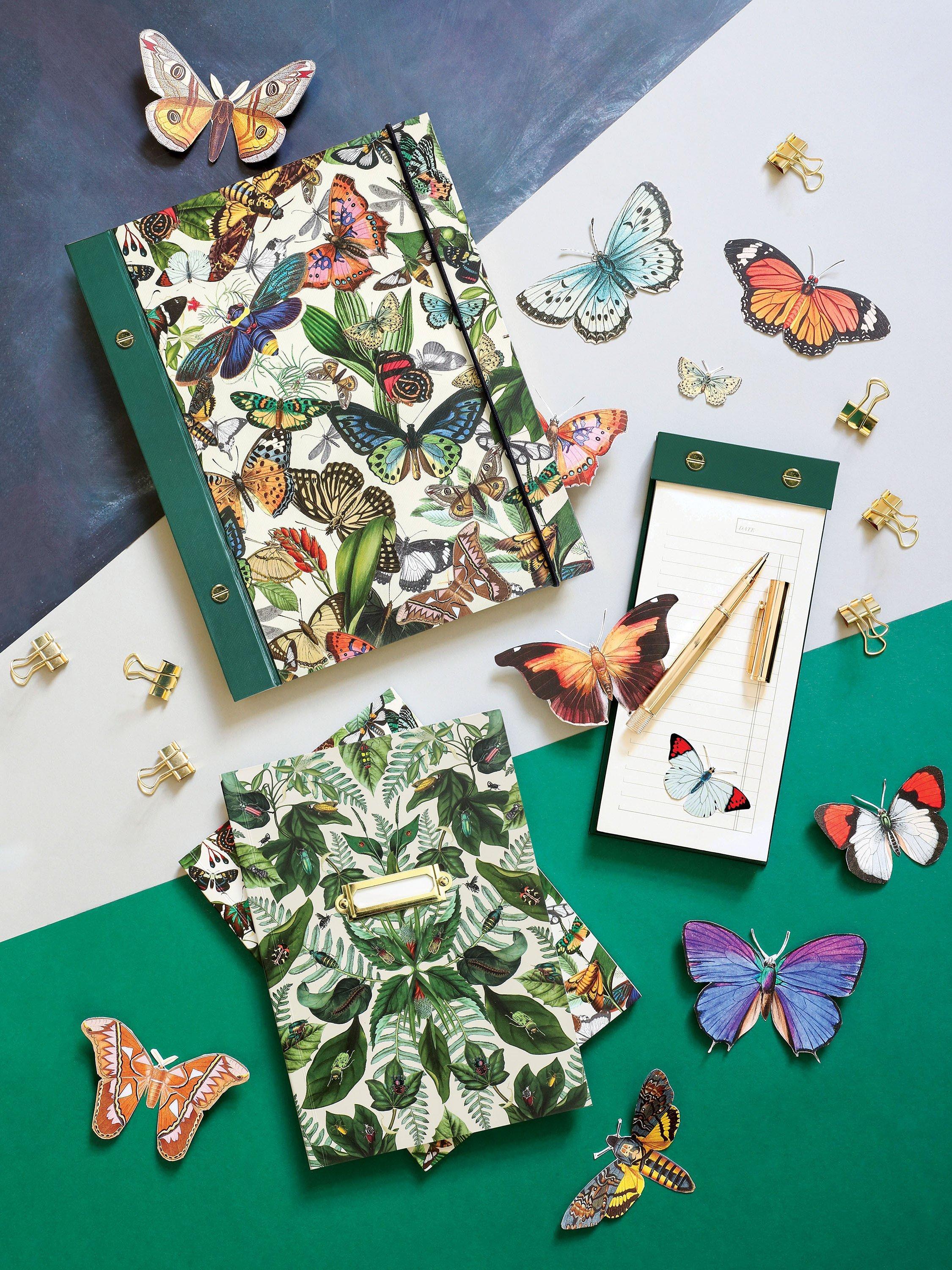 This eye-catching200-page casebound notebook printed in a pretty butterfly design on textured paper features luxe gold foiled page edges and logo, gold rivets and elastic closure.