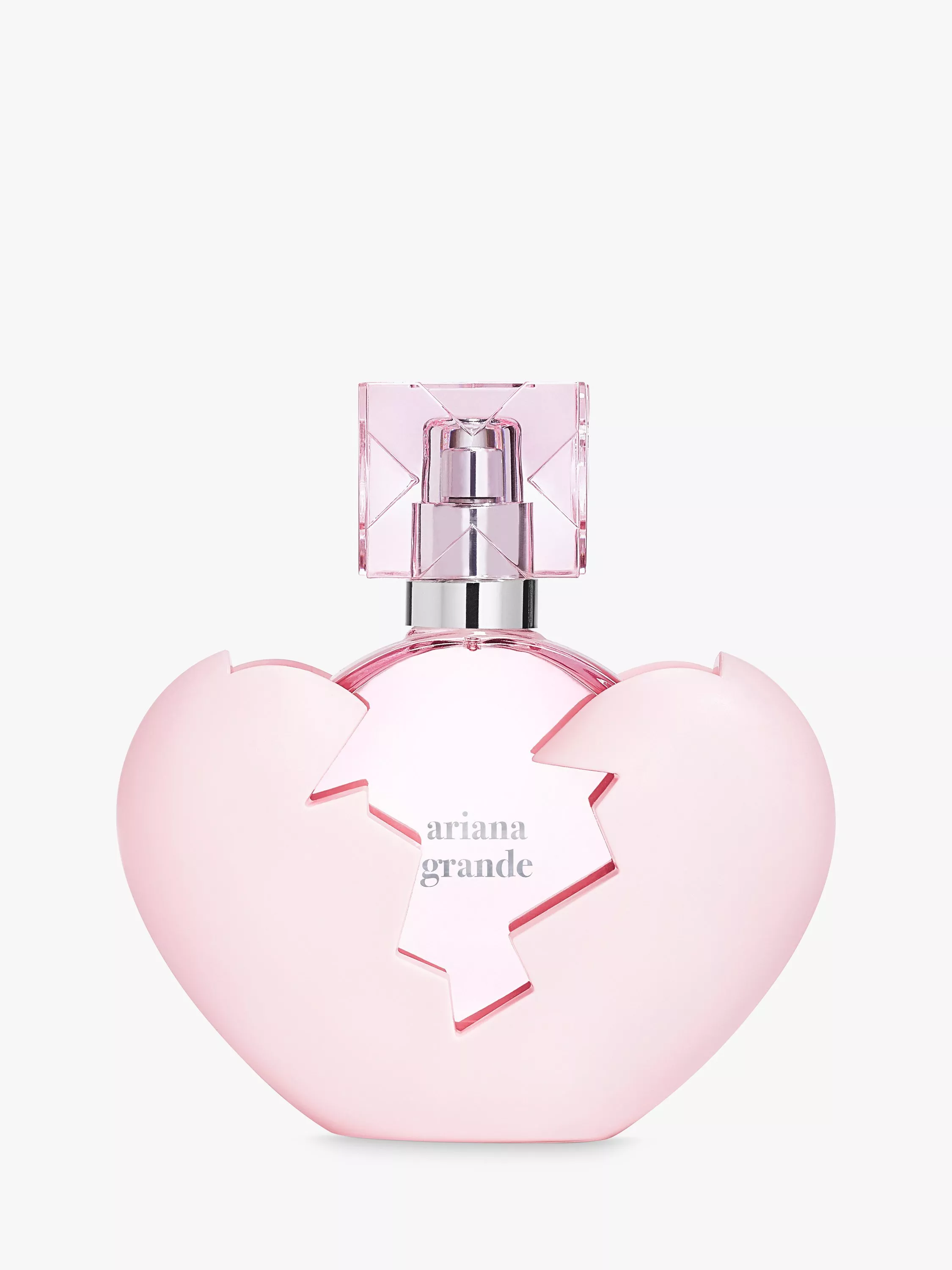 Thank U, Next bursts open with juicy notes of sparkling white pear and wild raspberry that soften with a heart of creamy coconut and delicate pink rose petals. Divine velvety musk infuses classic Ari sass, while macaroon sugar adds playful femininity. Full of attitude, full of sweetness.