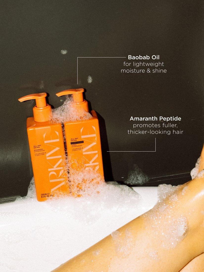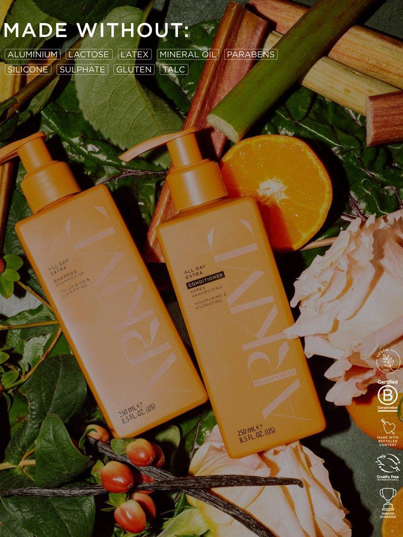 Our innovative gel-cream conditioning formula is ultra-lightweight to give the hair maximum bounce and volume and is infused with our hydrating hero Baobab Oil to provide three-dimensional shine and moisture.